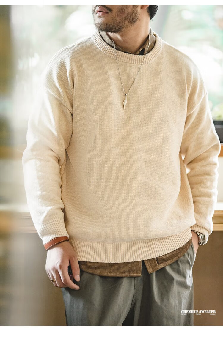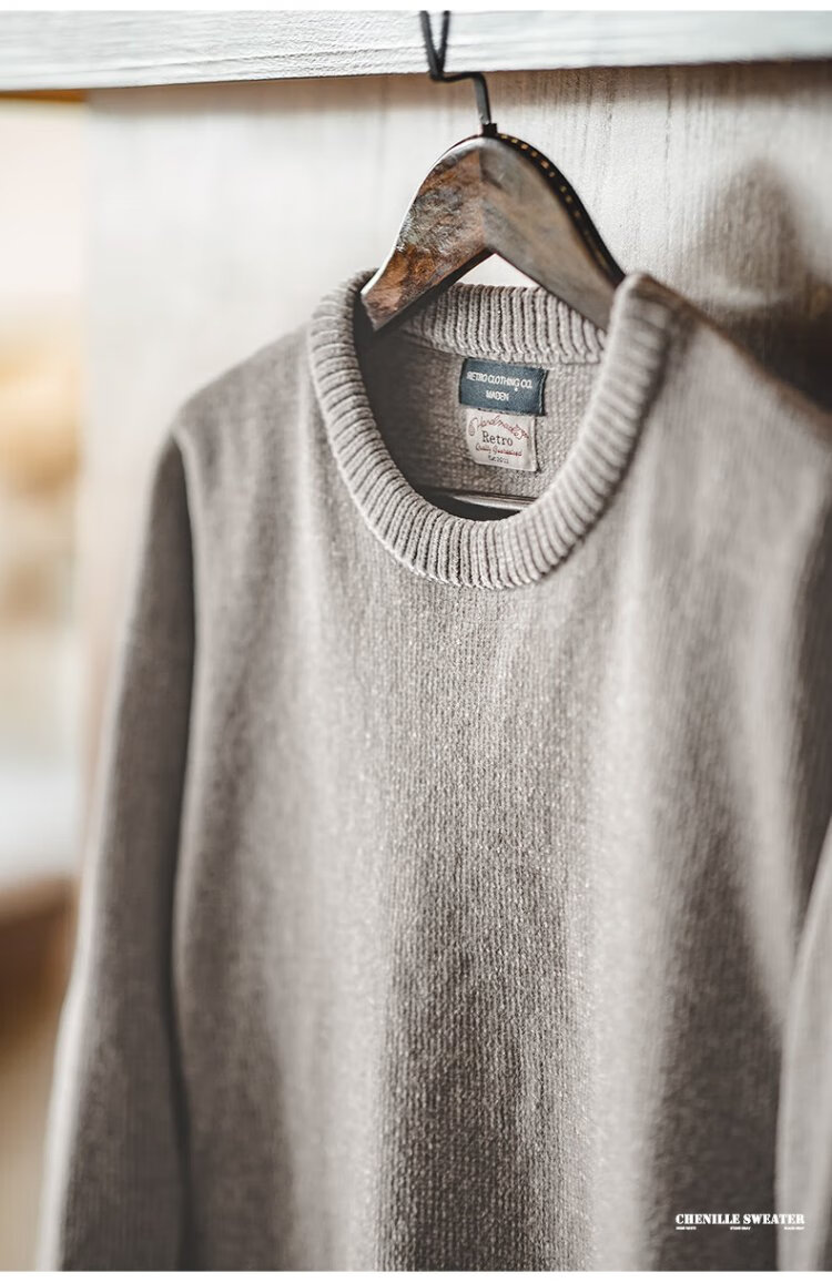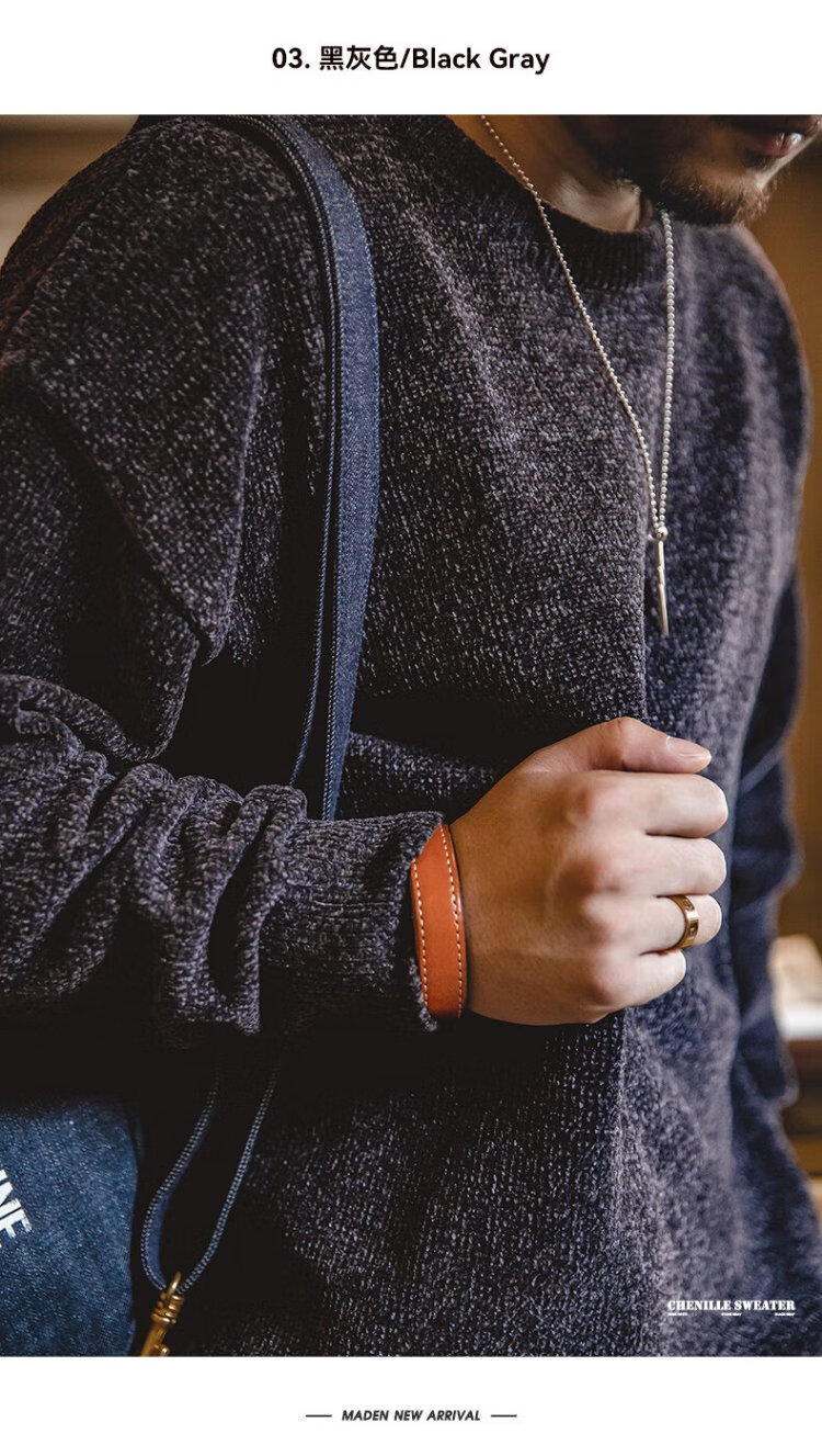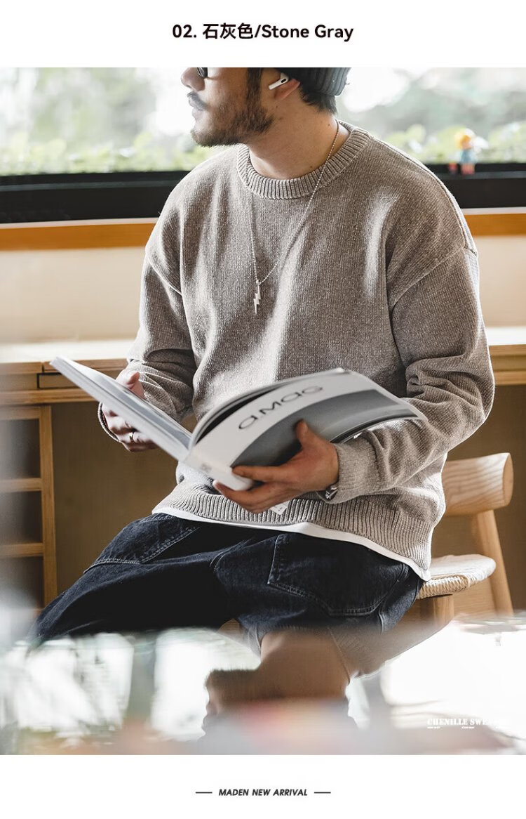 Madden workwear chenille round neck sweater warm and skin-friendly bottoming sweater men's autumn casual lazy top stone gray men's sweater winter/high-end/sweatshirt M (120-140Jin Jin equals 0.5 kg)