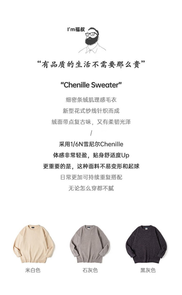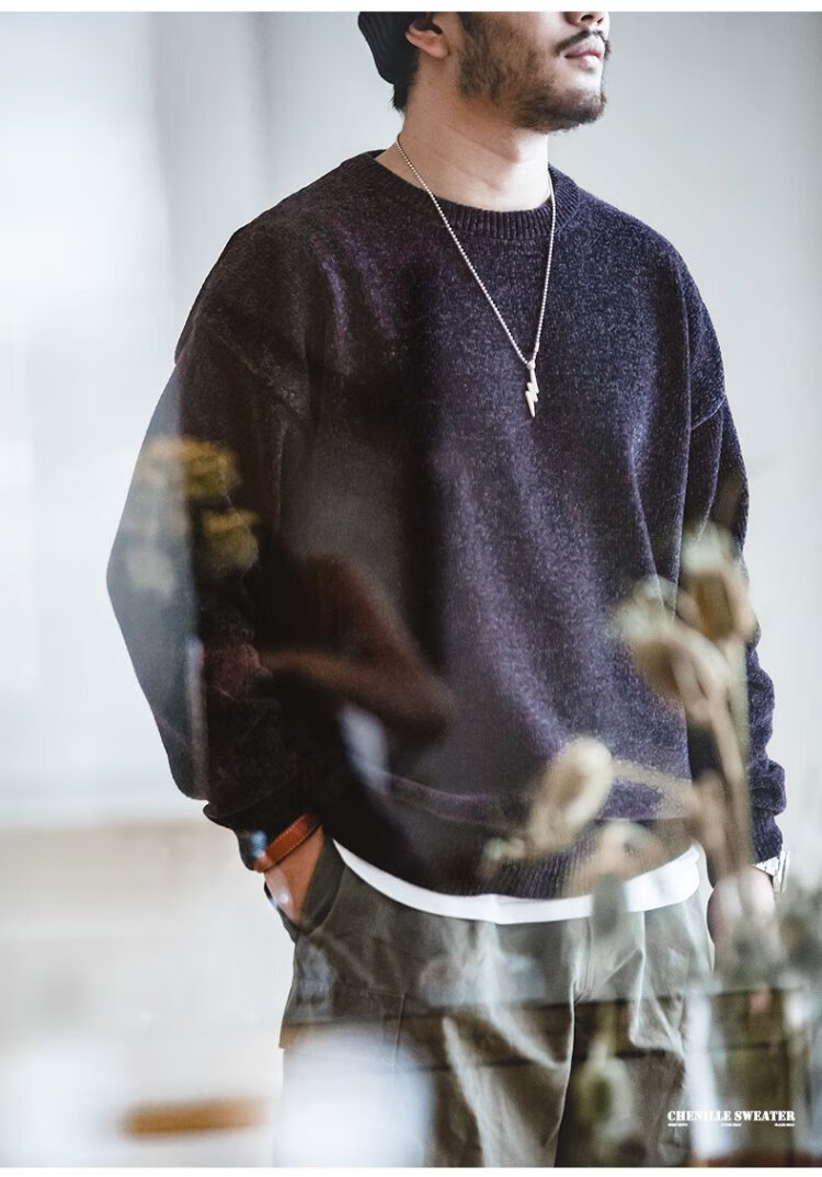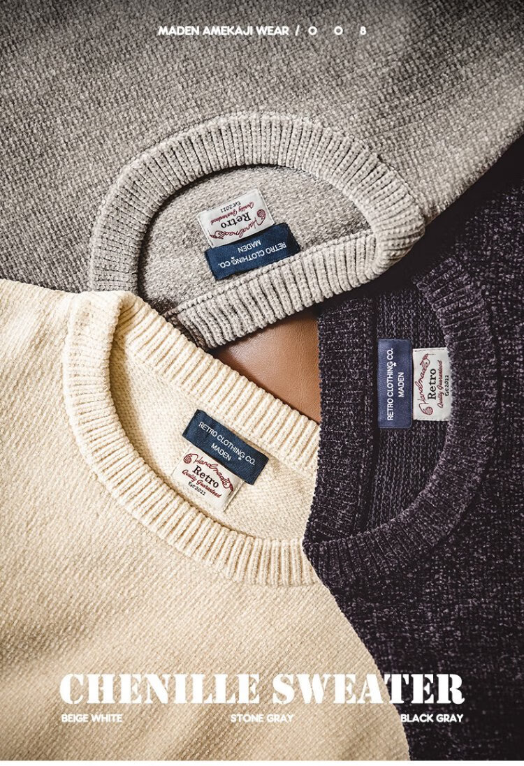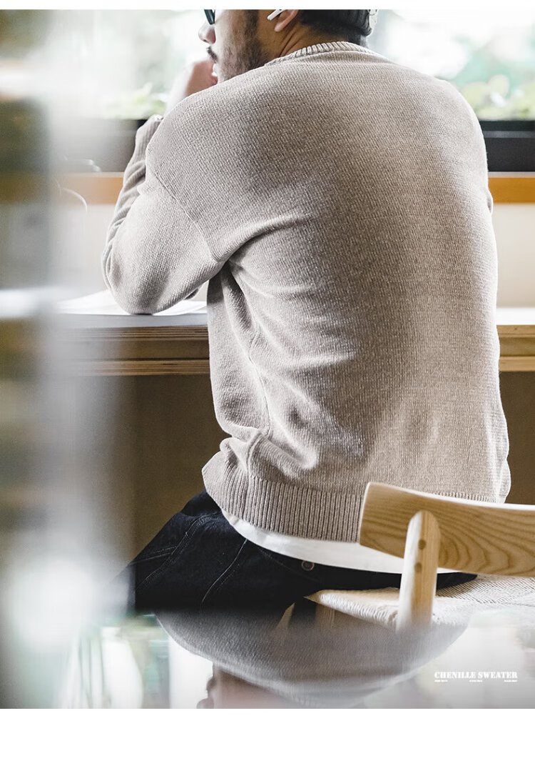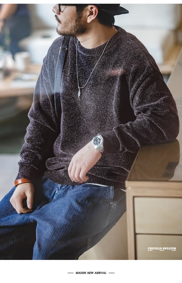 Madden workwear chenille round neck sweater warm and skin-friendly bottoming sweater men's autumn casual lazy top stone gray men's sweater winter/high-end/sweatshirt M (120-140Jin Jin equals 0.5 kg)