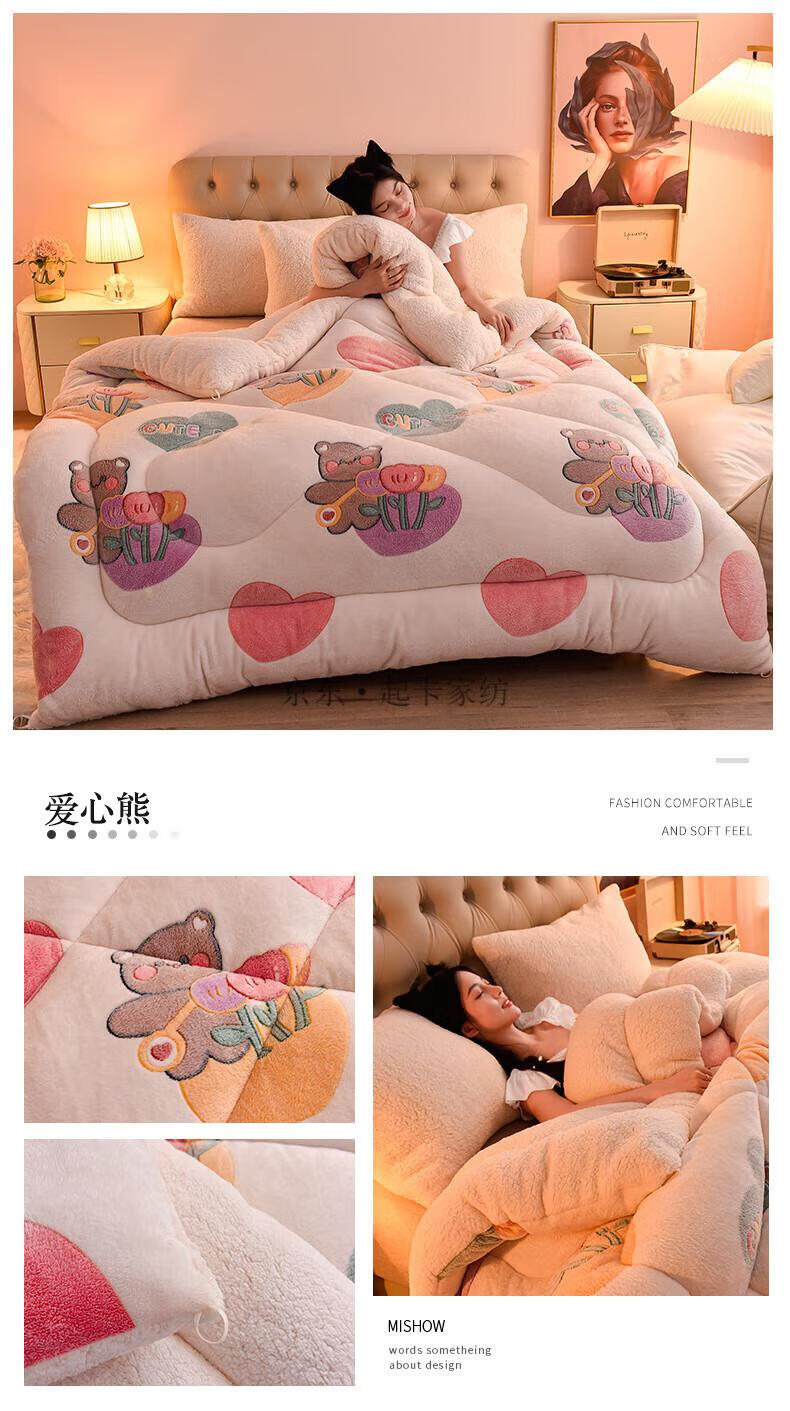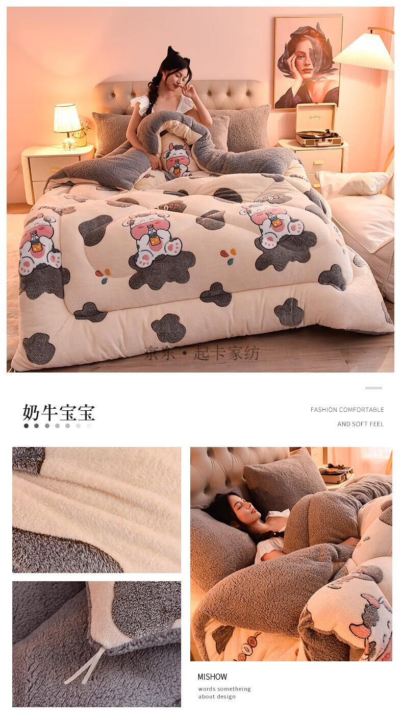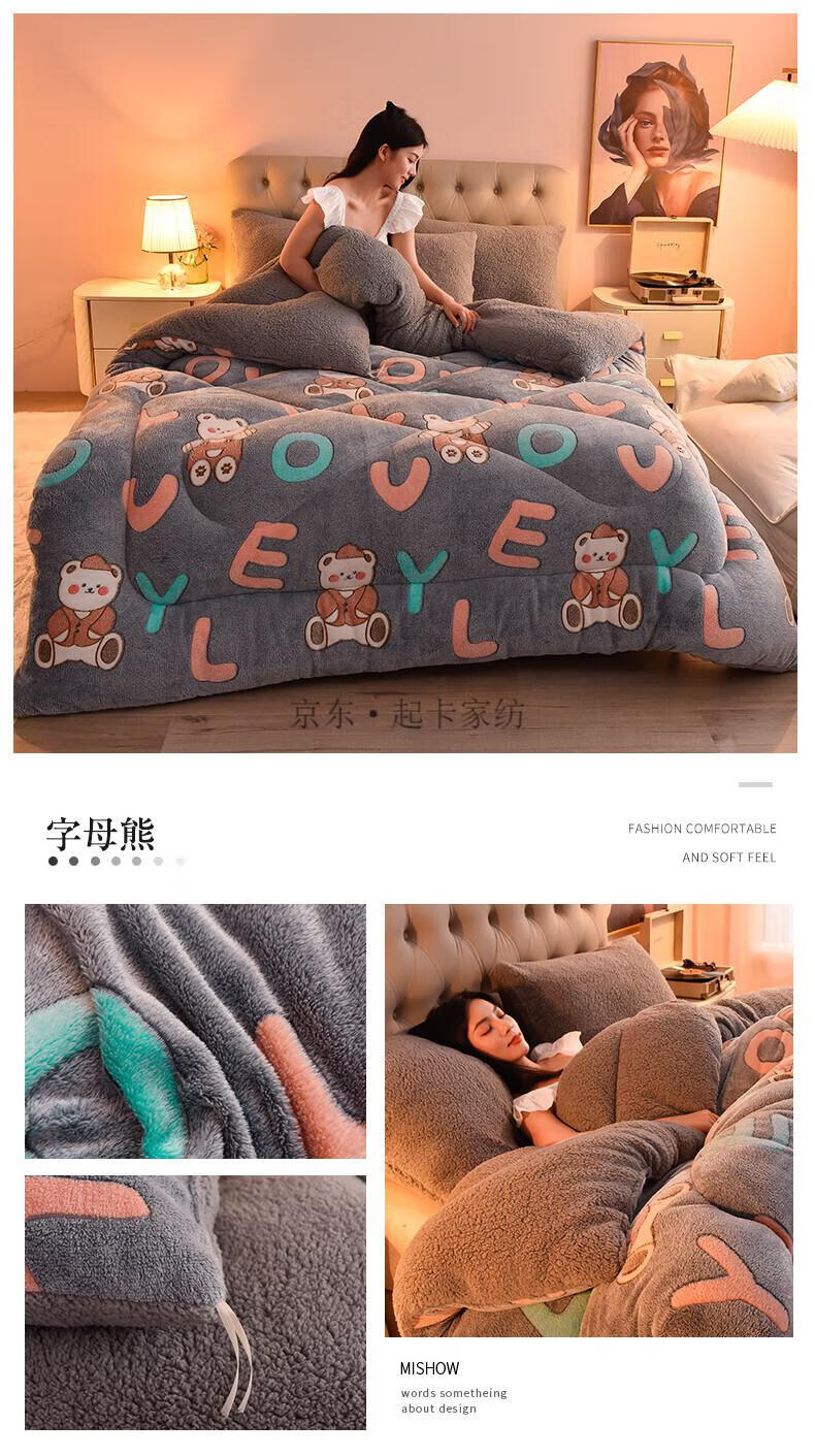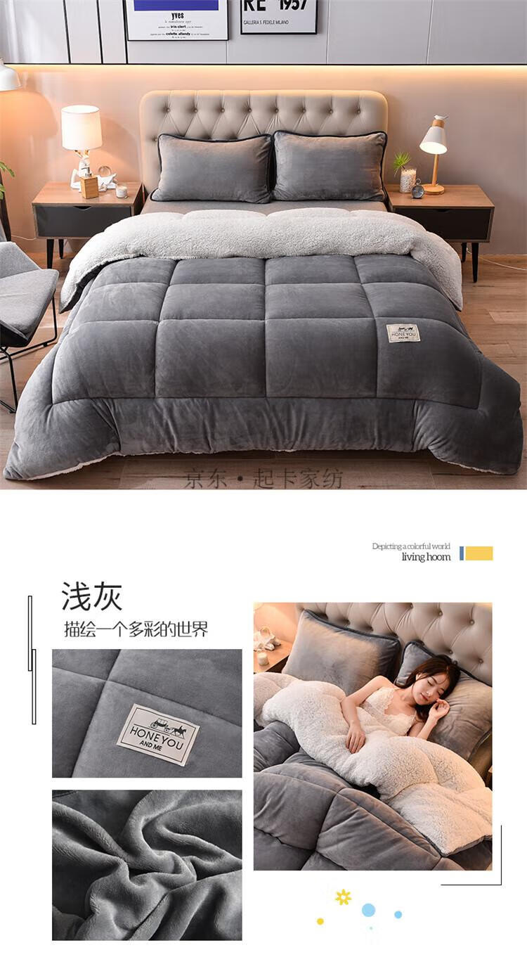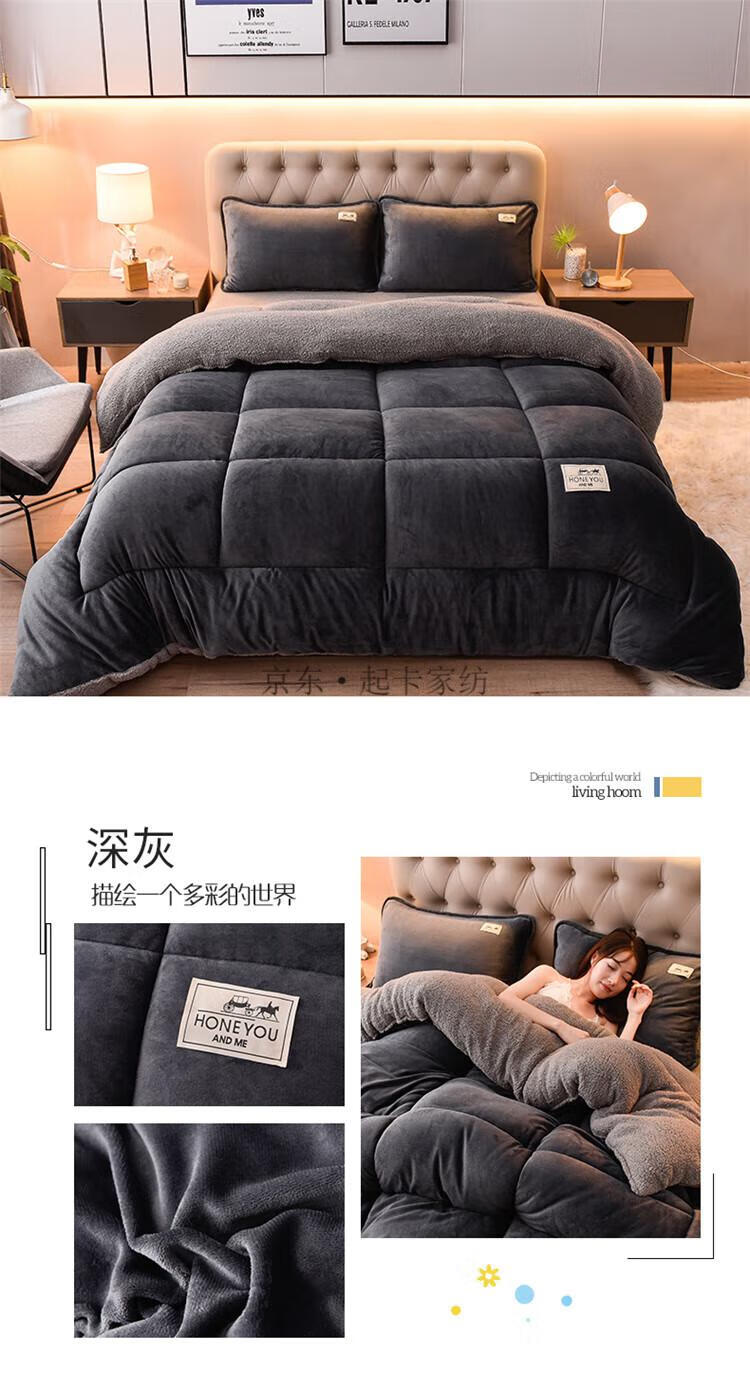 大学生羽绒被 被子羽绒丝被芯加绒被单人宿舍牛奶绒机洗羊羔绒冬被6斤8加厚10斤现代新款 深灰【双层加厚+羊羔绒+牛奶绒】 2.0*2.3m 10斤