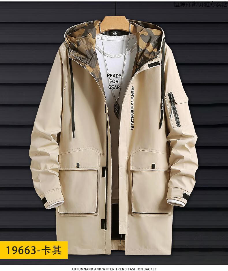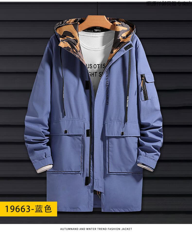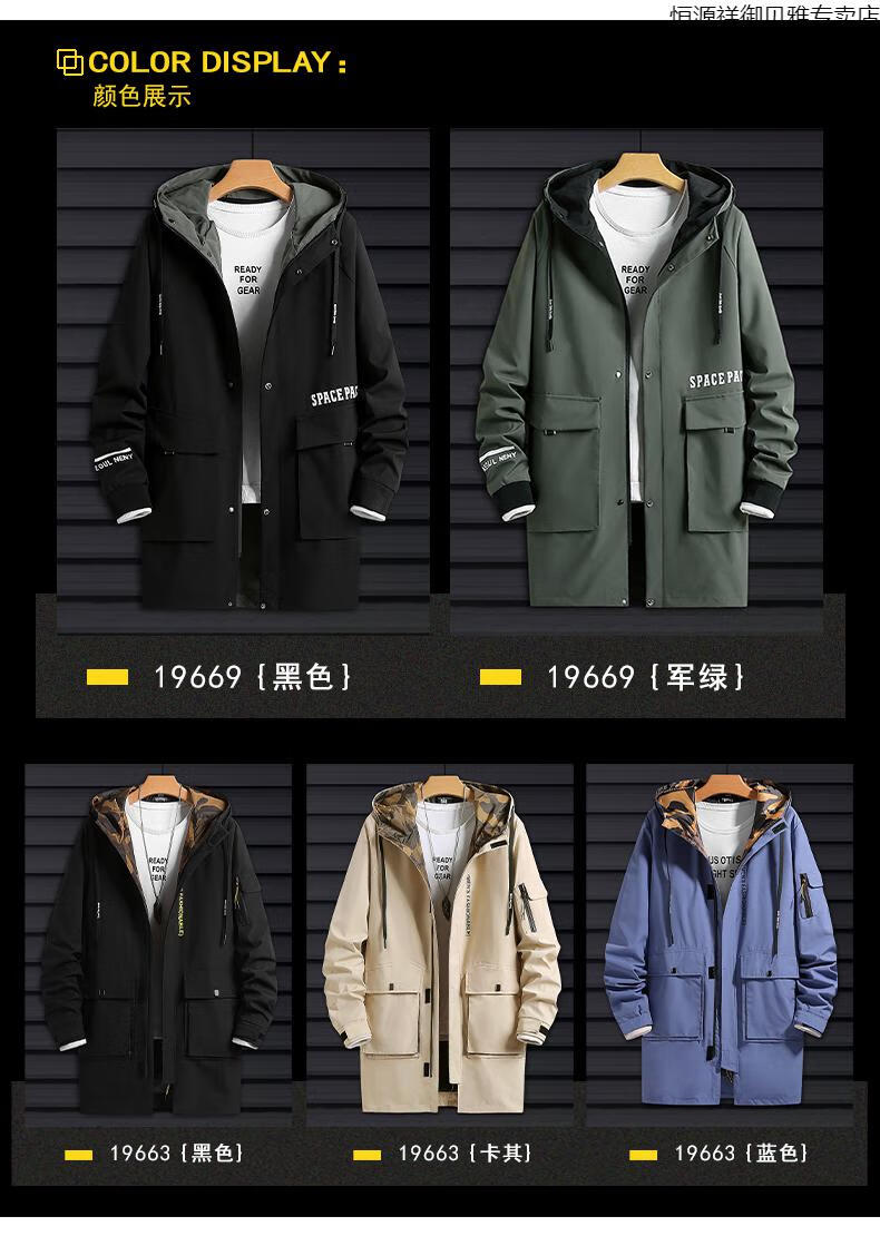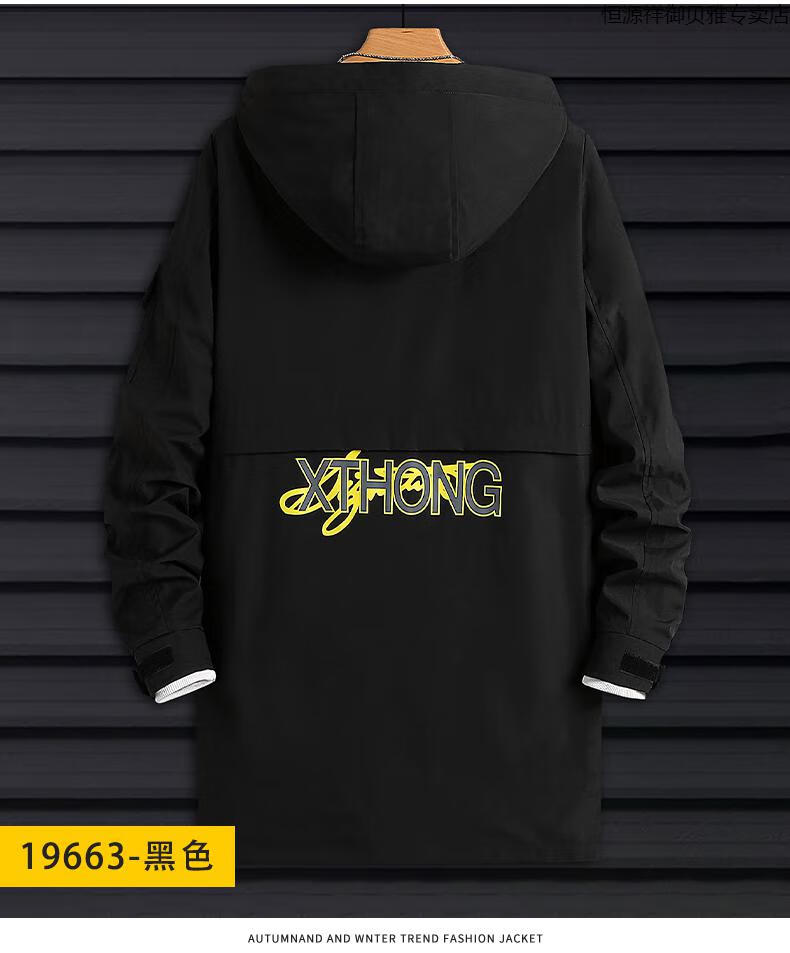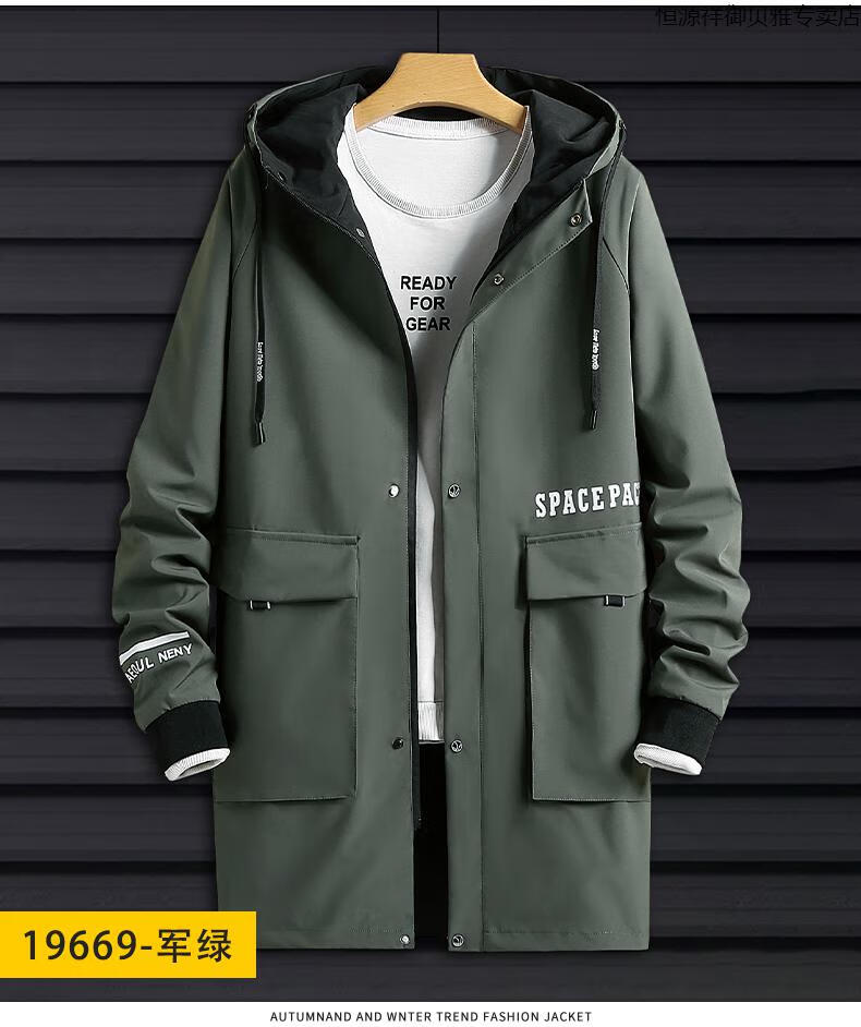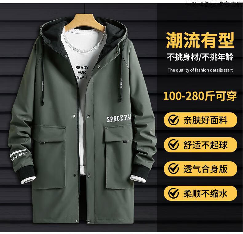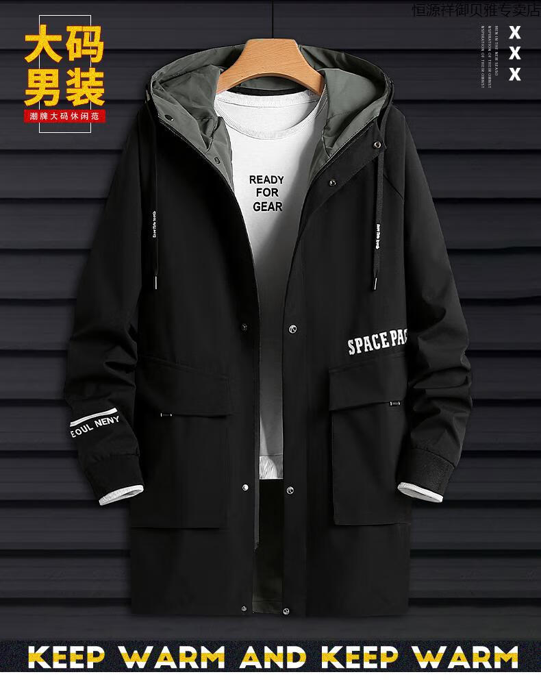 Hengyuanxiang Men's Autumn Clothing Hooded Windbreaker Men's Mid-Length Autumn and Winter Extra Fat Large Size Fat Man Trendy Loose Handsome Thickened 2118-Military Green (Thickened Style) 8XL