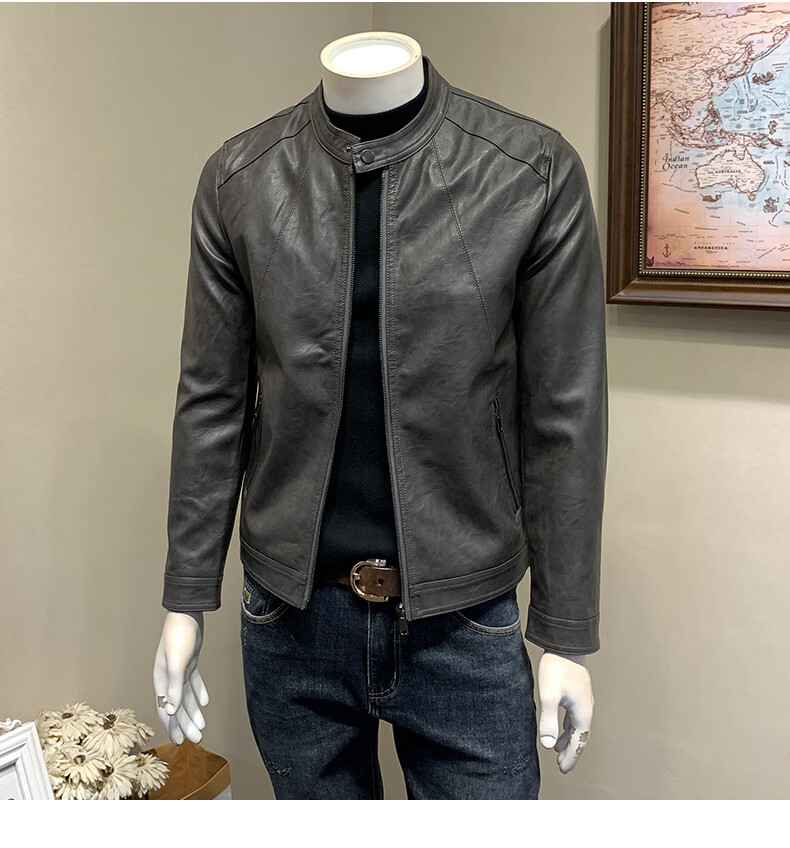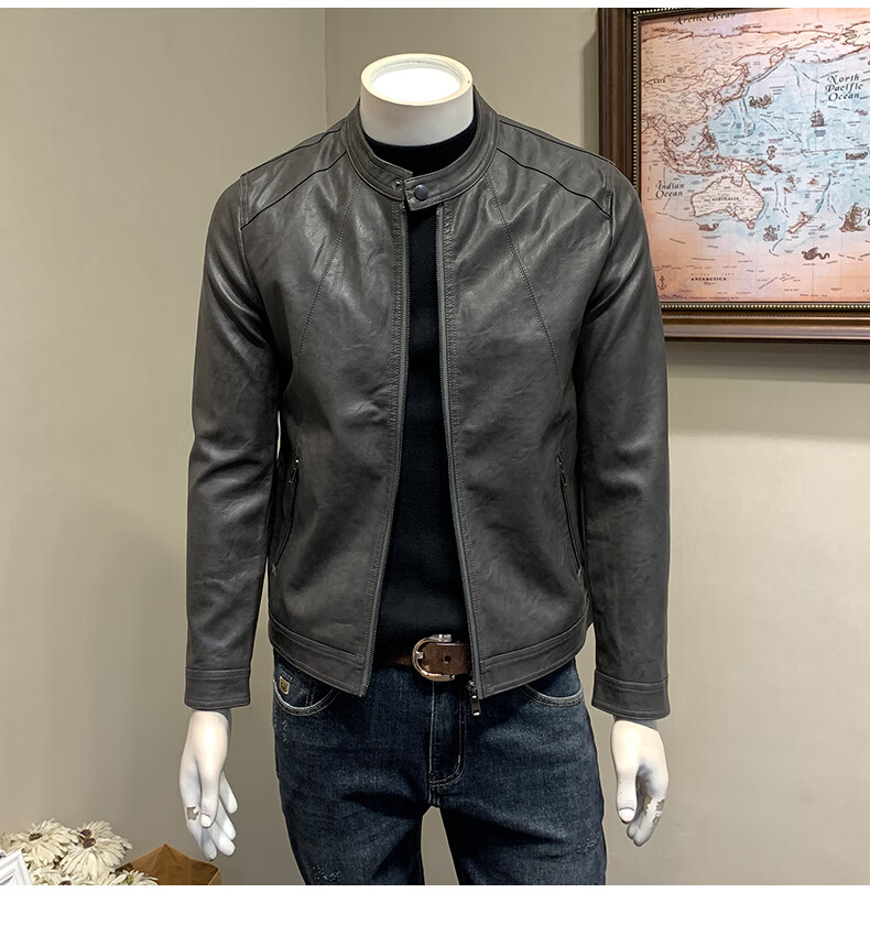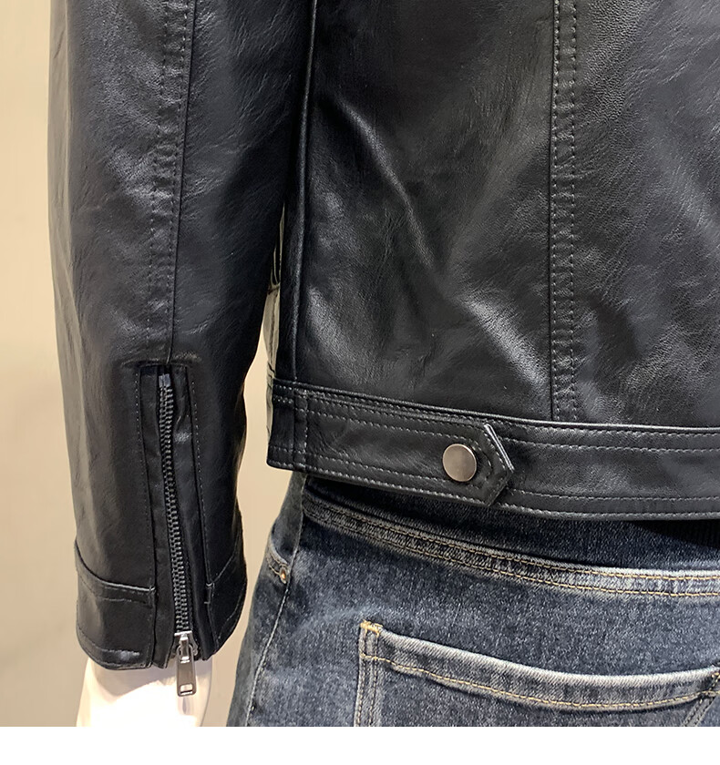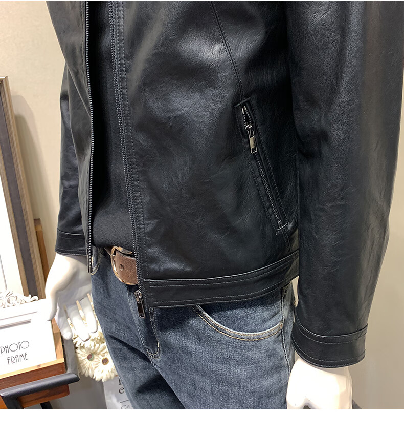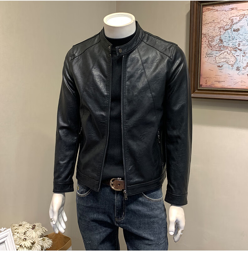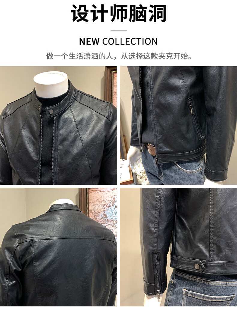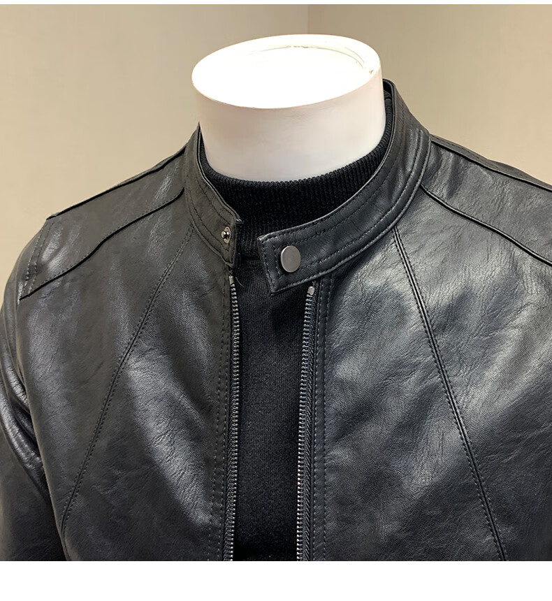 ANDSEEYOU brand leather jacket men's autumn new Korean style slim motorcycle leather jacket men's 2025 new stand collar Chinese Valentine's Day black plus velvet thickened M