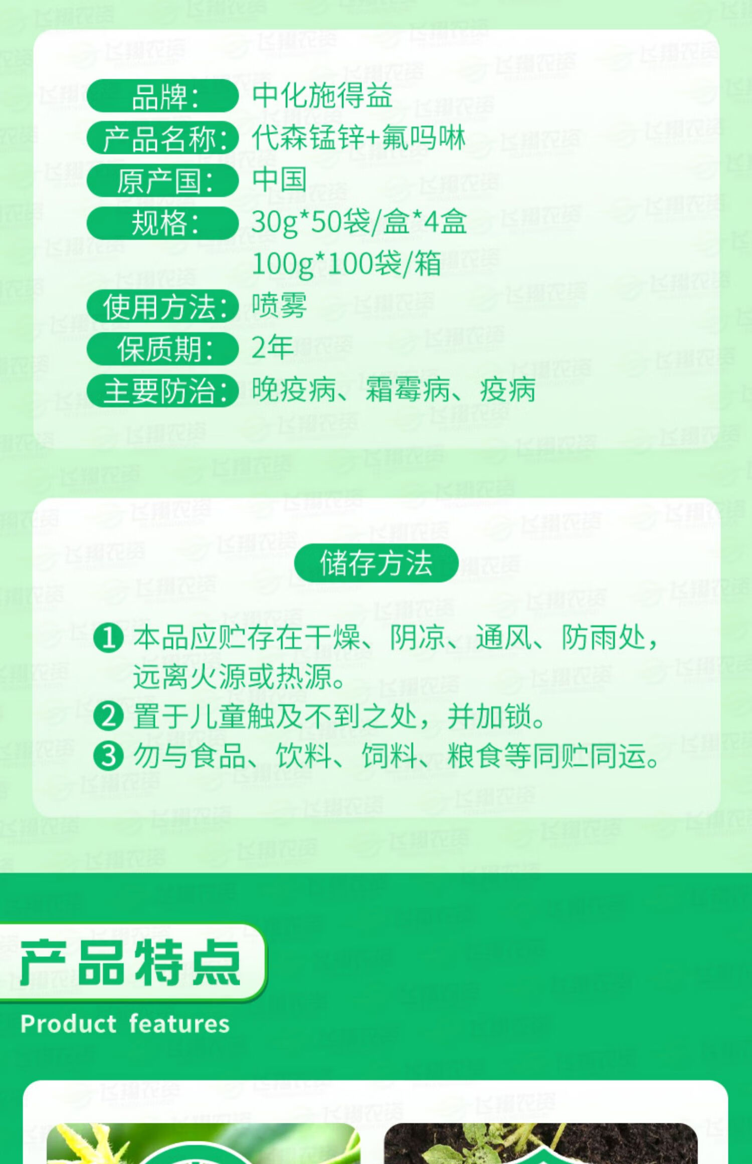 中化农化施得益 氟吗啉+代森锰锌 黄瓜霜霉病番茄早晚疫病杀菌剂 30g