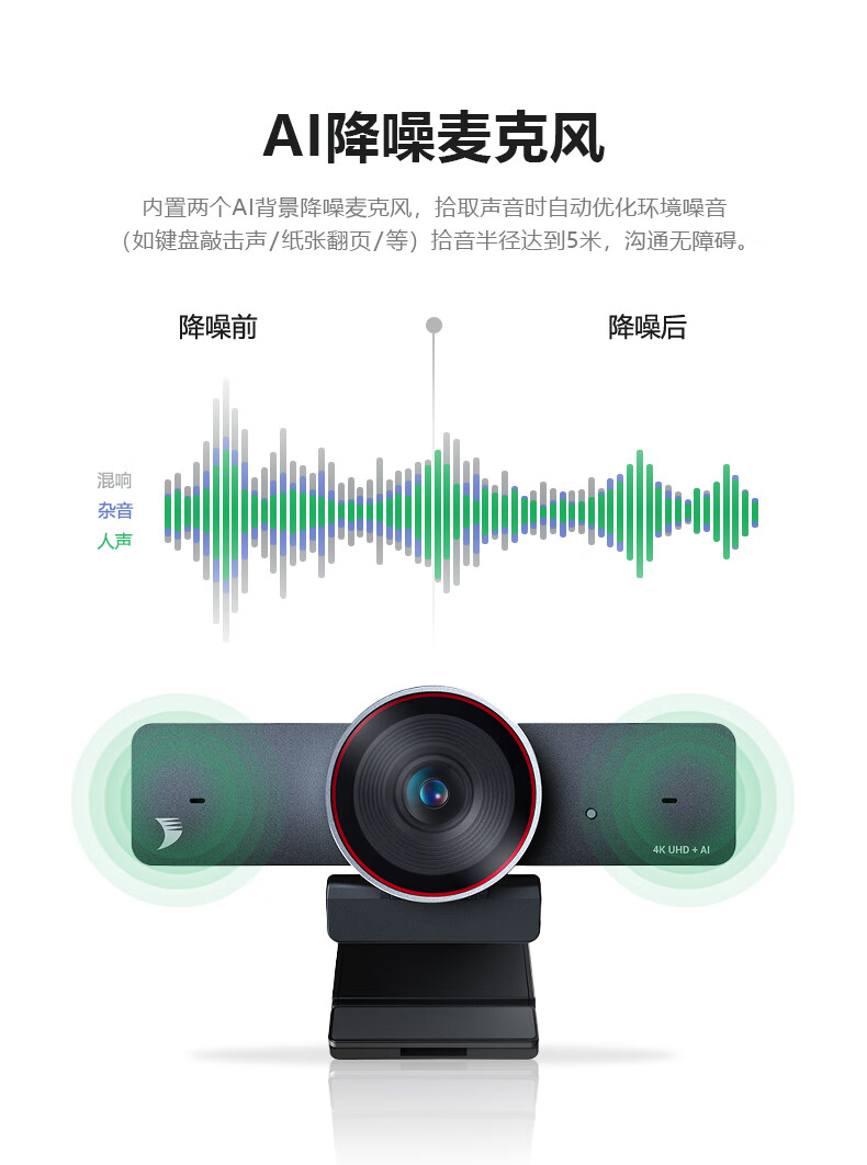 Wisdom 4K ultra-clear computer camera wide angle video conferencing computer external camera HD with microphone smart portrait tracking conference room equipment FOCUS 210 ultra-clear 4K portrait tracking wide angle 120