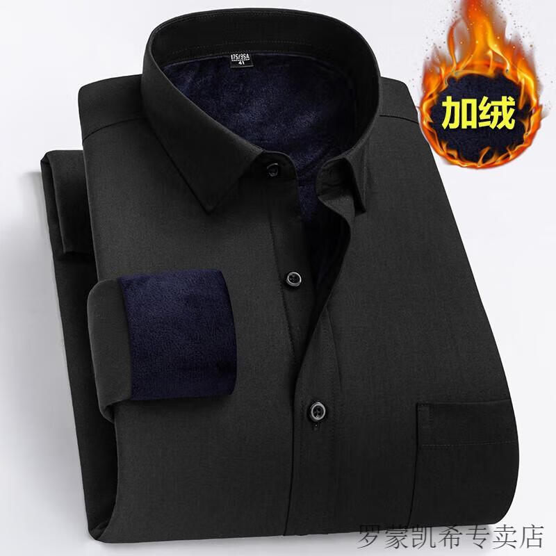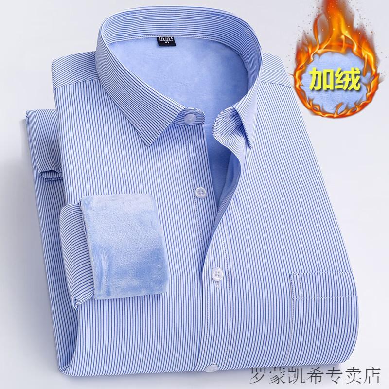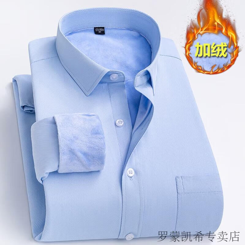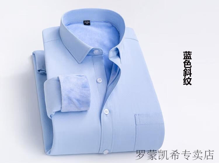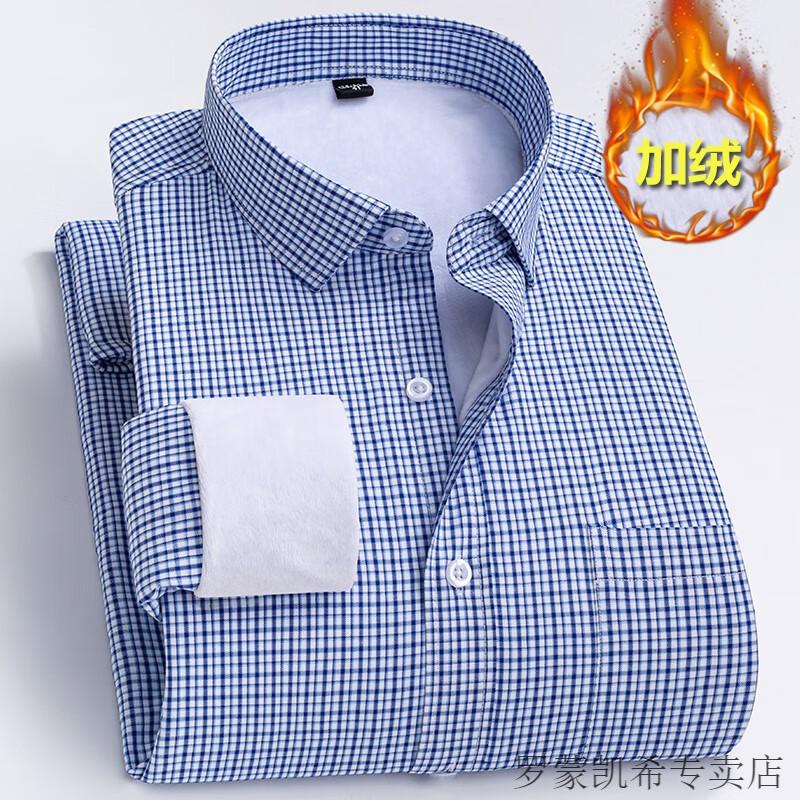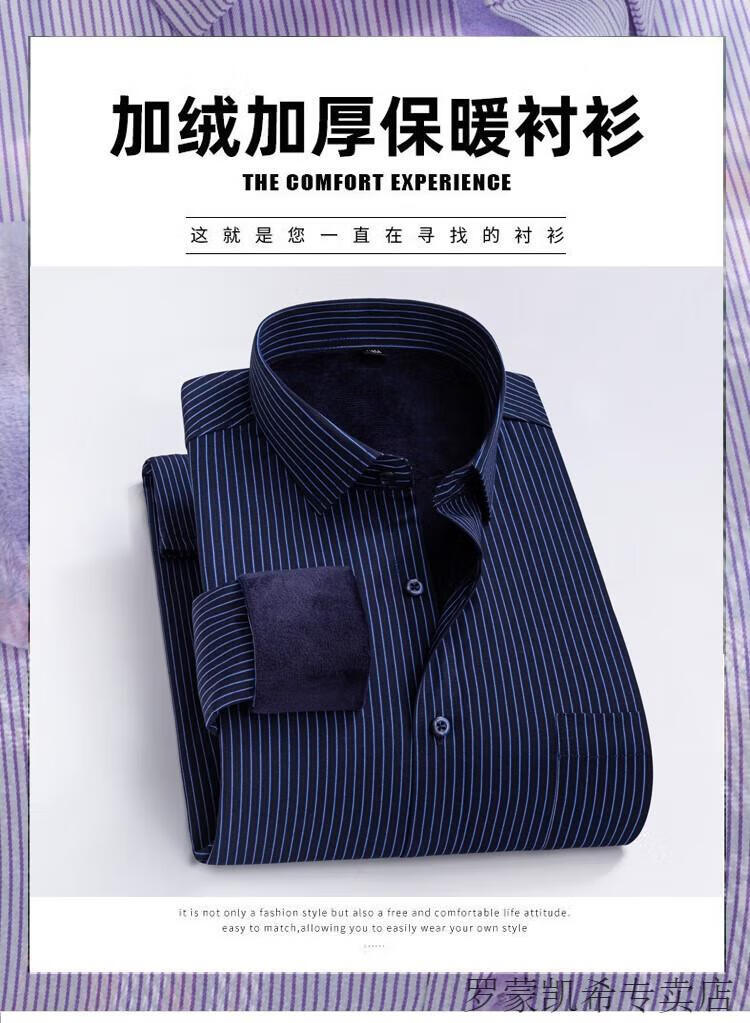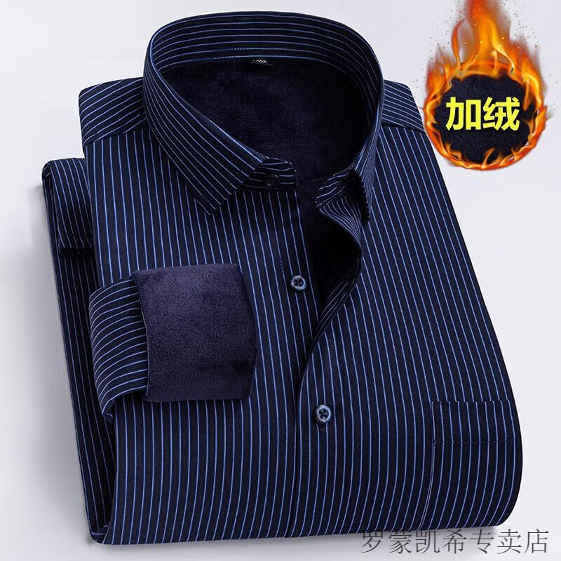 ROMON 男士加肥加大保暖衬衫加绒加厚秋冬季商务正装免烫长袖棉衬衣 深蓝 【加绒】 加厚 46 =适合215-230斤