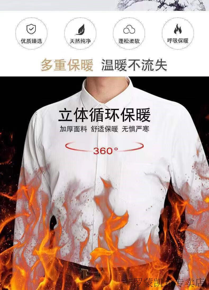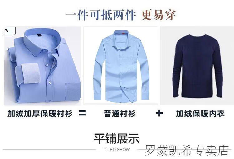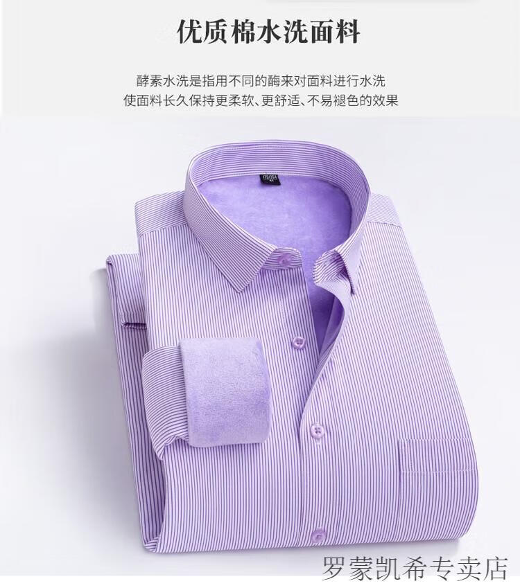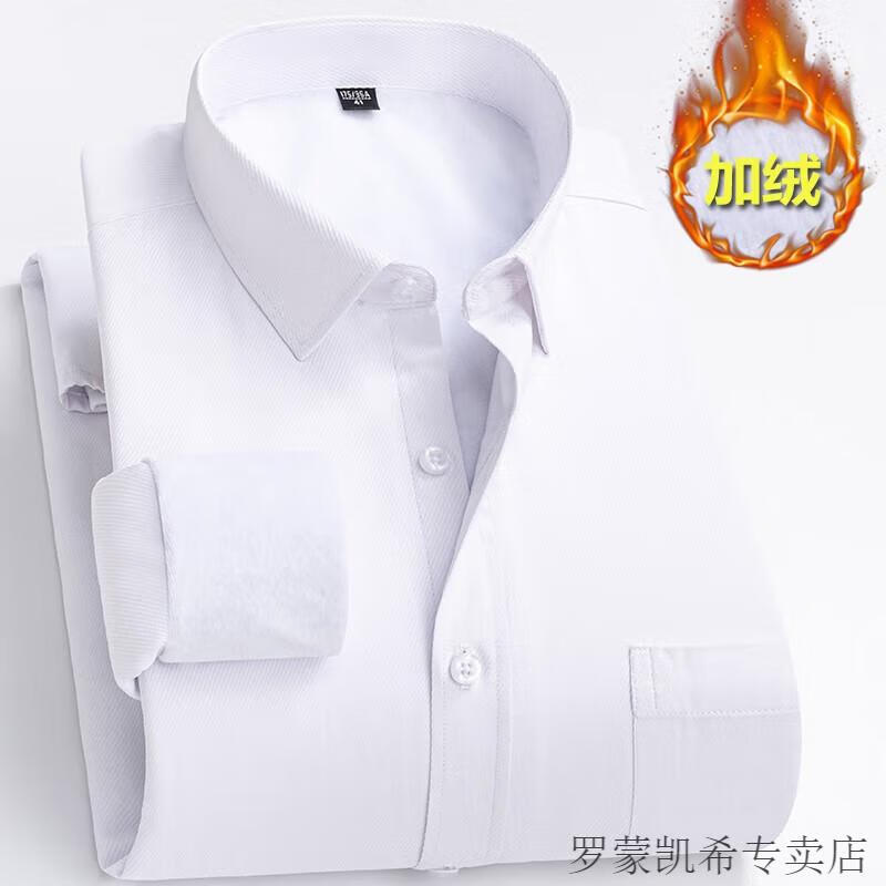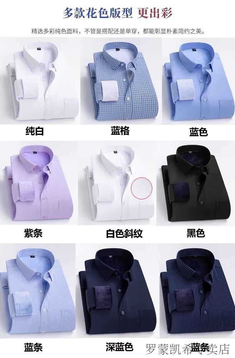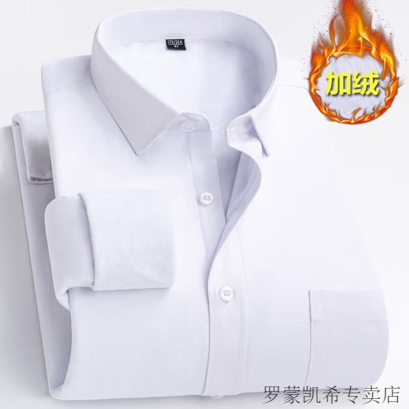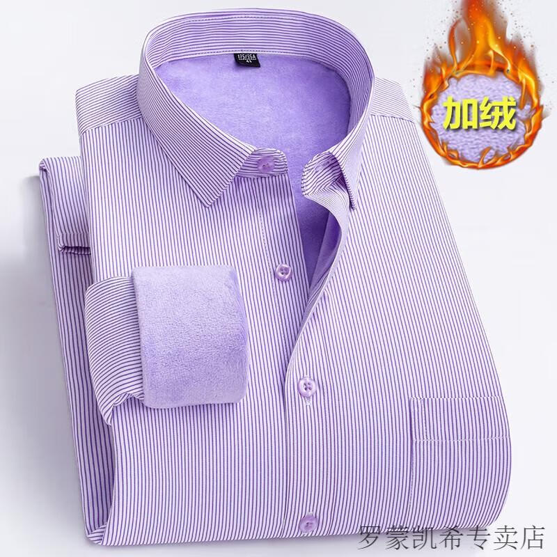 ROMON 男士加肥加大保暖衬衫加绒加厚秋冬季商务正装免烫长袖棉衬衣 深蓝 【加绒】 加厚 46 =适合215-230斤