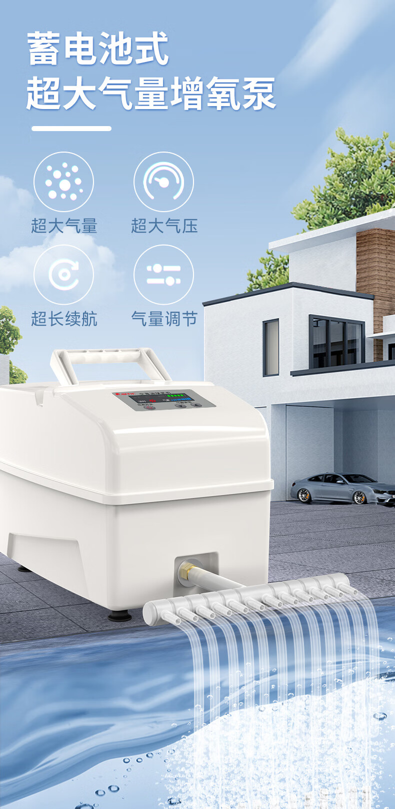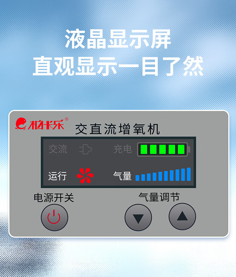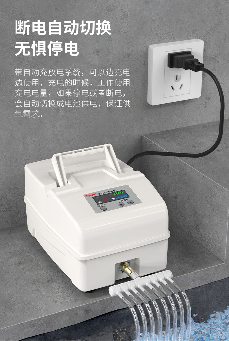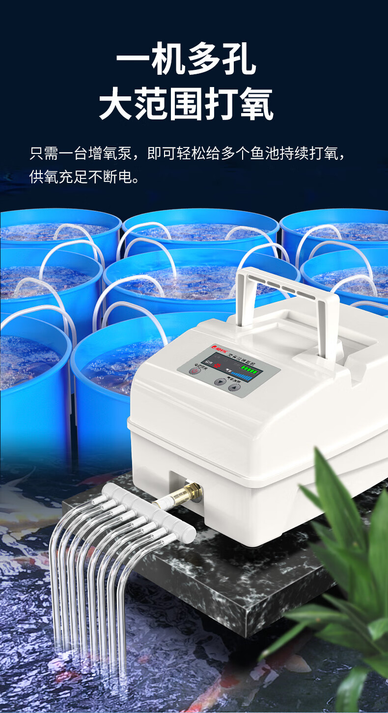 柏卡乐交直流增氧泵充电大功率增氧机海鲜鱼池养殖养鱼充氧机鱼缸氧气泵 功率45W 6孔 锂电池 数显款 55斤内鱼