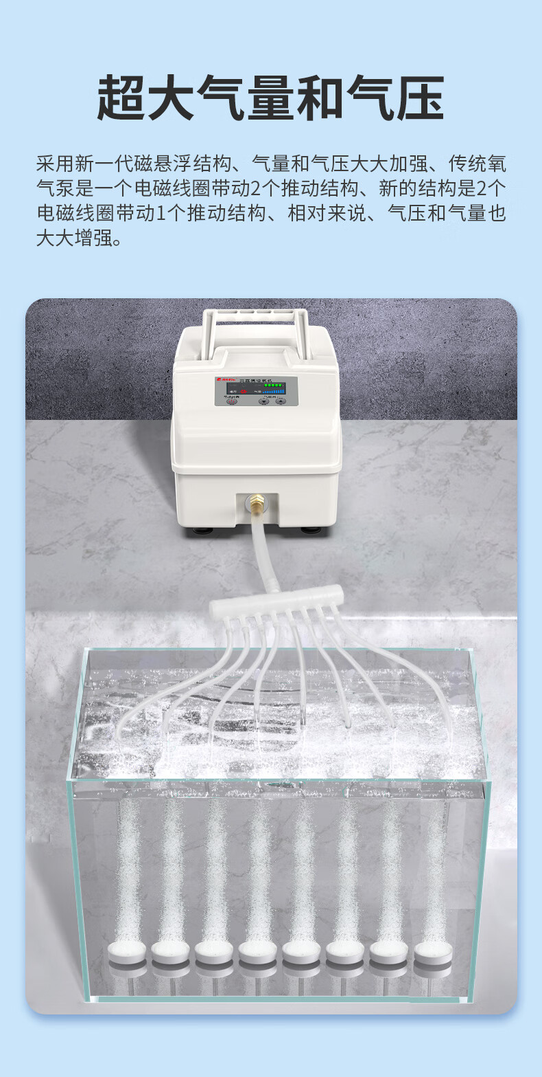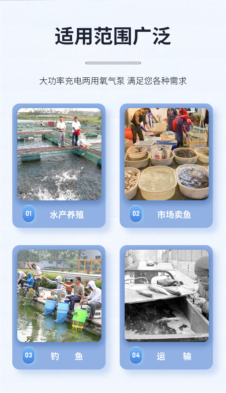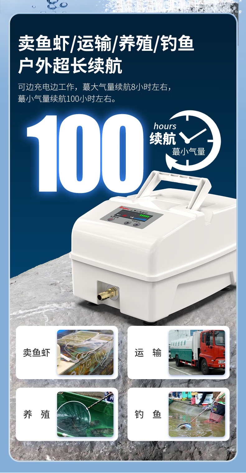 柏卡乐交直流增氧泵充电大功率增氧机海鲜鱼池养殖养鱼充氧机鱼缸氧气泵 功率45W 6孔 锂电池 数显款 55斤内鱼