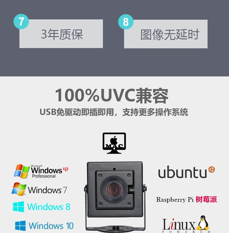 晟悦(S-YUE) 树莓派usb外接工业电脑摄像头模组1080P高清广角摄影头Linux安卓免驱动广角摄像头 120度无畸变(2.15mm)-480P