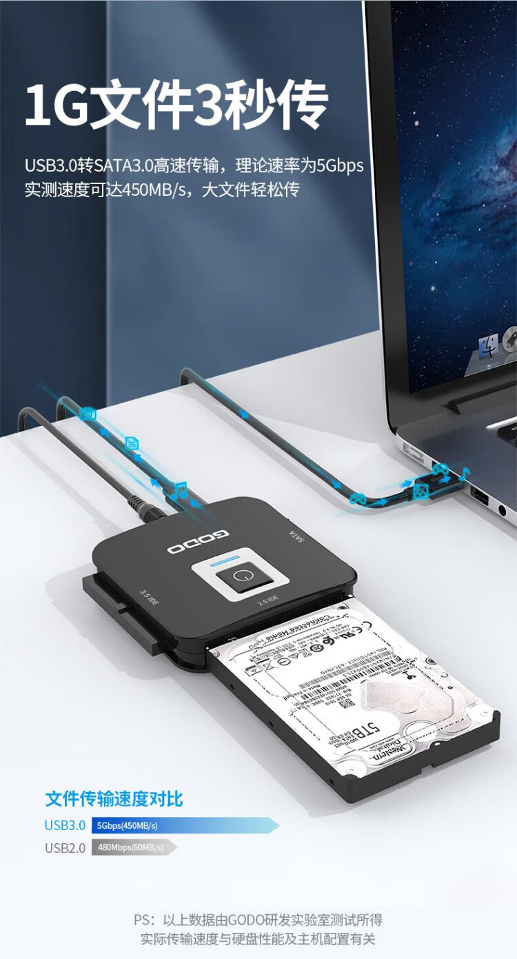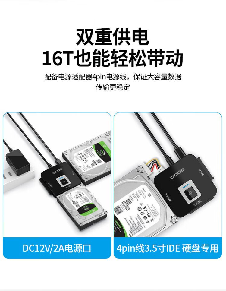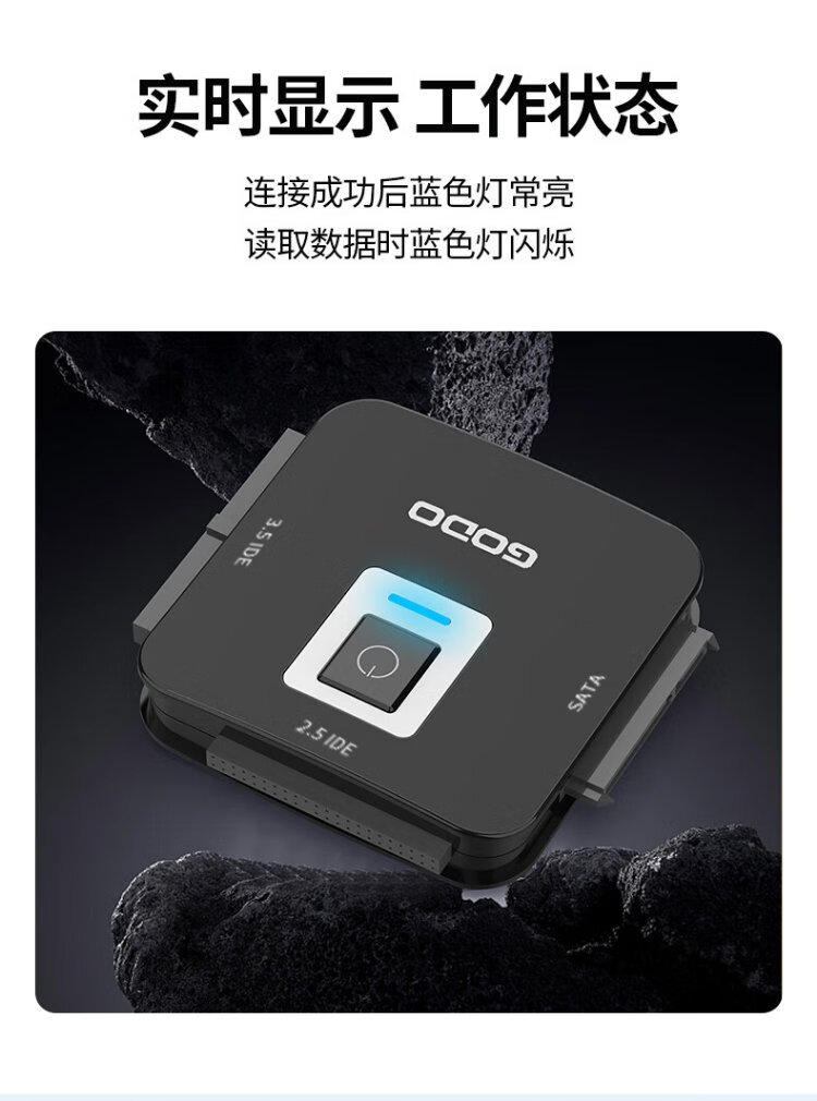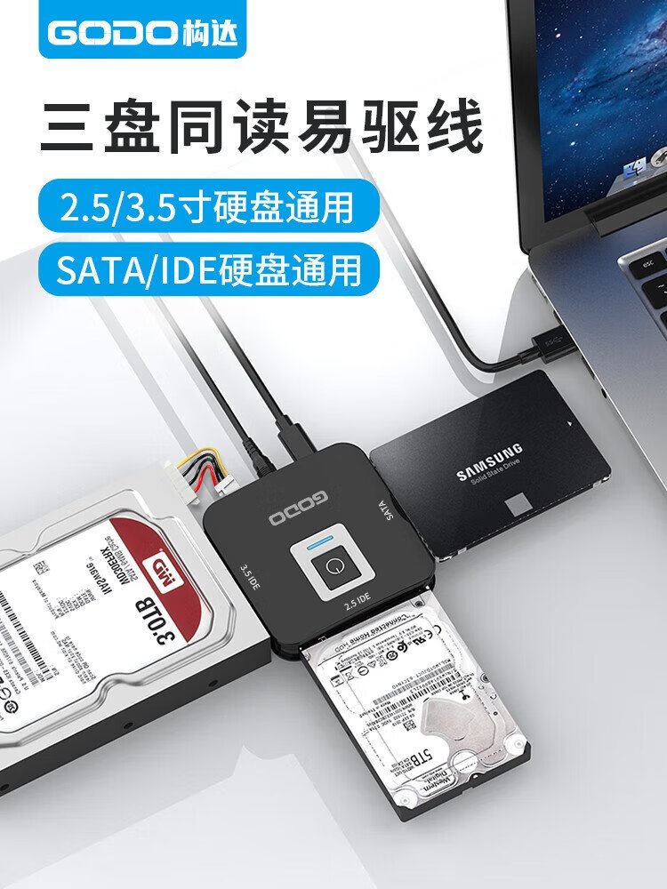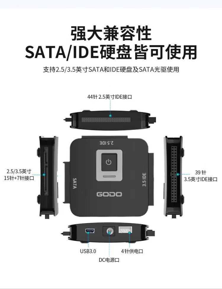 GODO sata机械硬盘盒易驱线ide转usb三合一3.5/2.5笔记本电脑外接硬盘底座连接线盒子 【SATA接口】2.5/3.5英寸配电源