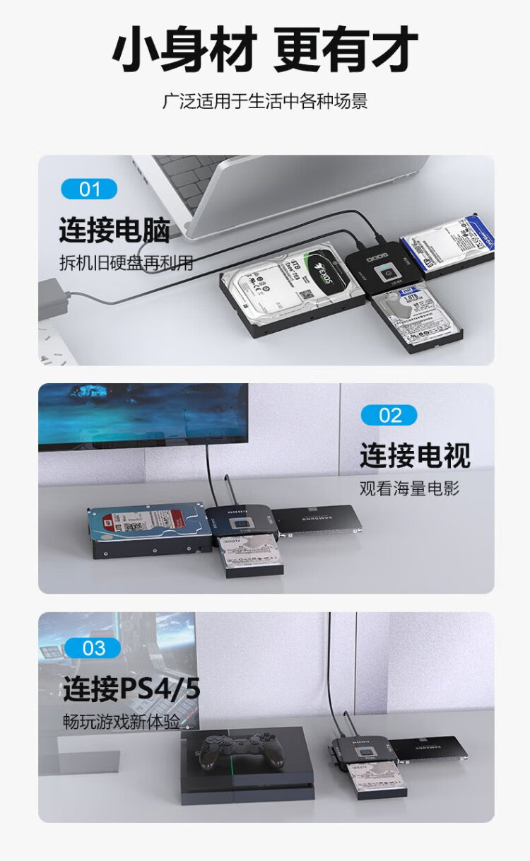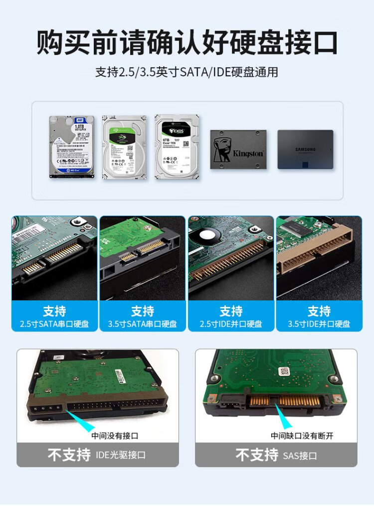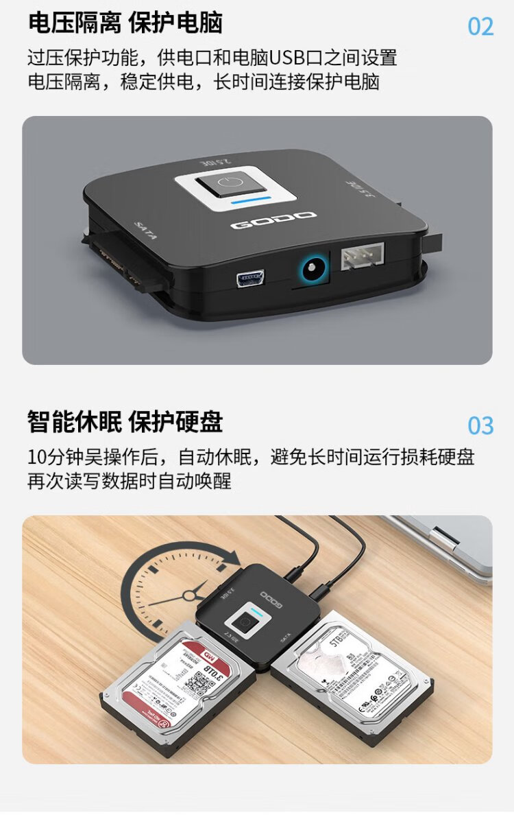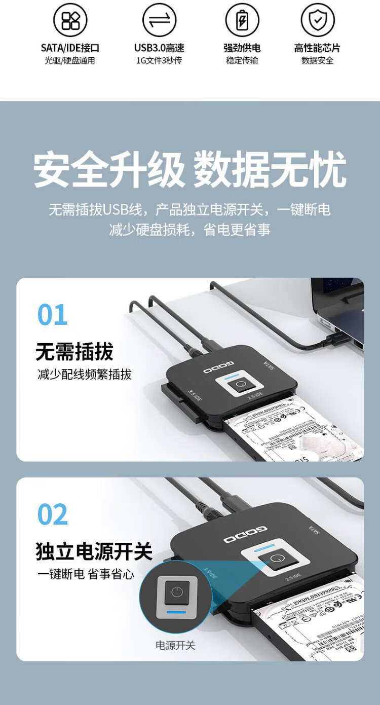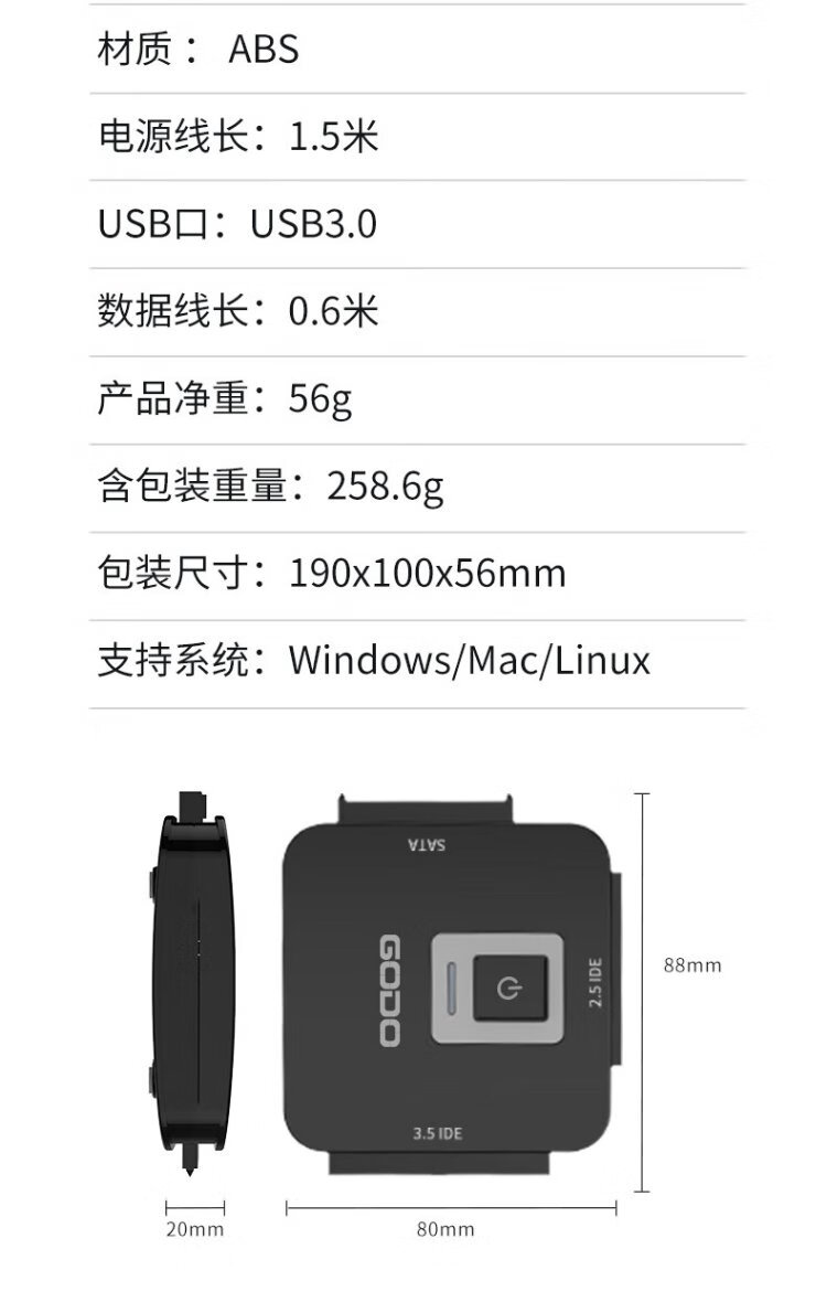 GODO sata机械硬盘盒易驱线ide转usb三合一3.5/2.5笔记本电脑外接硬盘底座连接线盒子 【SATA接口】2.5/3.5英寸配电源