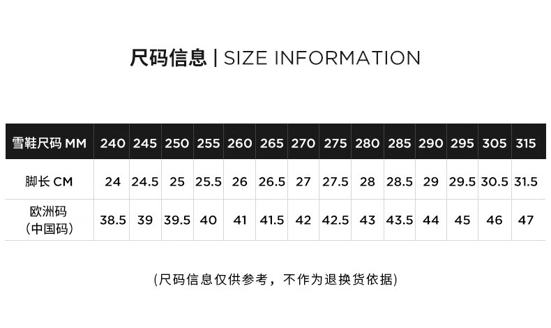 China (cm) 36 - 37 38 - 39 40 - 42 43 - 44 45 - 47