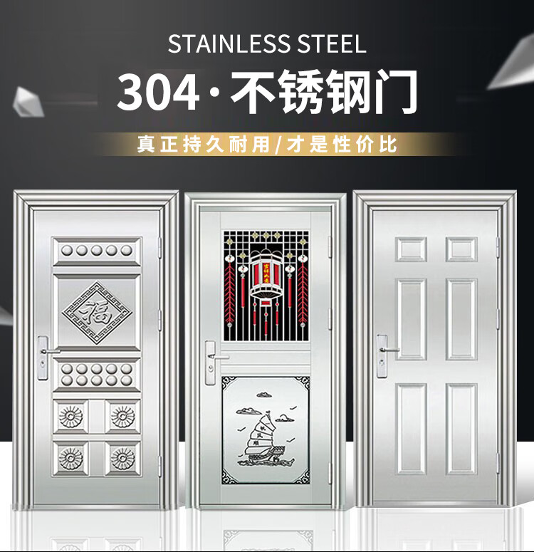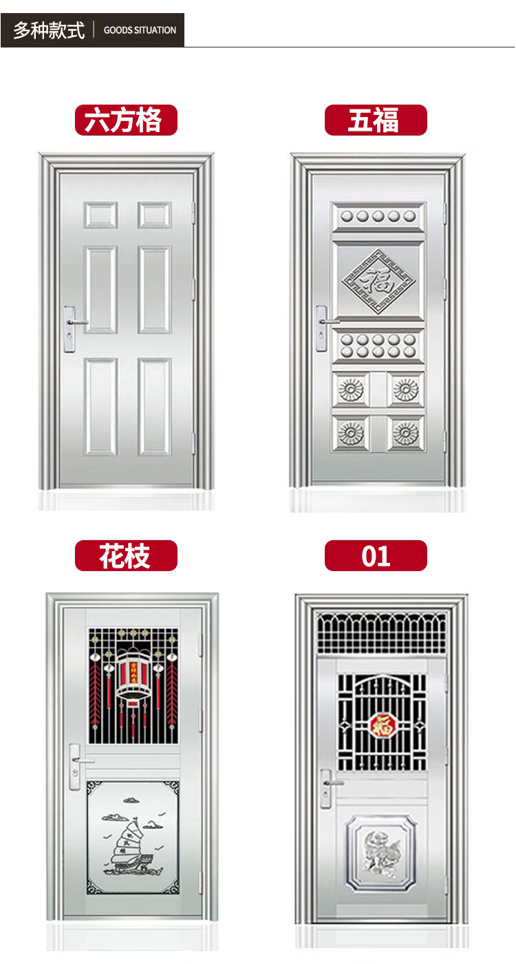 【现货】304不锈钢门大门双开门单门子母门防盗入户门工程进户门 【双开门】六方格1480x2050