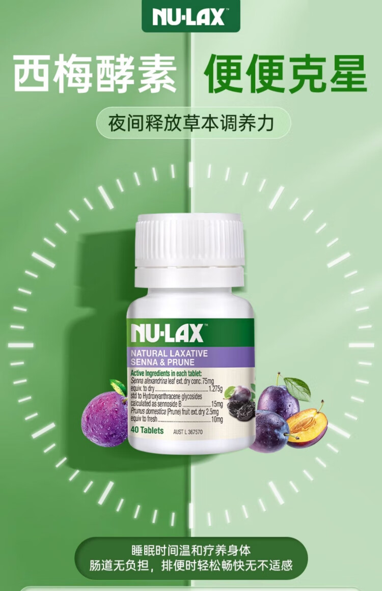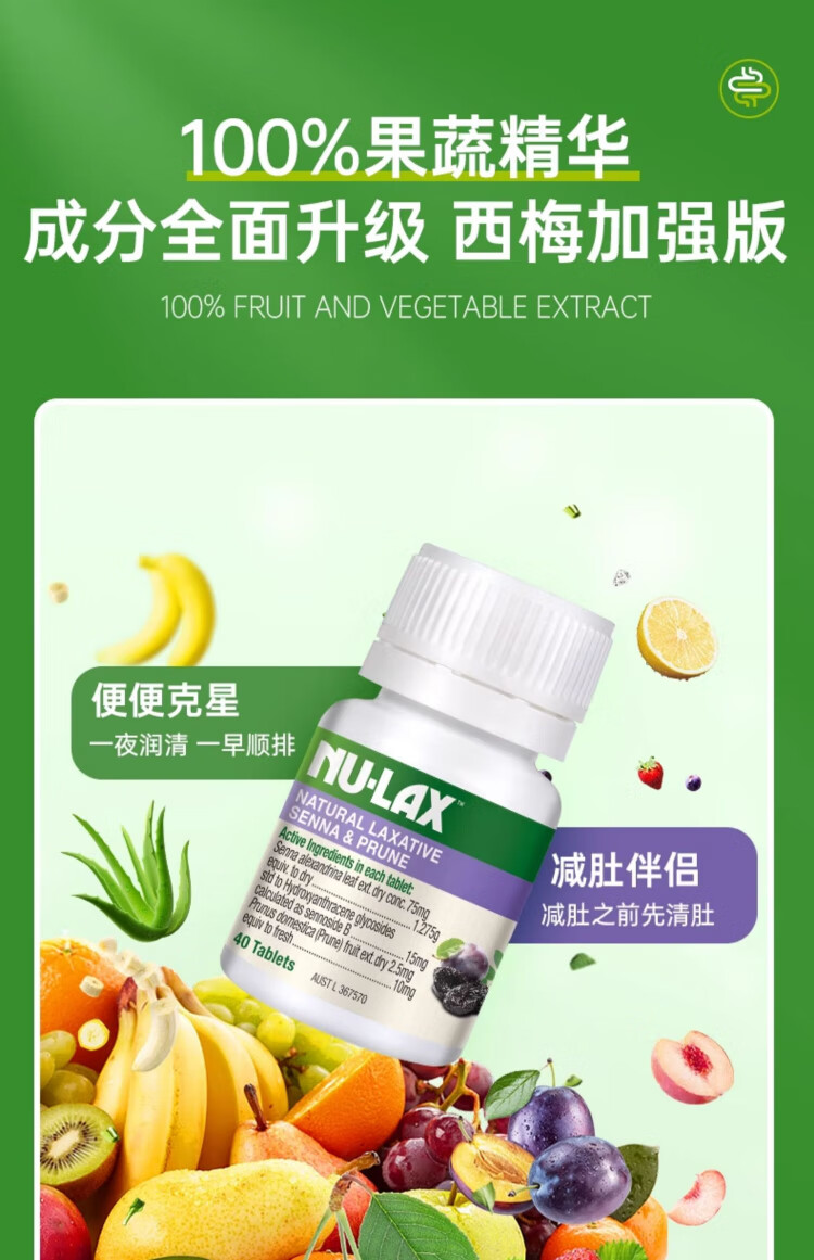 NU Lax Plant Enzyme Tablets Prune Enhanced Version Constipation Cleansing and Laxing Dietary Fiber Moisturizes the Intestine and Eliminates Constipation Imported from Australia Enhanced Version Recommended for Severe Constipation 1 Bottle of Prune Enzyme Tablets