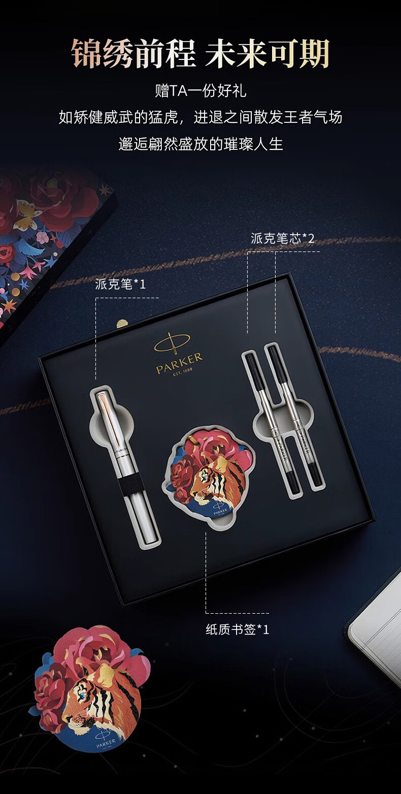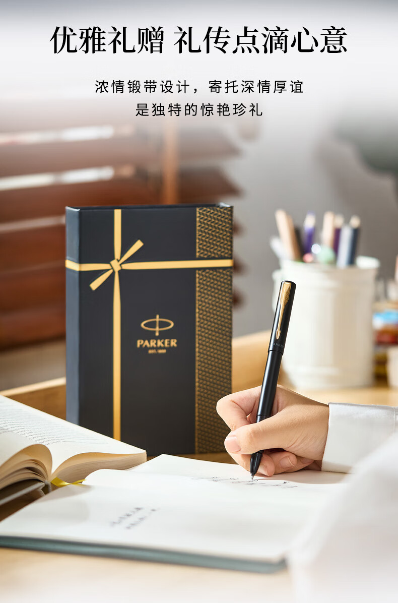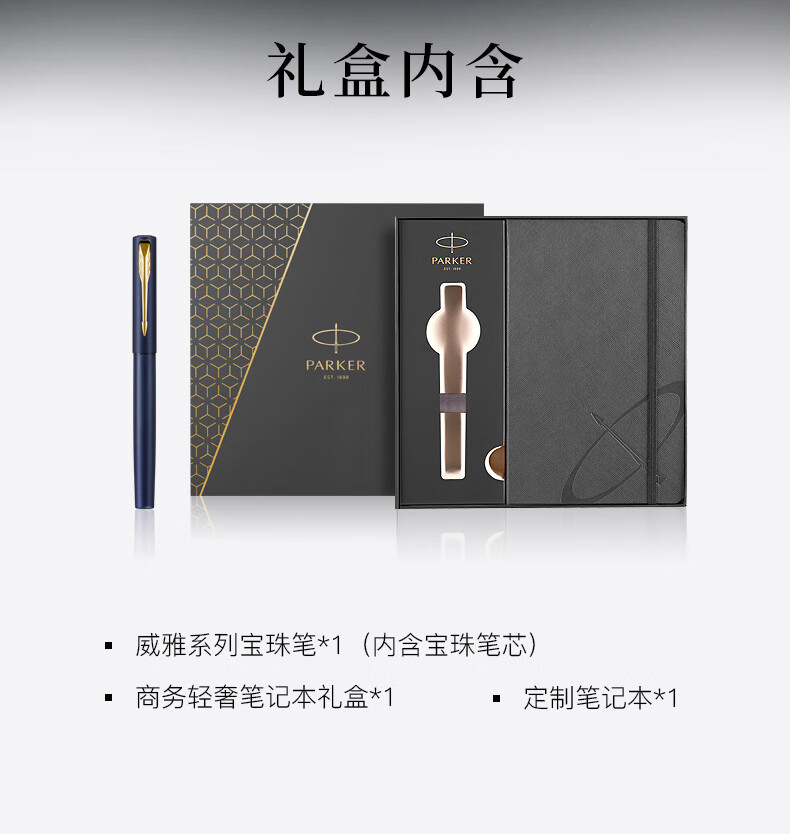 派克(PARKER)生日礼物宝珠笔圆珠笔高端威雅商务套装送礼免费定制刻字毕业礼品伴手礼上岸礼物练字笔纪念品礼物 威雅XL经典黑金夹宝珠笔+笔芯礼盒