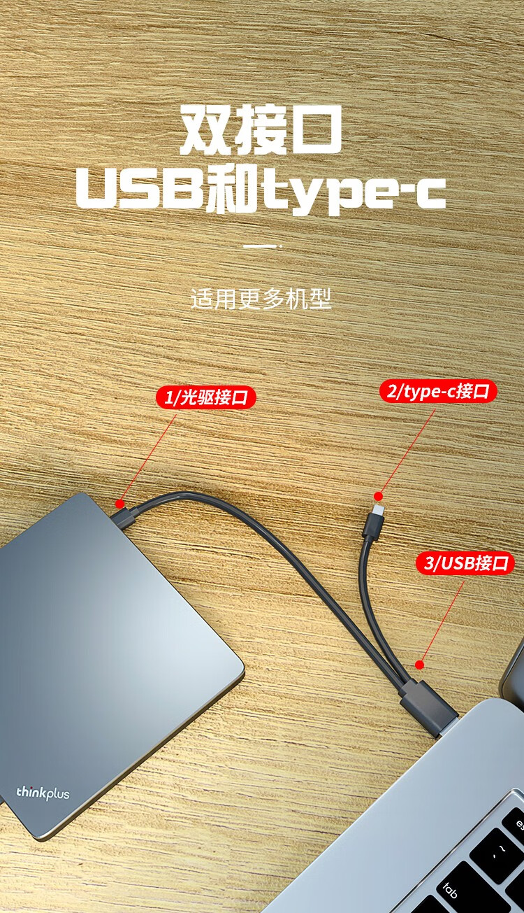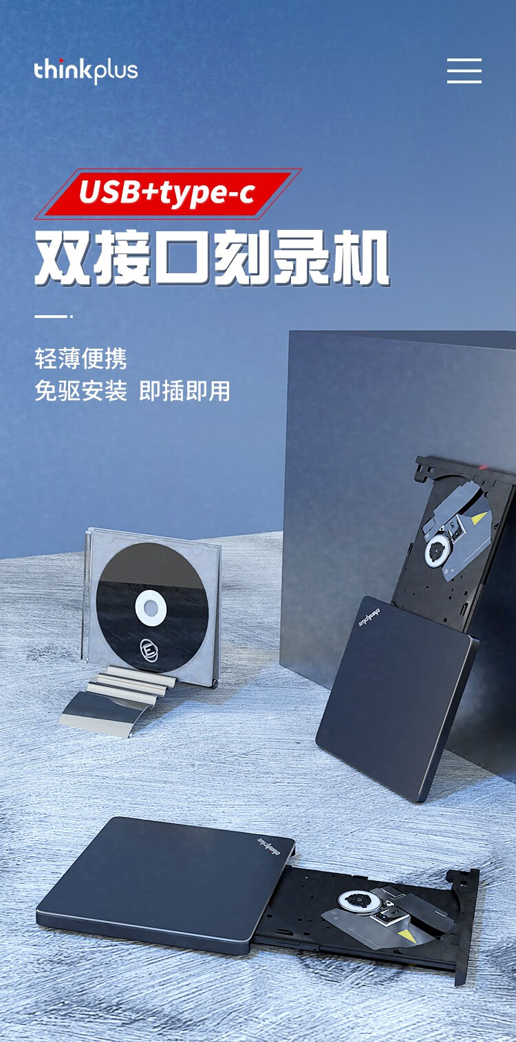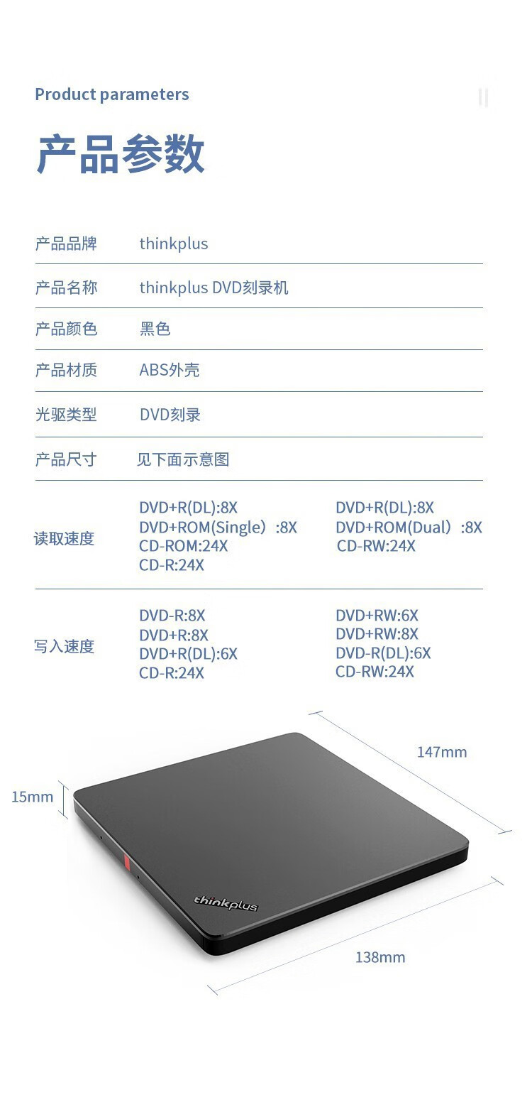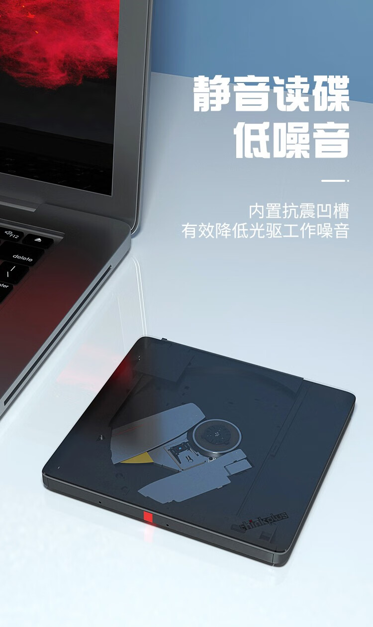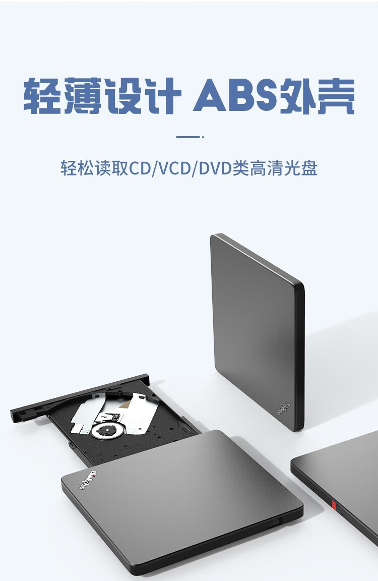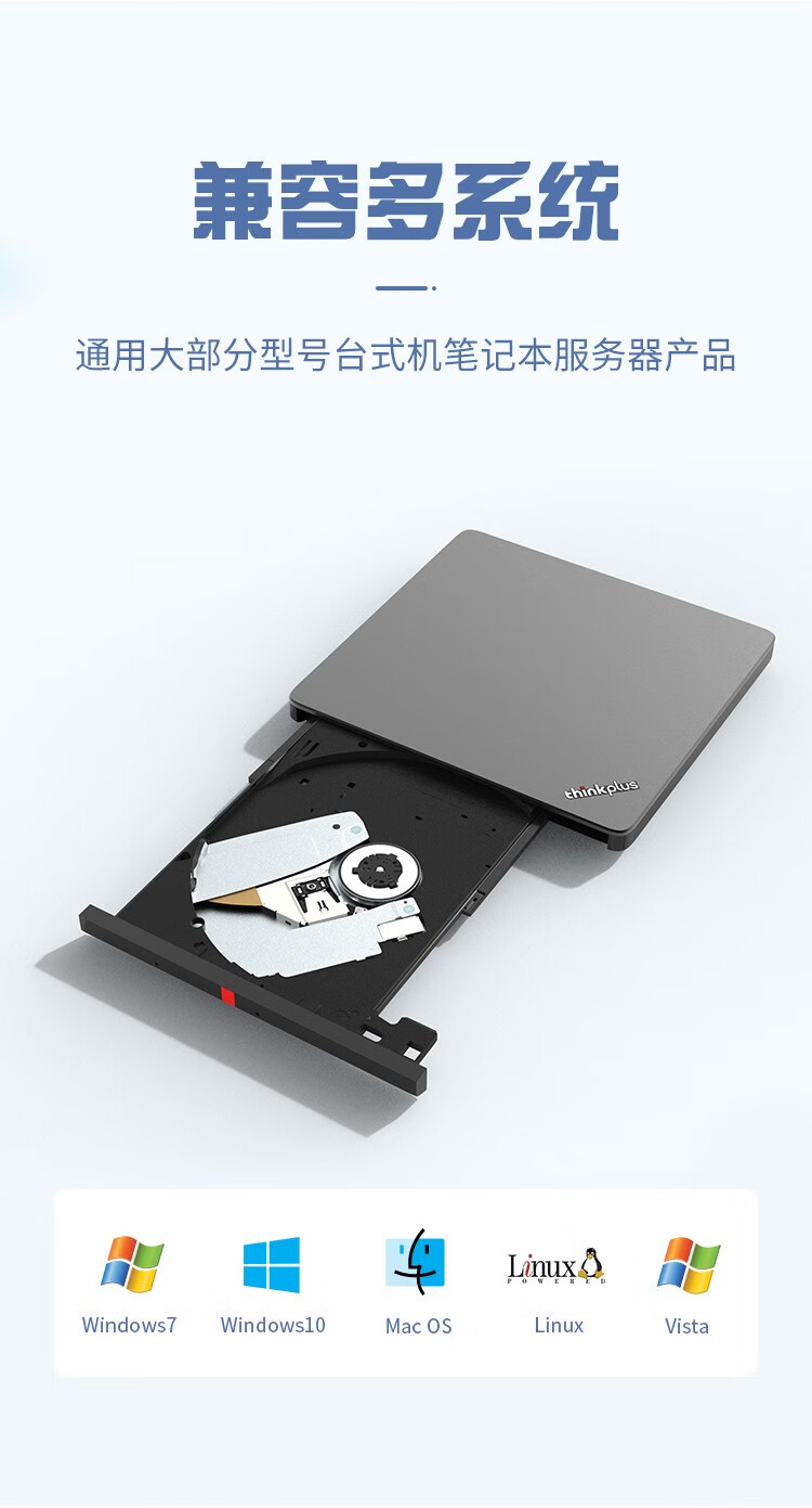 联想光驱TX800外置dvd移动刻录机笔记本电脑台式机通用cd光驱盒光碟光盘刻碟机 黑色【TX801双接口刻录光驱】