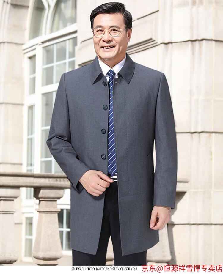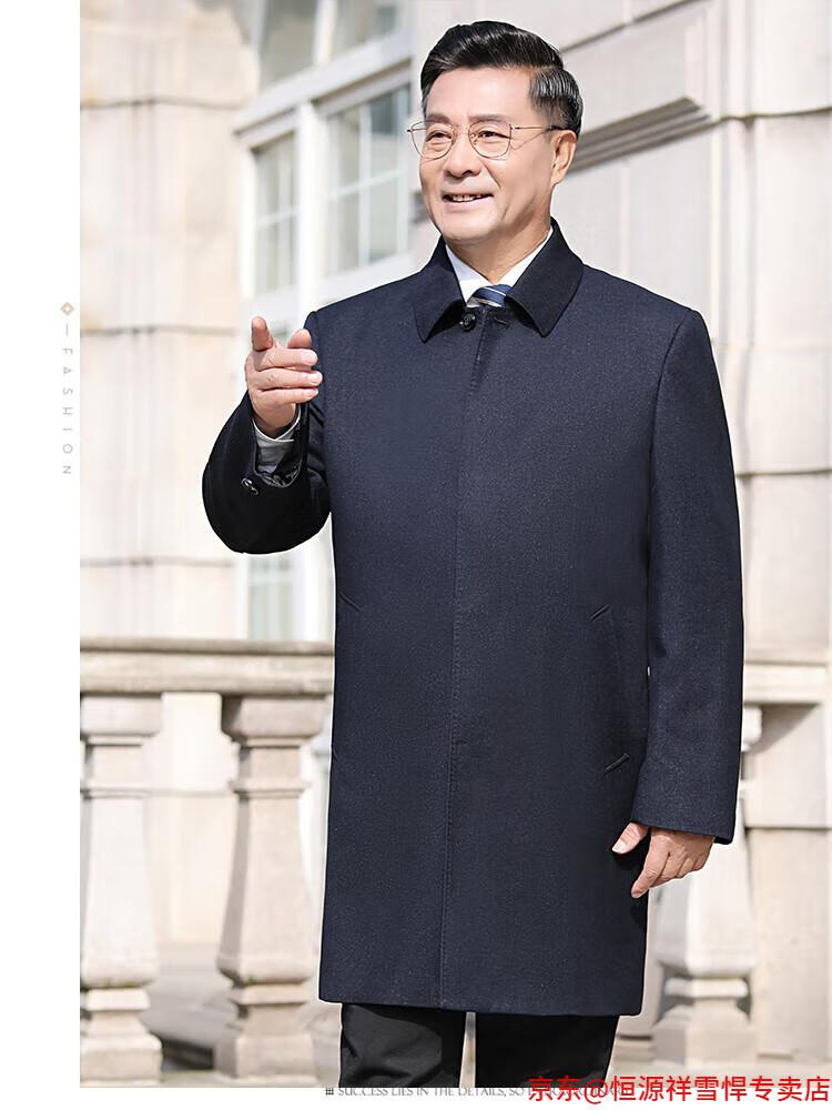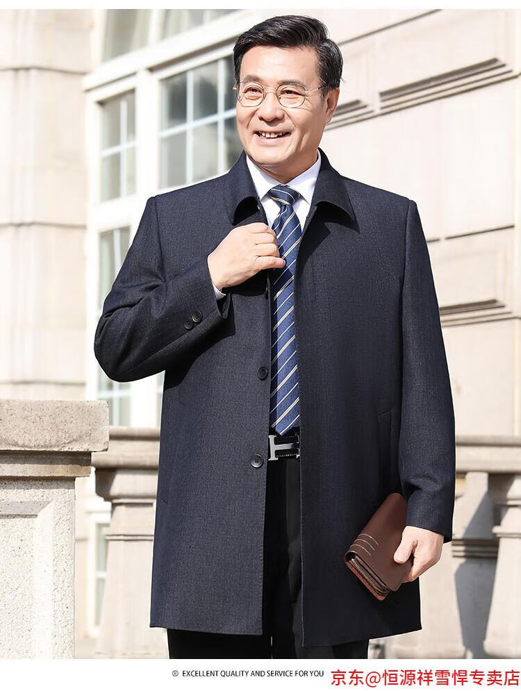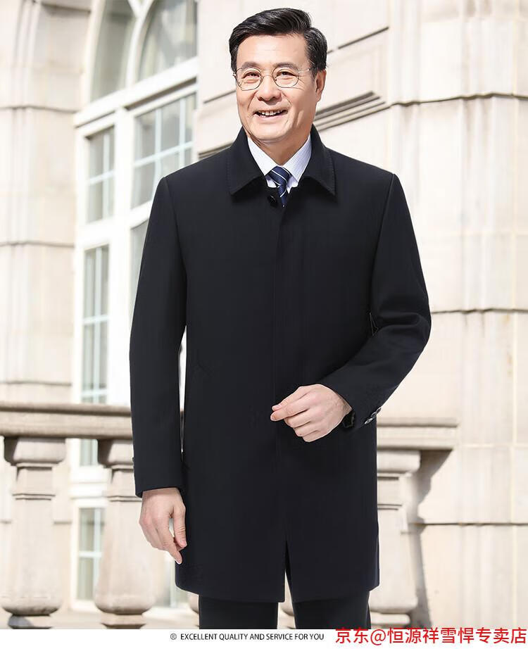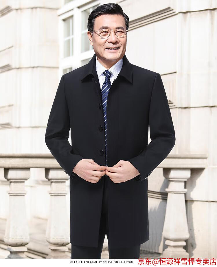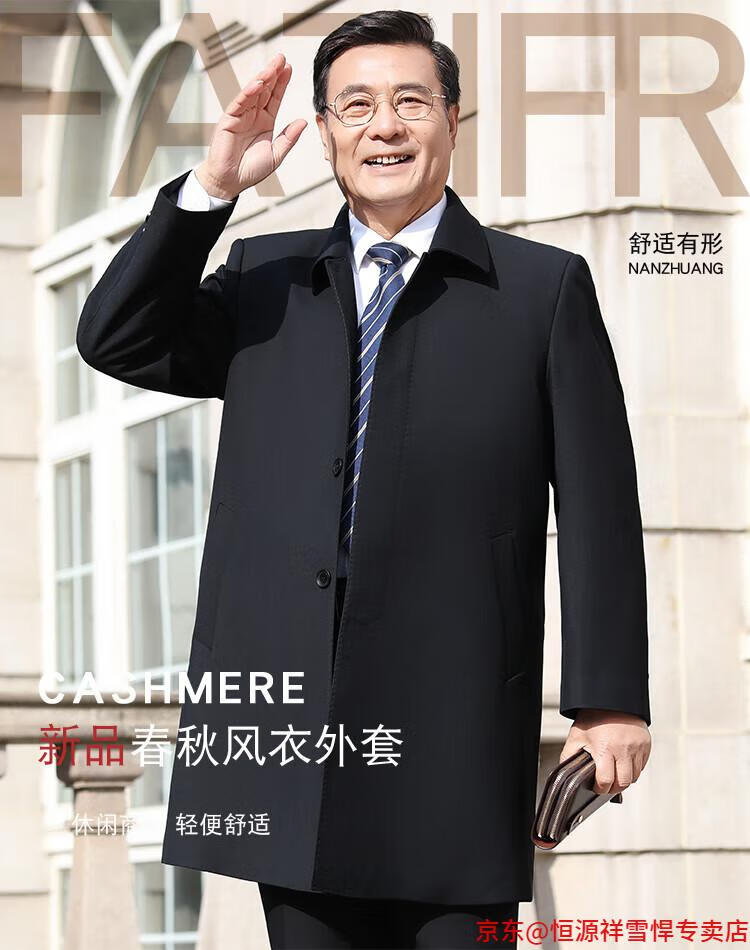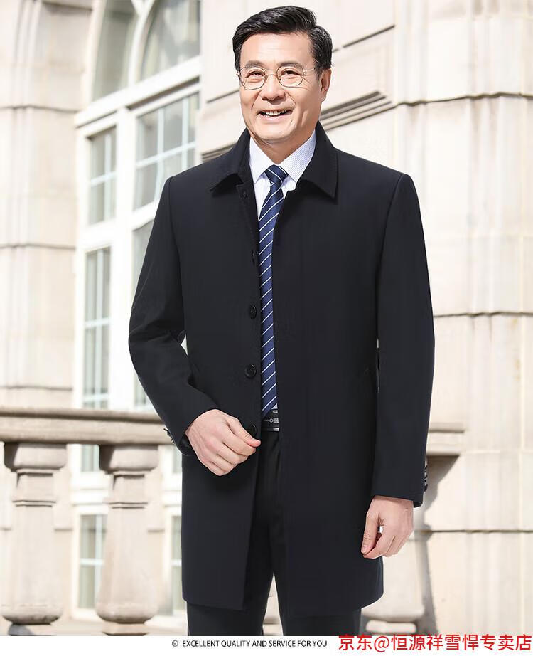Hengyuanxiang middle-aged men's windbreaker mid-length autumn clothing business casual middle-aged and elderly fathers spring and autumn coats navy 185