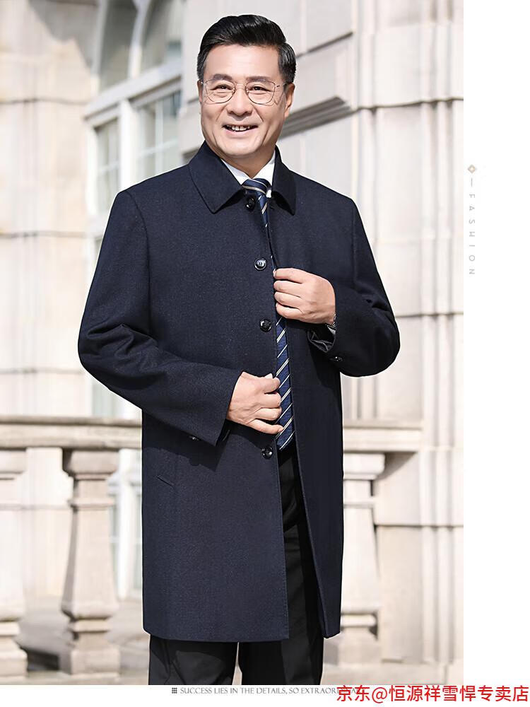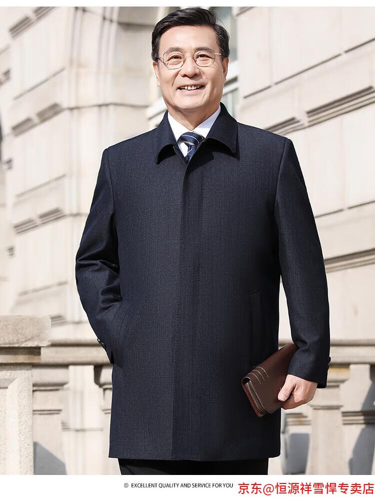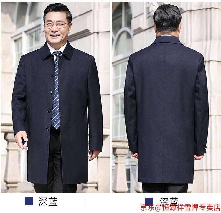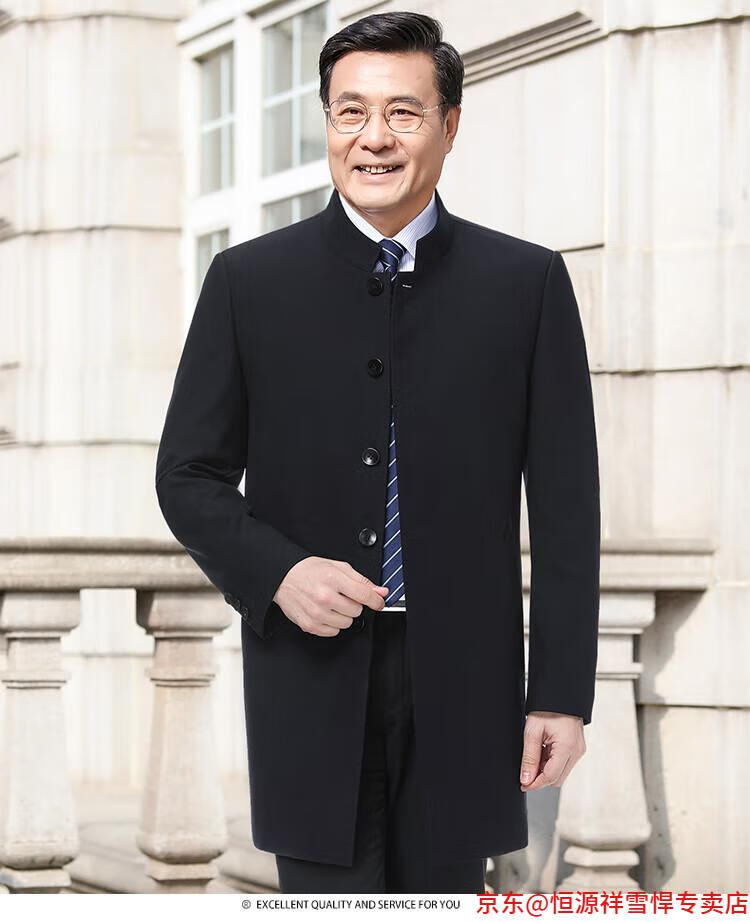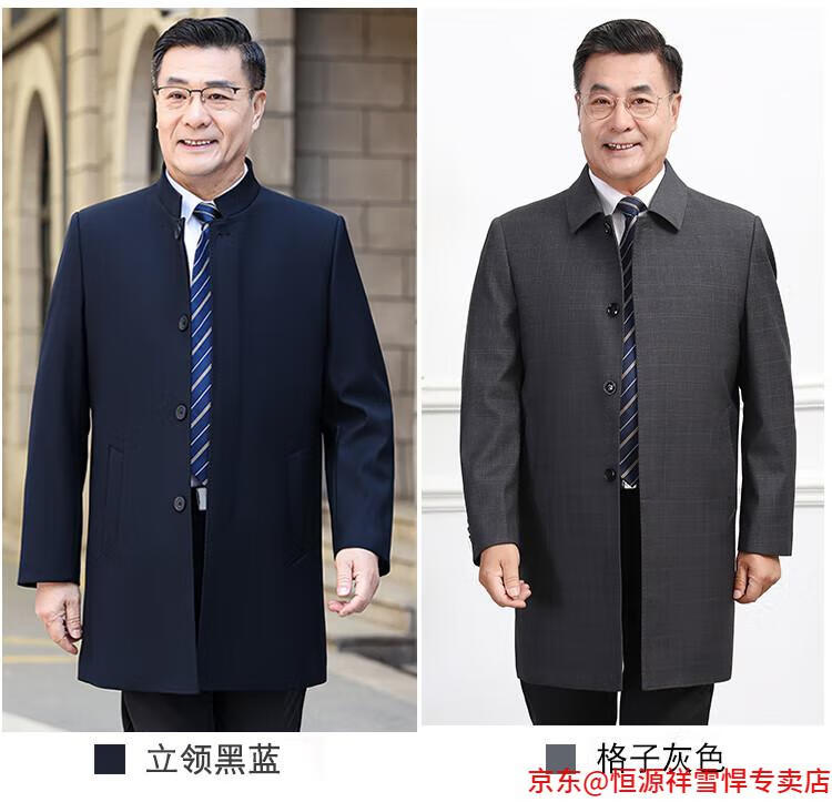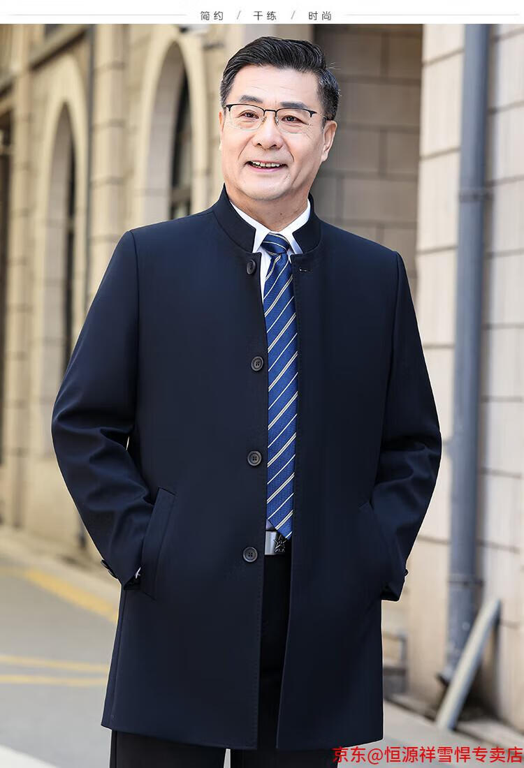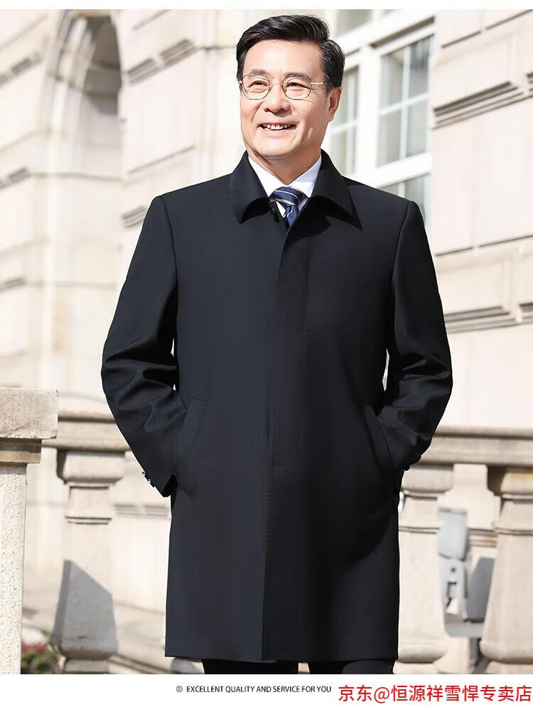 Hengyuanxiang middle-aged men's windbreaker mid-length autumn clothing business casual middle-aged and elderly fathers spring and autumn coats navy 185