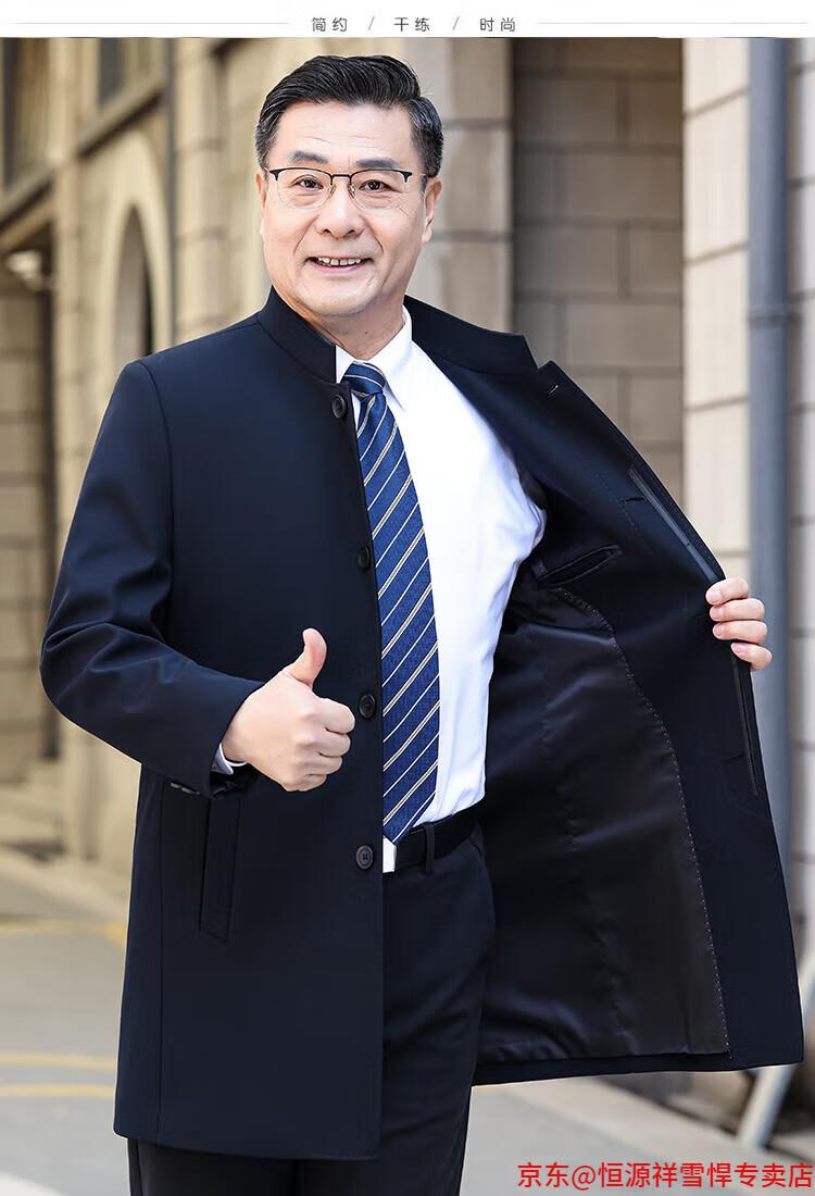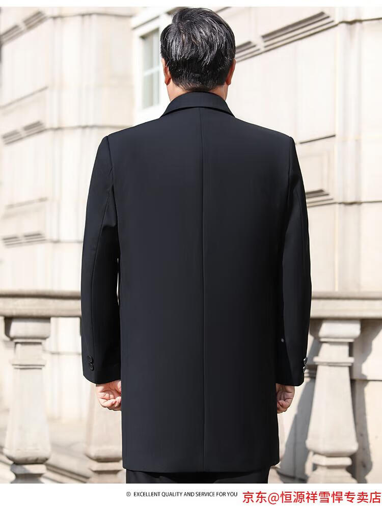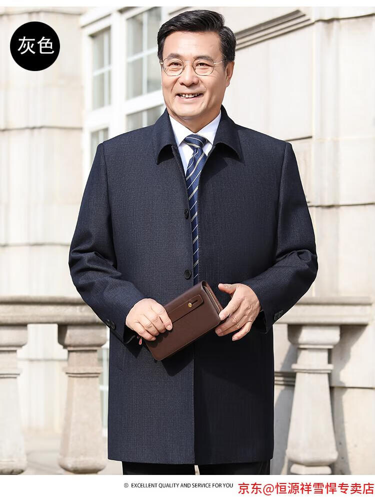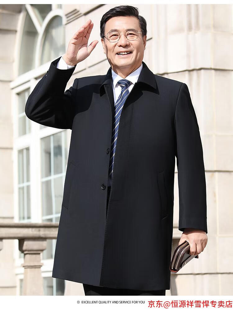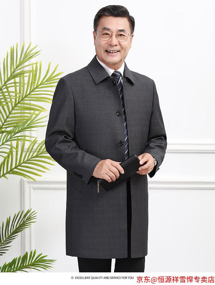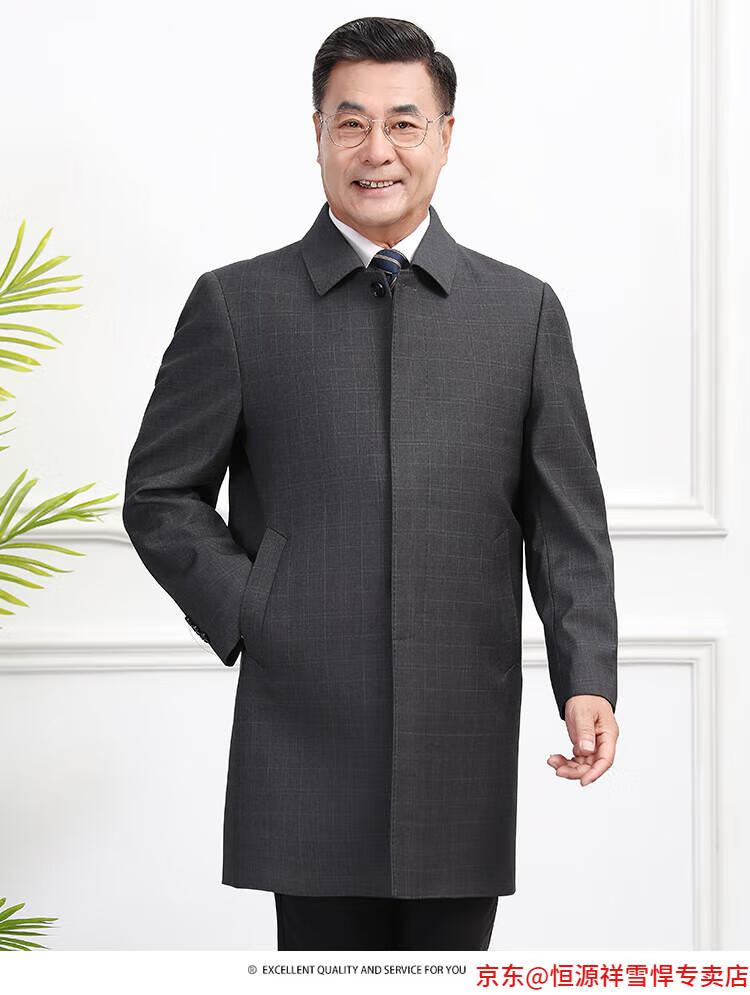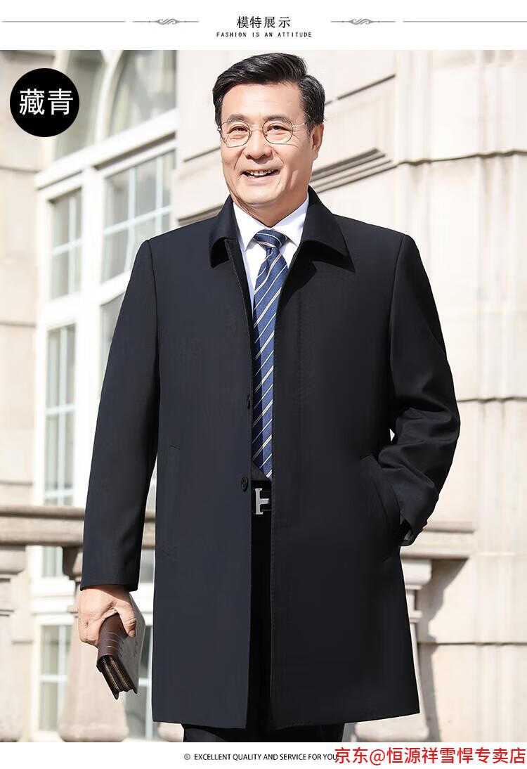 Hengyuanxiang middle-aged men's windbreaker mid-length autumn clothing business casual middle-aged and elderly fathers spring and autumn coats navy 185