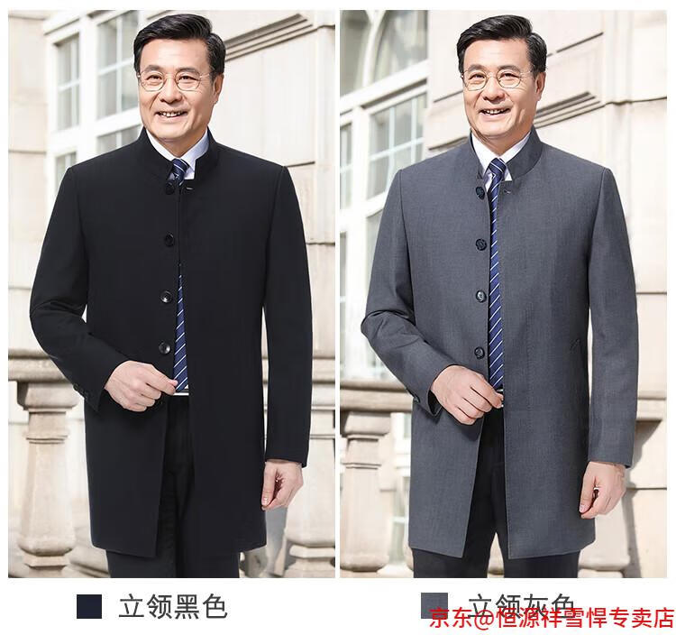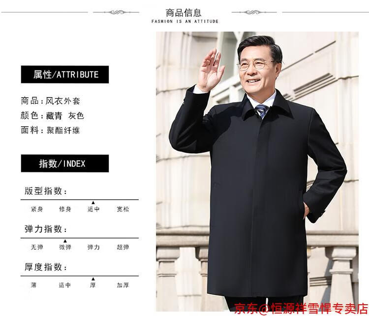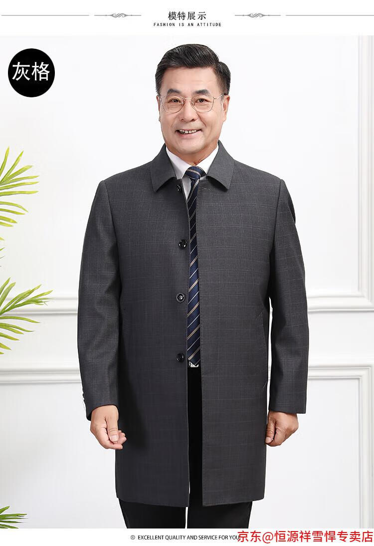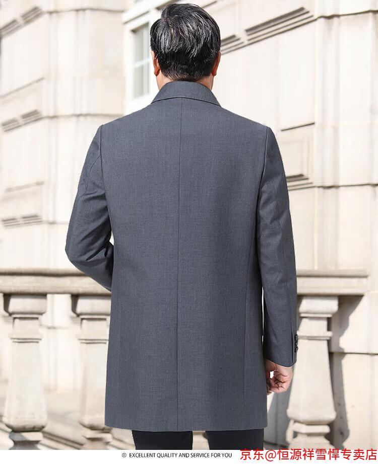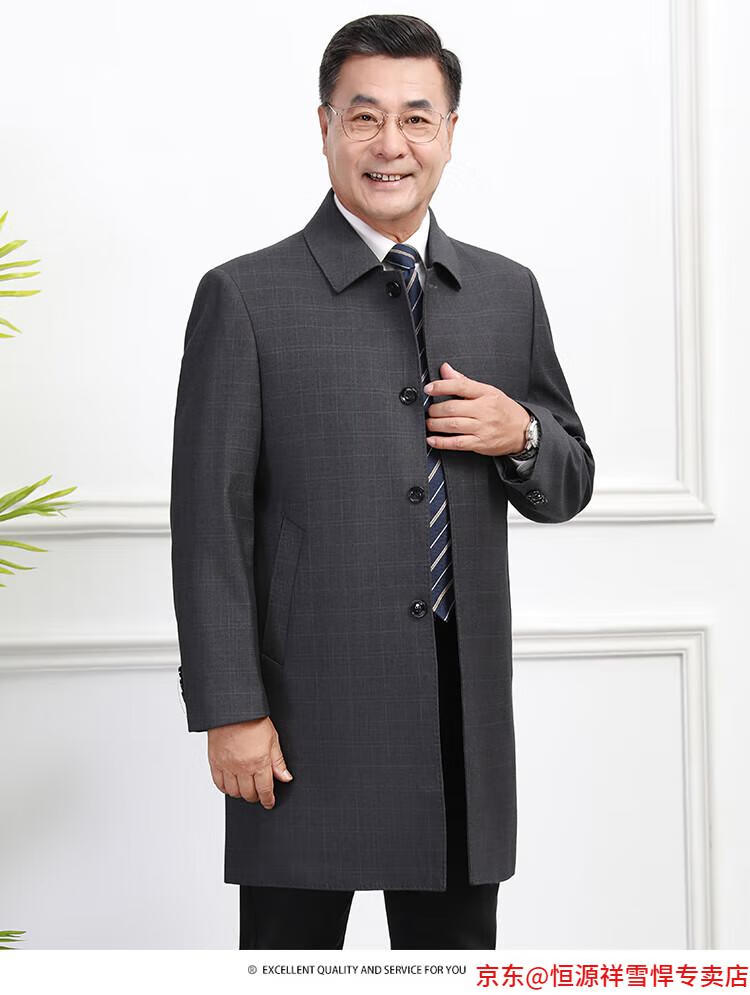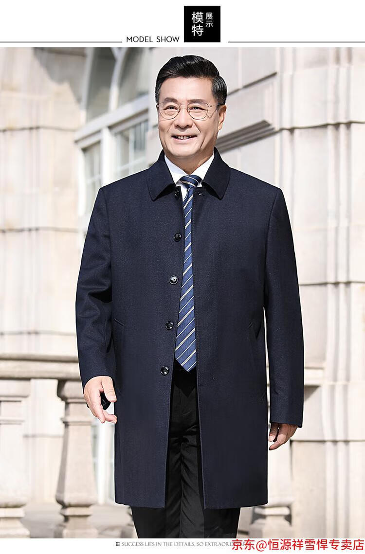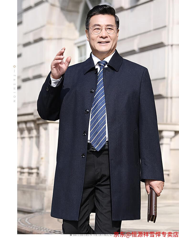 Hengyuanxiang middle-aged men's windbreaker mid-length autumn clothing business casual middle-aged and elderly fathers spring and autumn coats navy 185