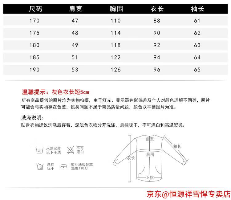 China (cm) 165 / 88-90 170 / 96-98 175 / 108-110 180 / 118-122 185 / 126-130