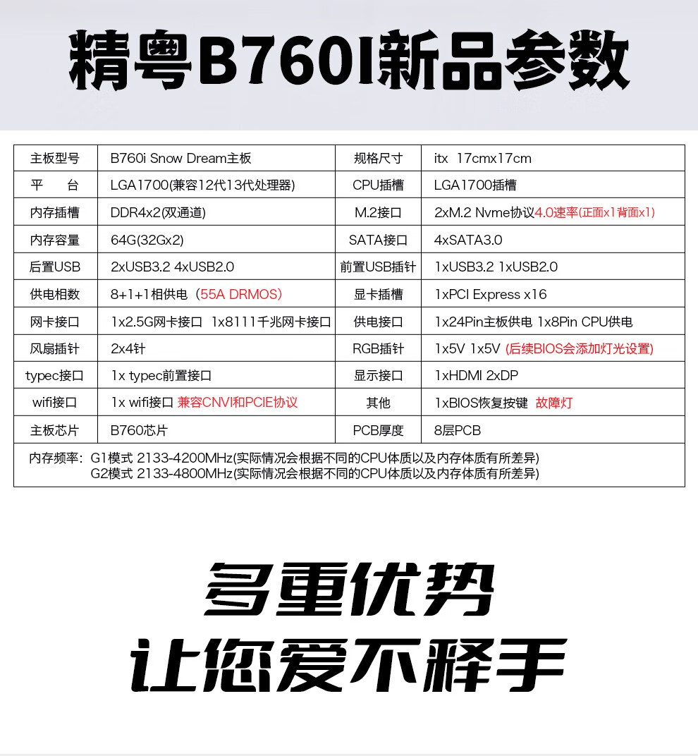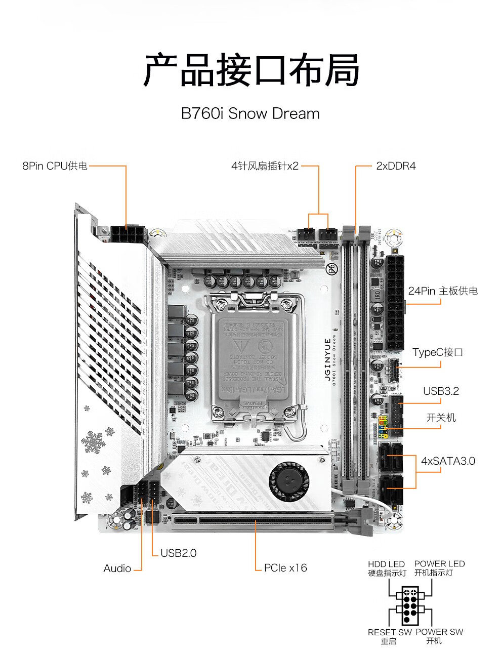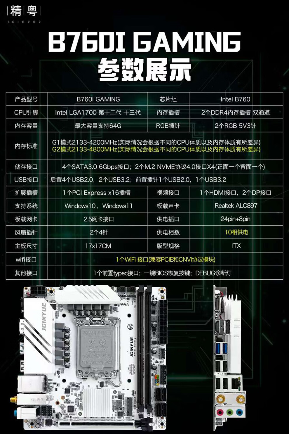 Carte mère Jingyue B760i ITX double carte réseau M.2 2.5G RGB 1700 broches 12e génération 13e génération 14e génération i3 12100F/i5 12400F/12400/13400F/14400F Jingyue B760I GAMING carte mère carte mère unique