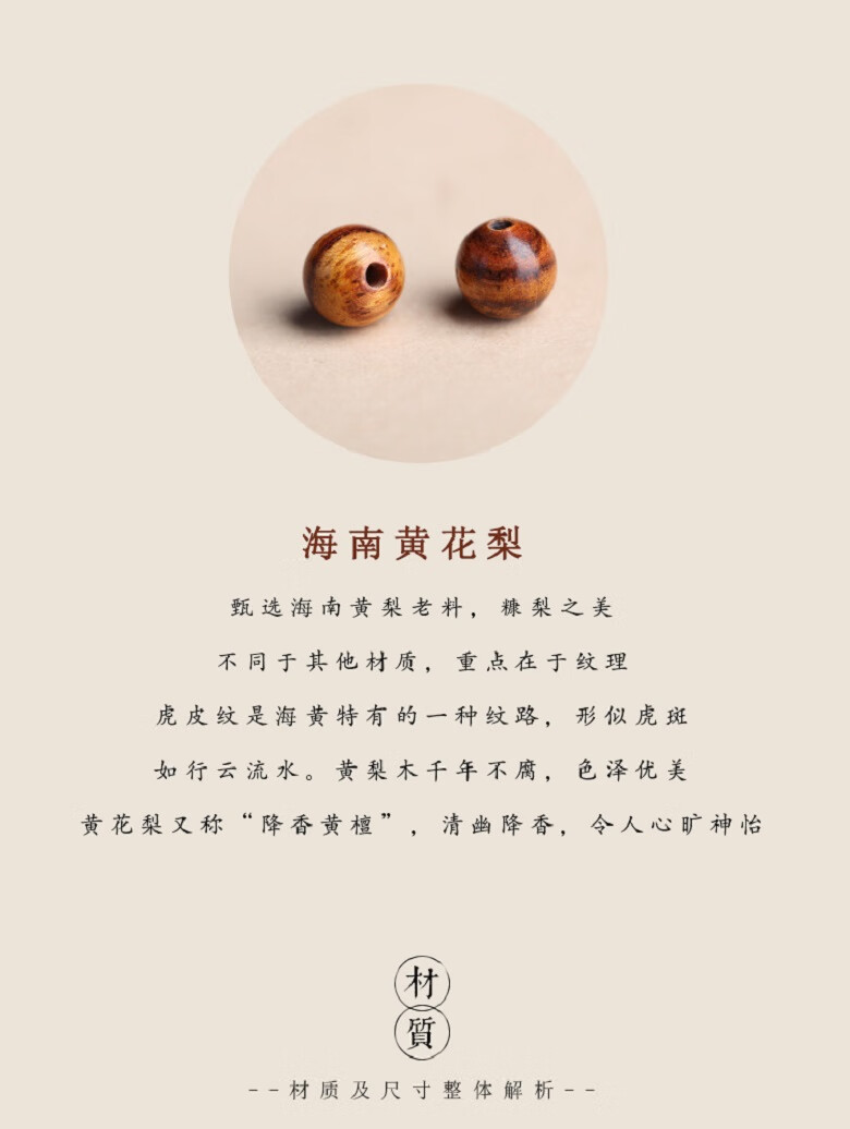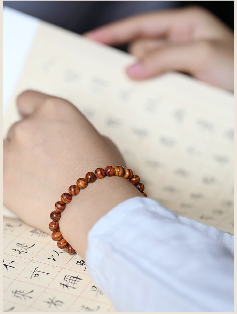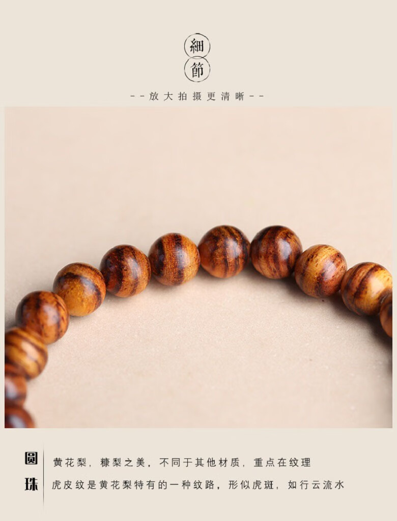 Auspicious Millennium Huanghuali Bracelet Tiger Skin Pattern Old Material Falling Fragrance Dalbergia Bracelet Handmade Buddhist Beads Birthday Gift Women's Huanghuali Bracelet 6mm*30 Pieces