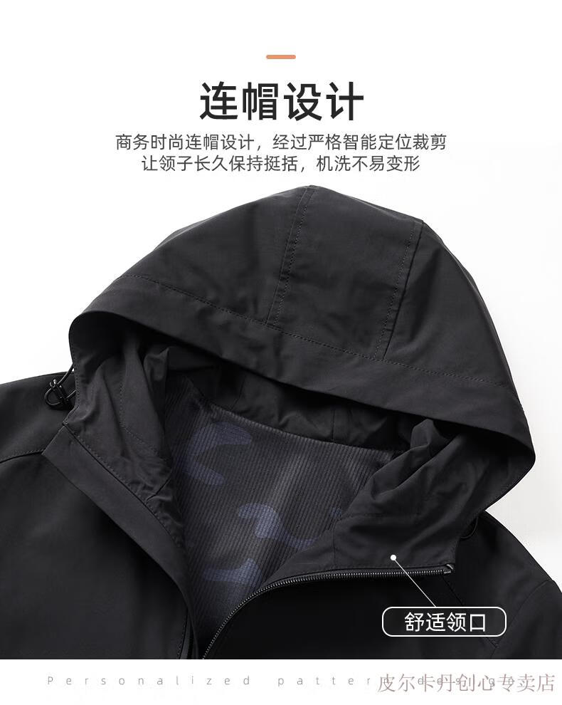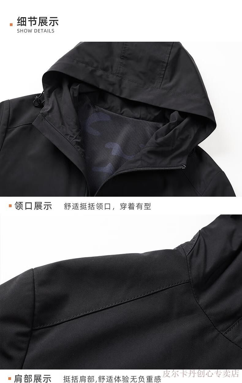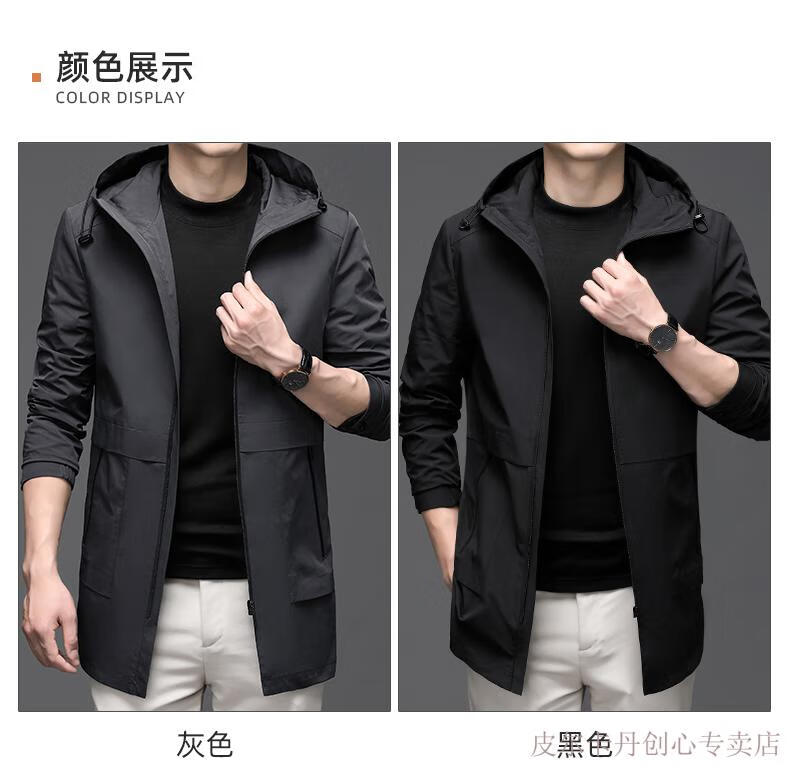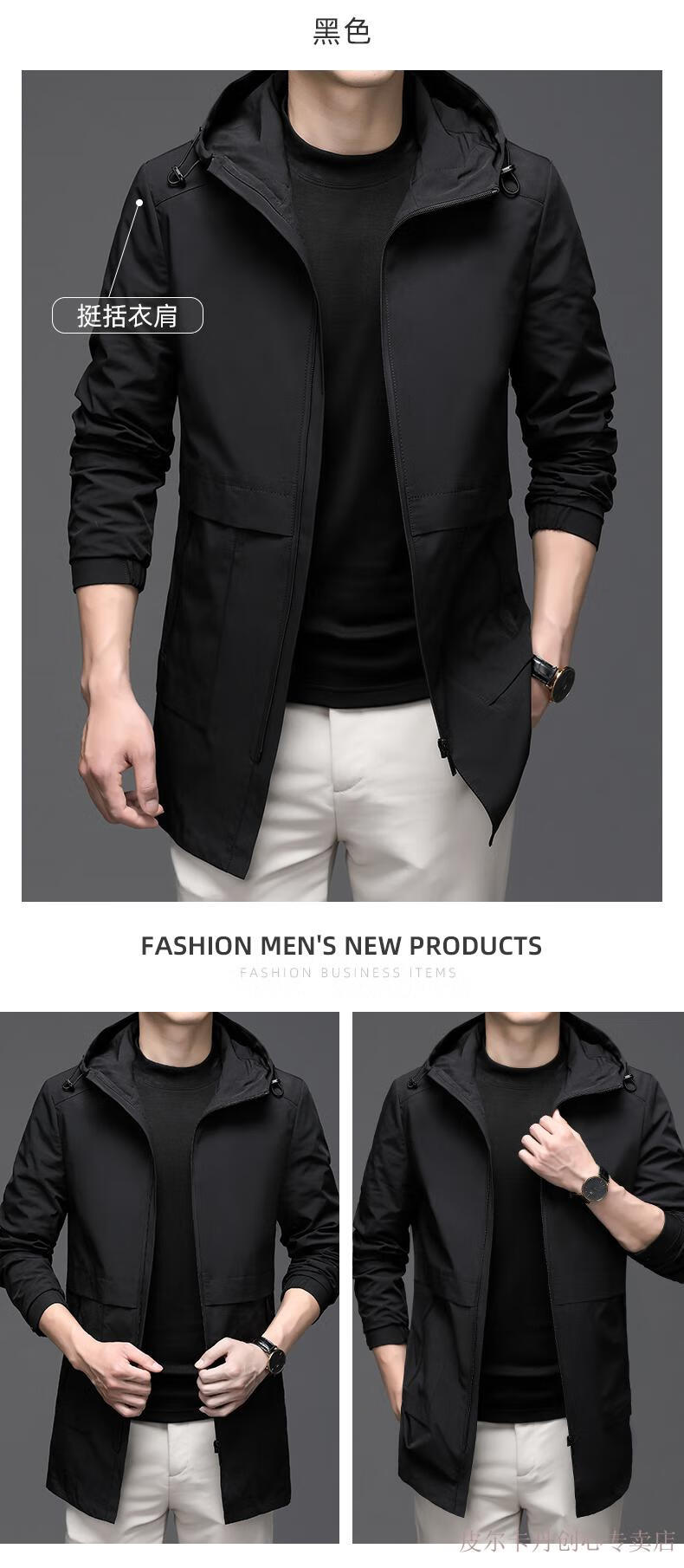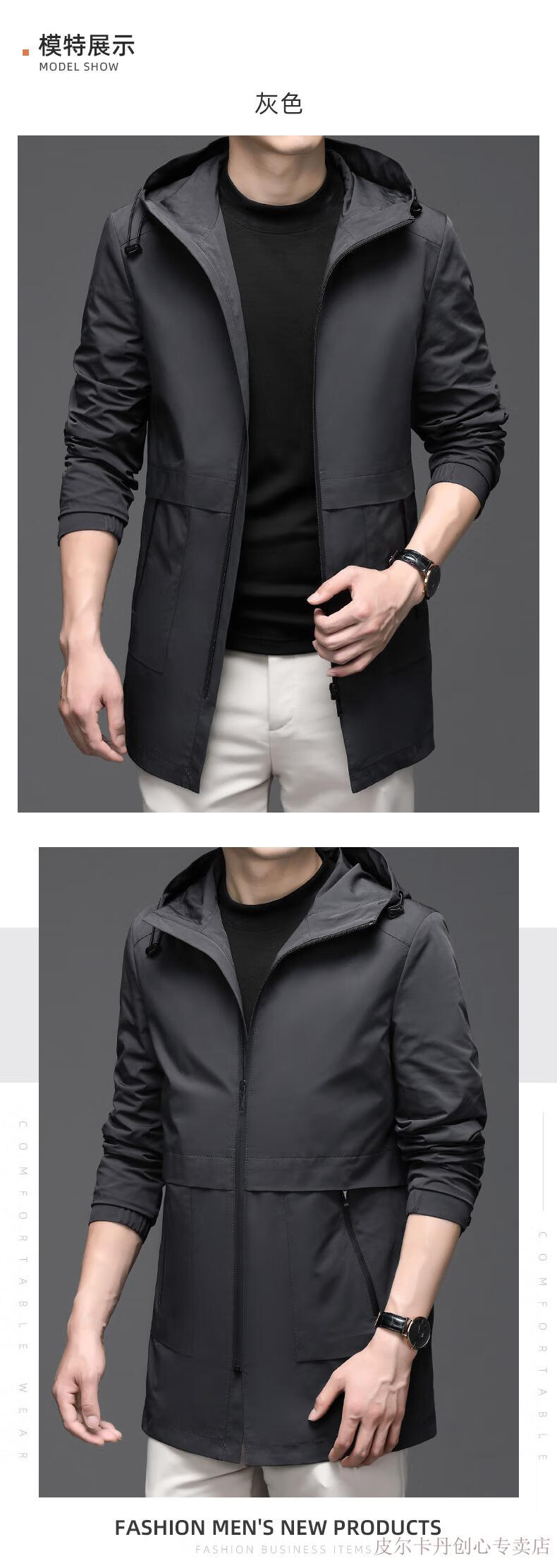 皮尔卡丹(pierre cardin)【易穿搭】中长款风衣男士连帽衫外套春秋季宽松大码运动休闲 黑色 180/XL