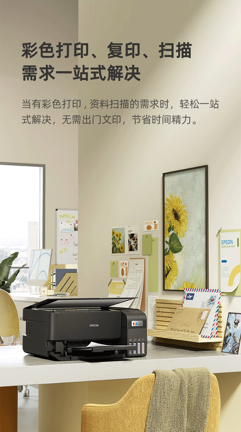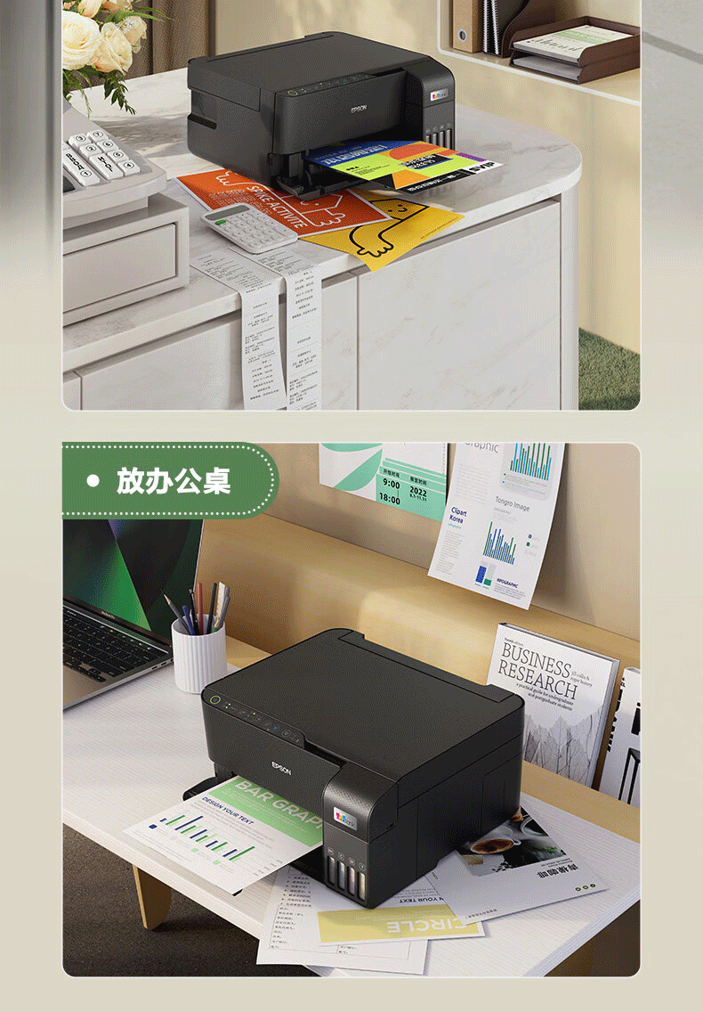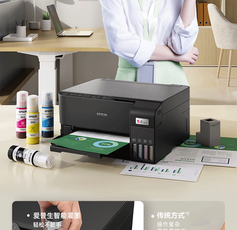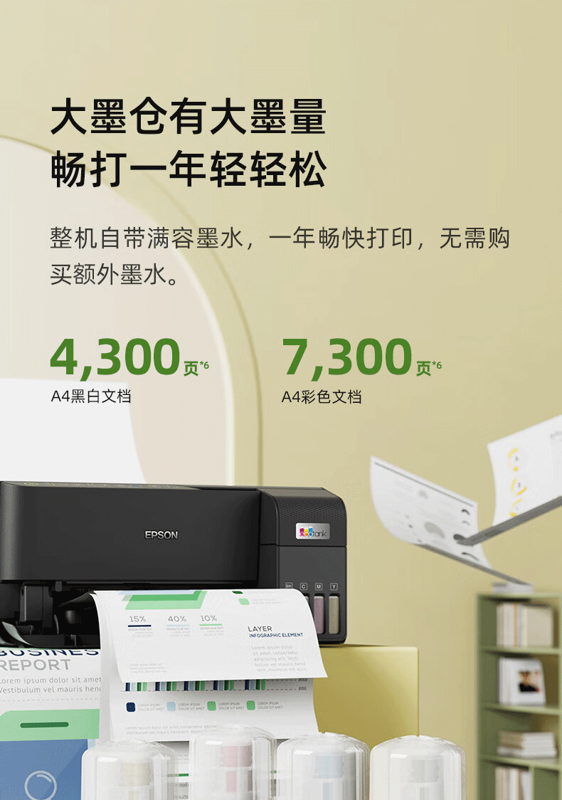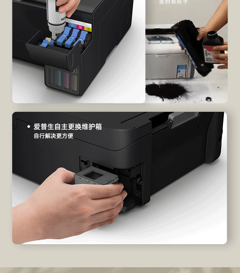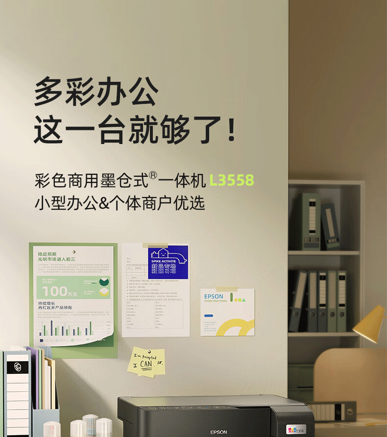 爱普生(EPSON)L3558/6商用办公黑白彩色打印机 多功能一体机 (打印 复印 扫描)家用办公 L3556白色