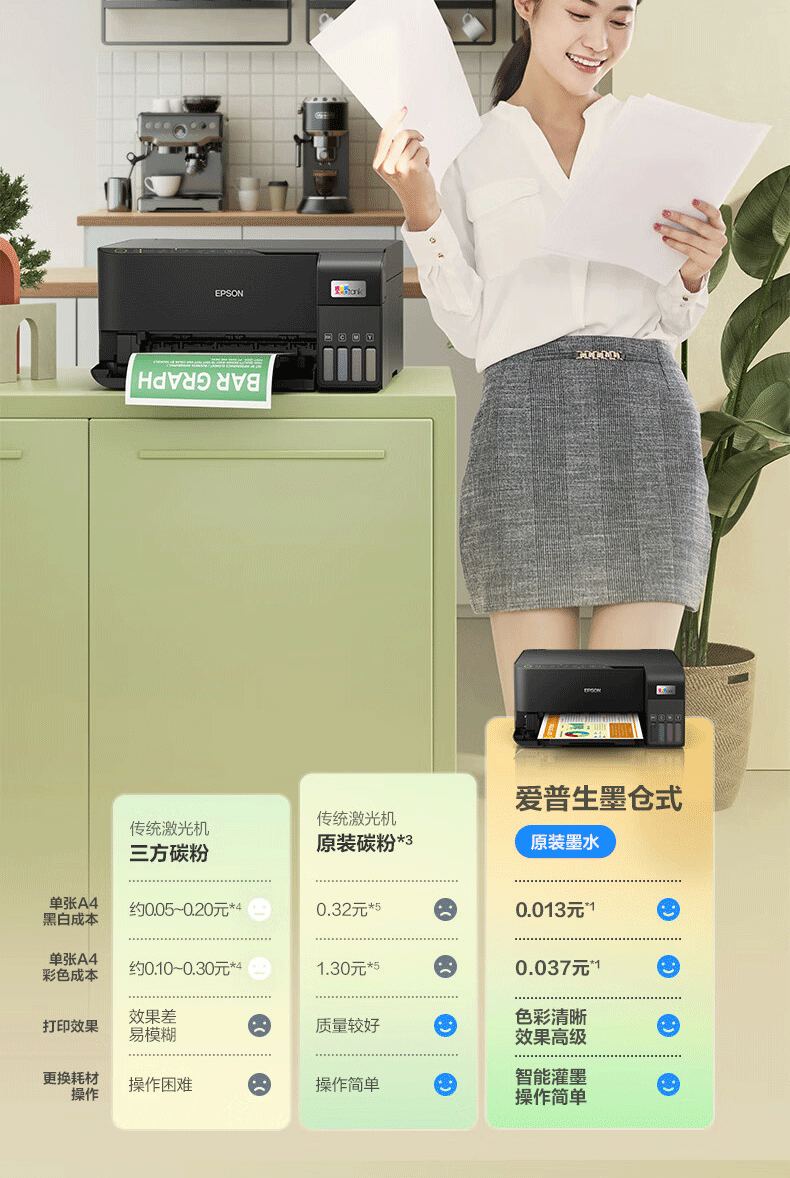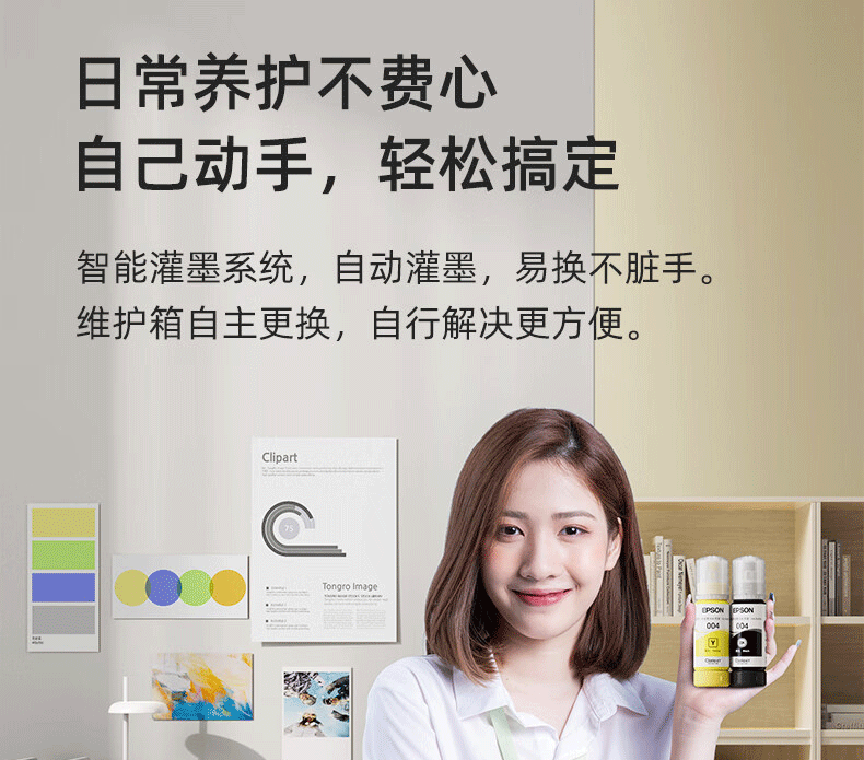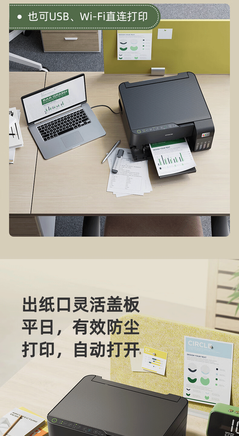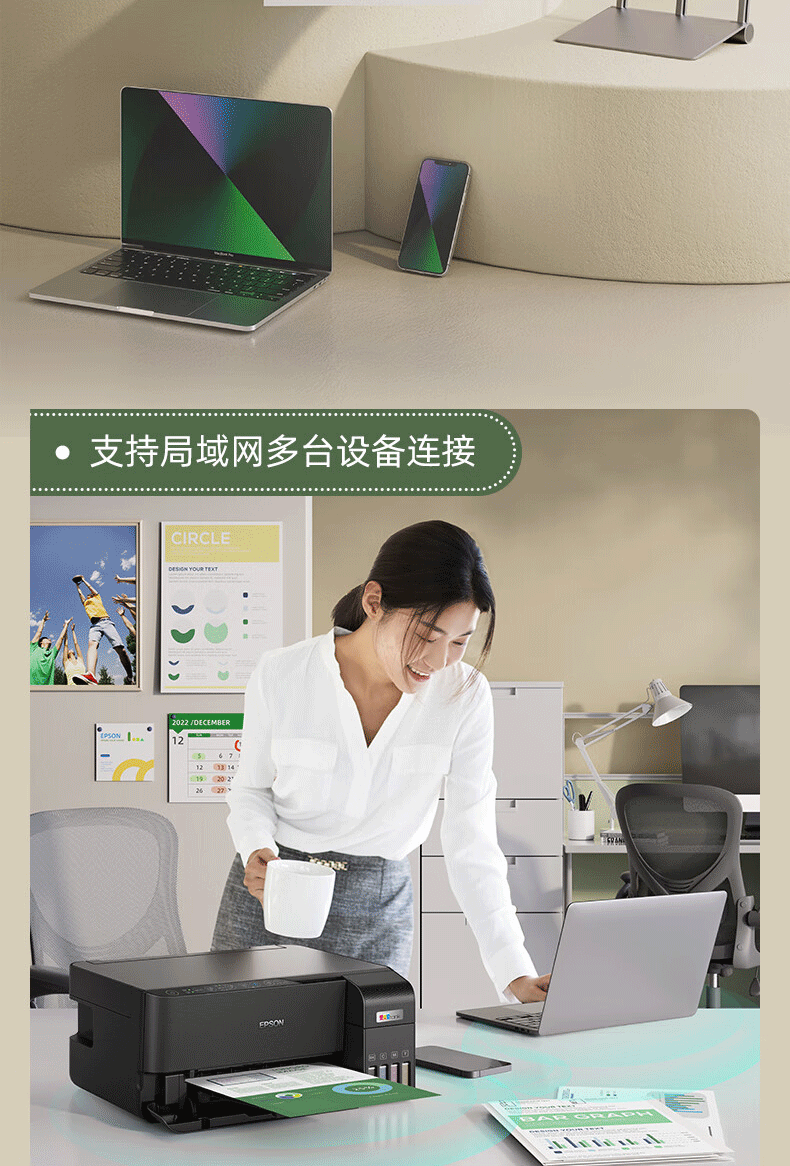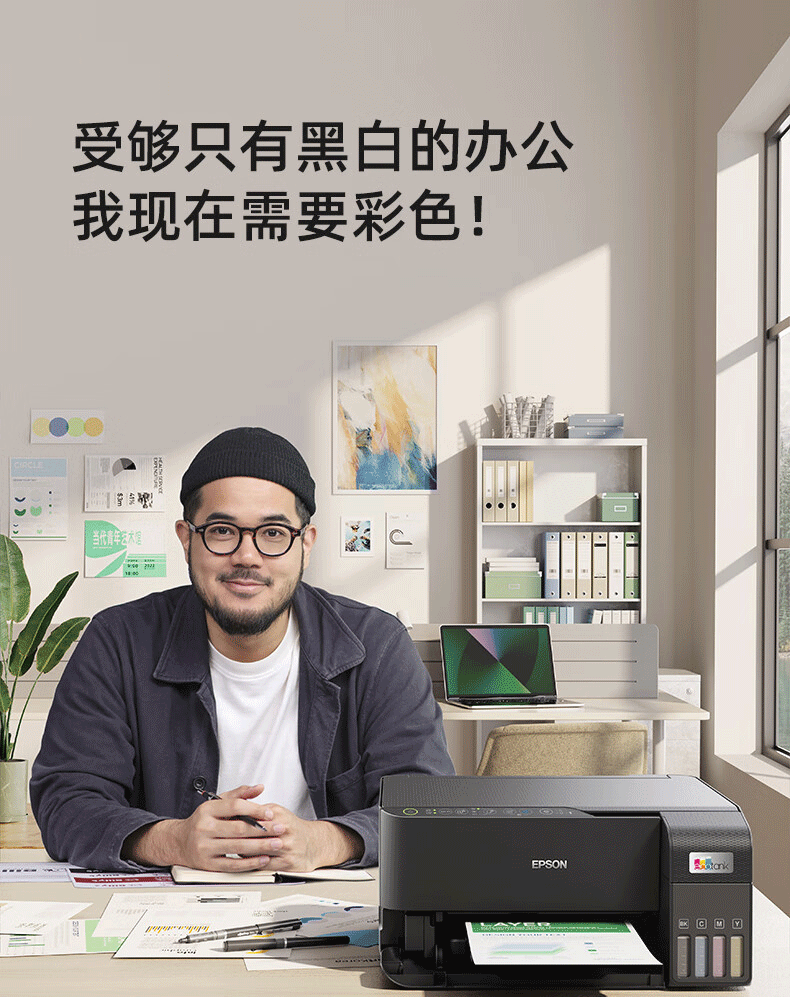 爱普生(EPSON)L3558/6商用办公黑白彩色打印机 多功能一体机 (打印 复印 扫描)家用办公 L3556白色