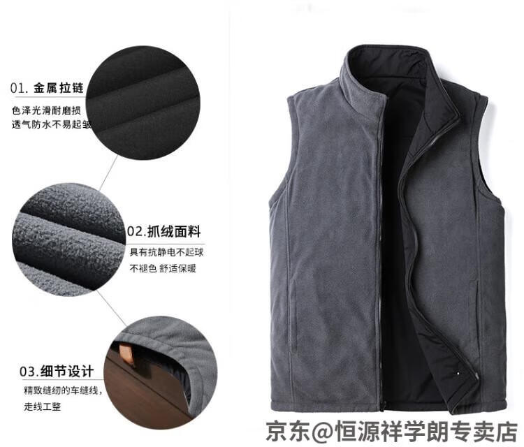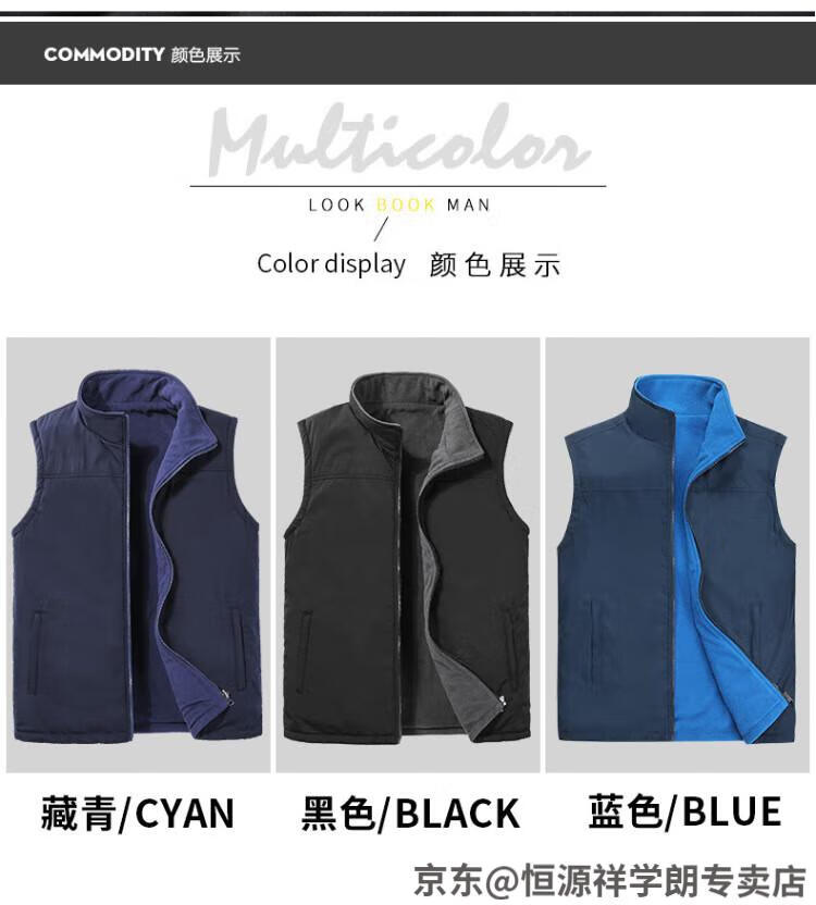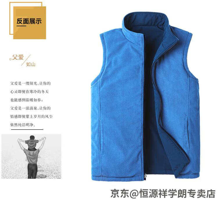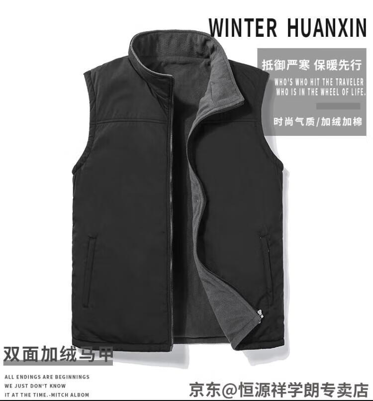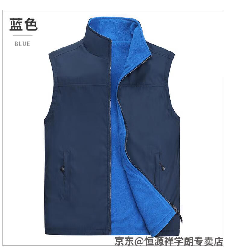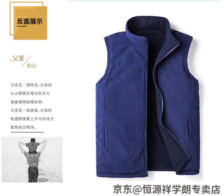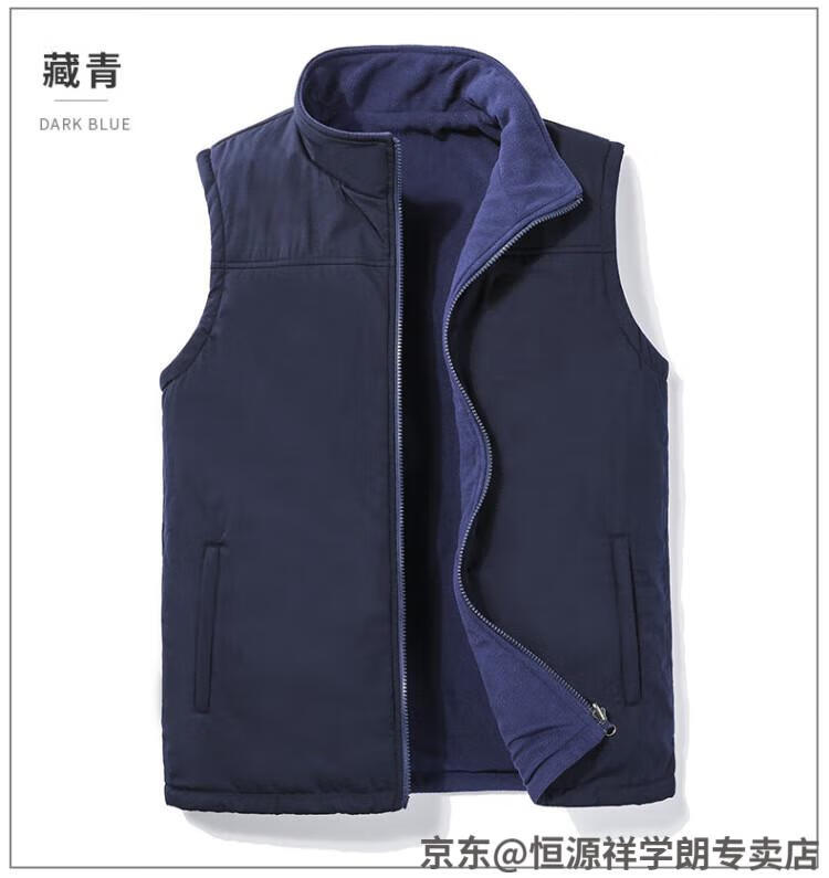 Hengyuanxiang Reversible Vest Men's Spring and Autumn Thickened Warm Polar Fleece Vest Stand Collar Vest Clip Loose Large Size Vest Jacket Navy XL
