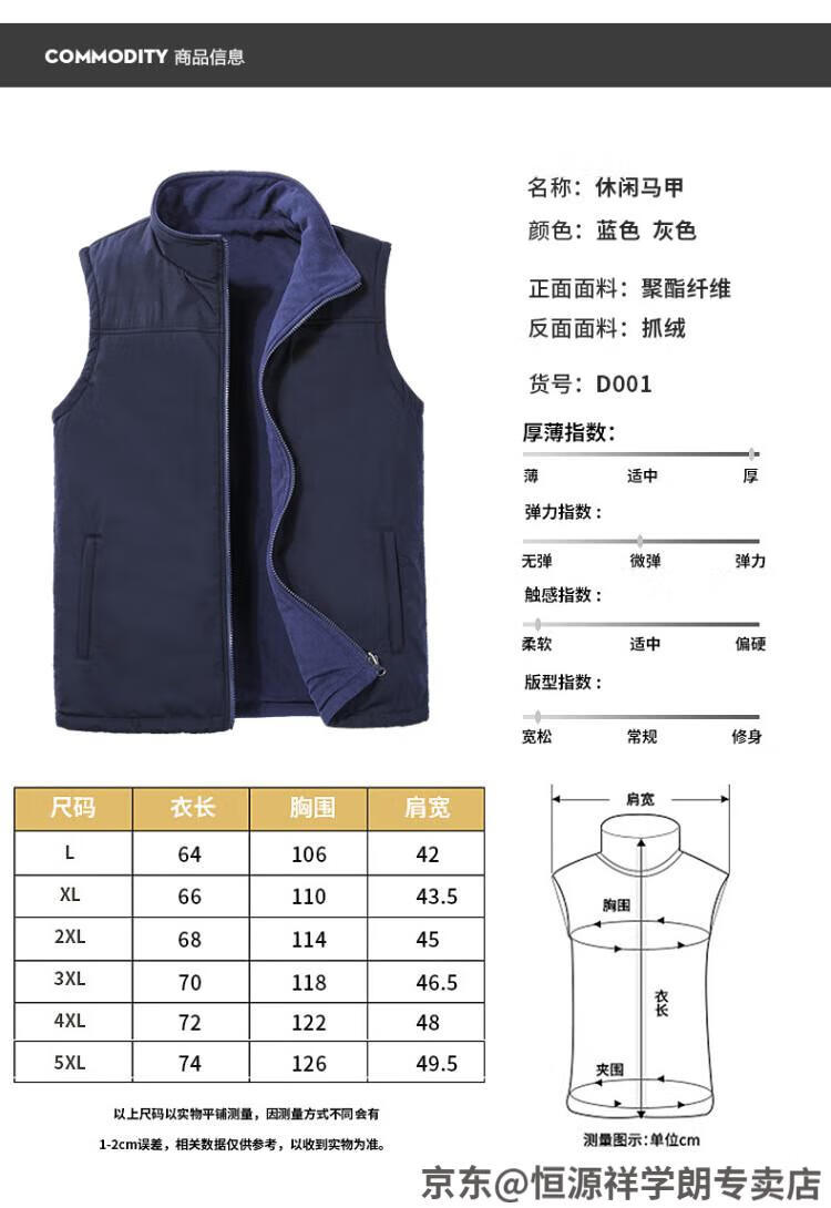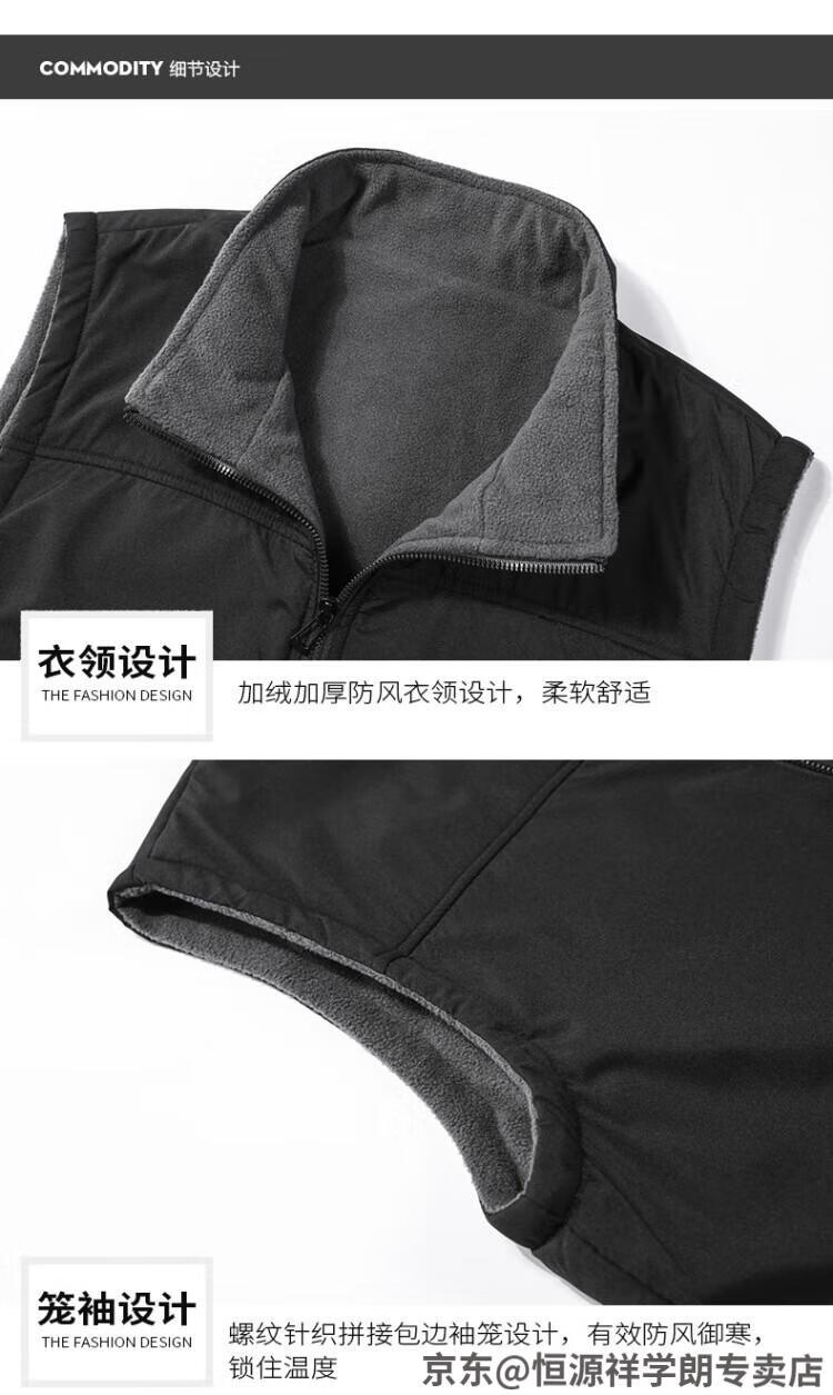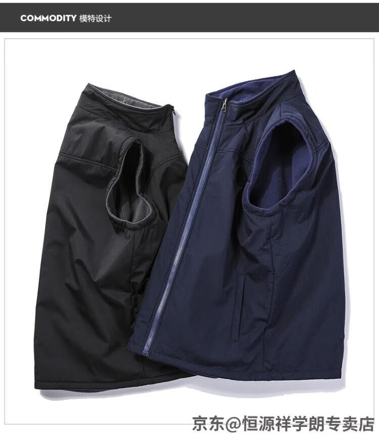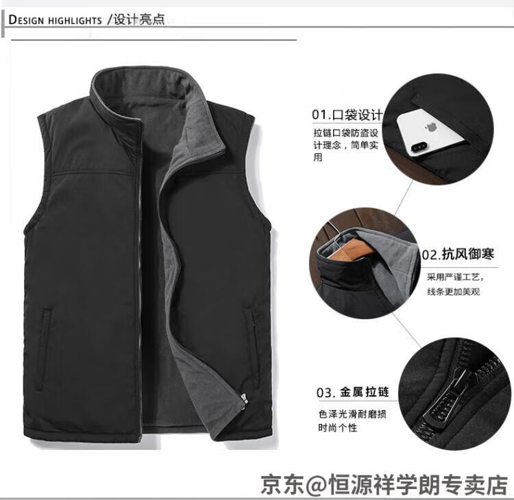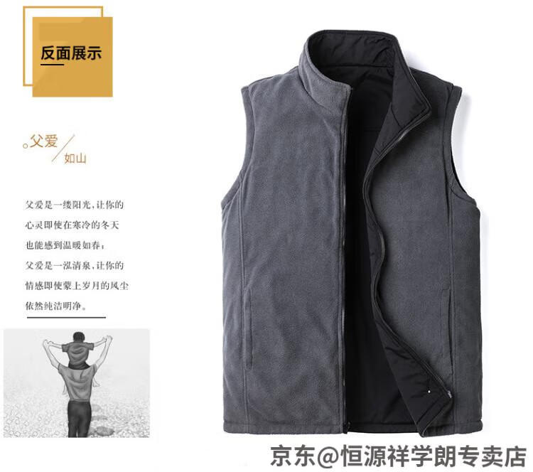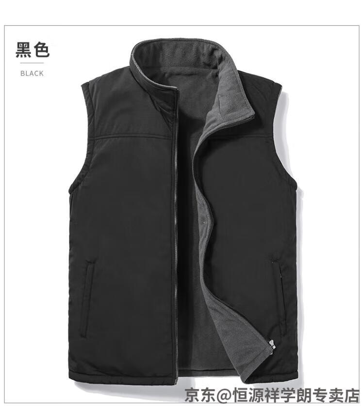 Hengyuanxiang Reversible Vest Men's Spring and Autumn Thickened Warm Polar Fleece Vest Stand Collar Vest Clip Loose Large Size Vest Jacket Navy XL