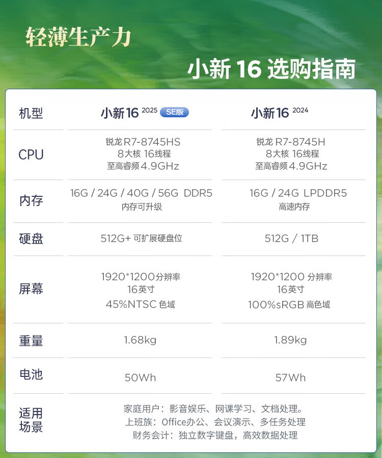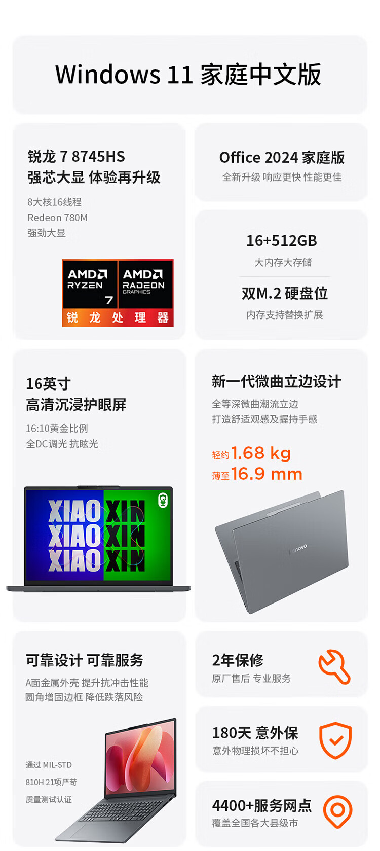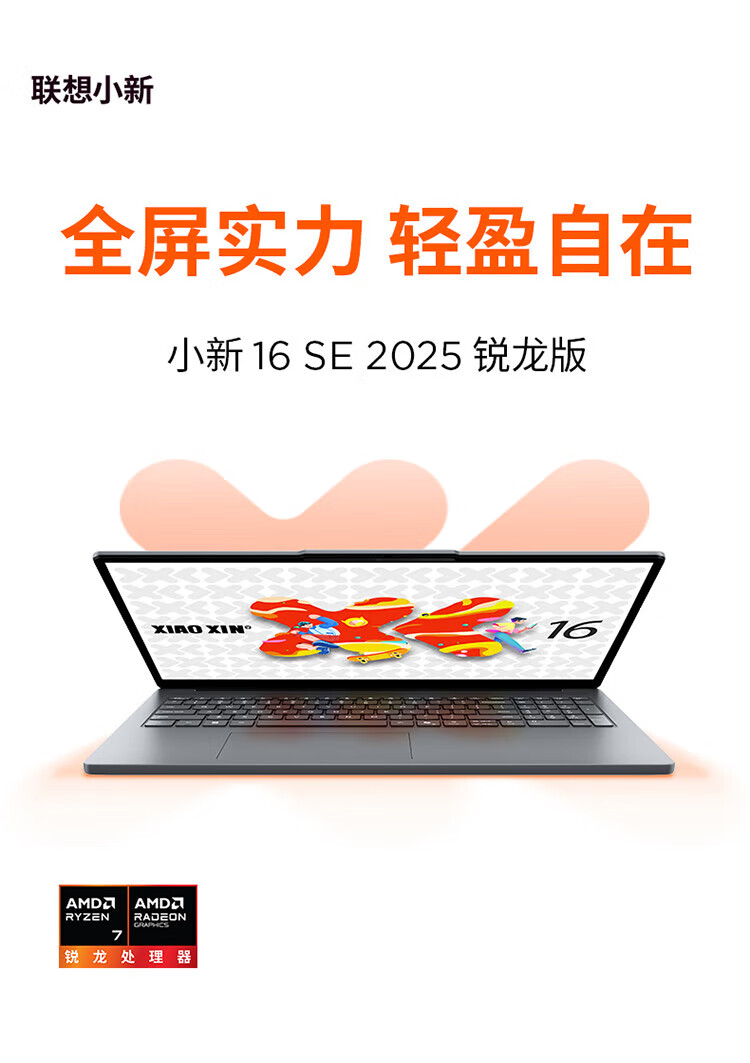 联想小新16/小新Pro16 2025新品AI元启可选补贴 超轻薄笔记本电脑 手提办公大学生游戏设计本 锐龙R7 32G 1TB 升级|25款小新16c 16英寸 防眩光全面屏