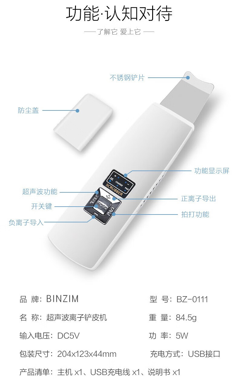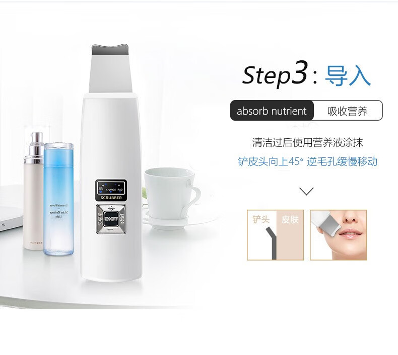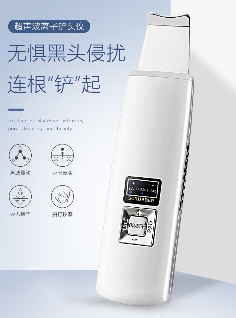 Ultrasonic peeling machine deep cleans pores, removes blackheads, acne, cuticles, and introduces essence facial cleansing device for the face, white