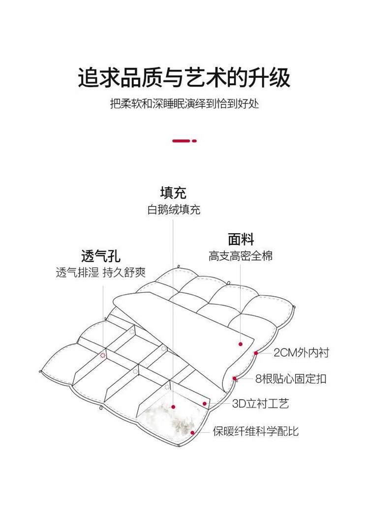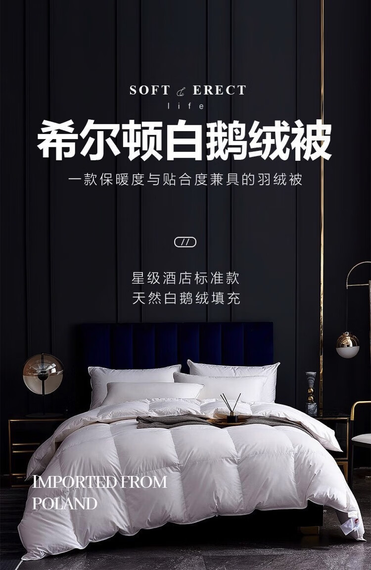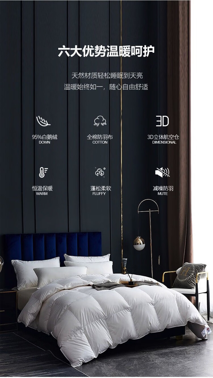 高档家纺床品白鹅绒羽绒被芯冬季加厚保暖羽毛被子家用宿舍双人被 鹅绒被/白色 150*200cm【6斤】