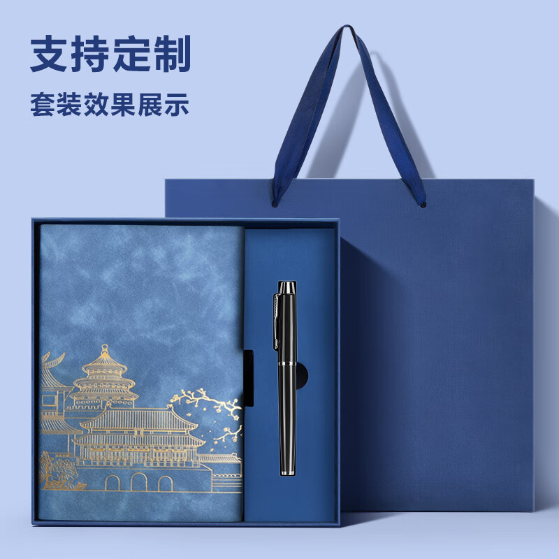 福兴旺本子笔记本定制logo封面a5商务记事本礼盒装伴手礼日记本子办公会议记录本工作本随身高颜值加厚款 A5蓝色带扣【鹿头款200页】