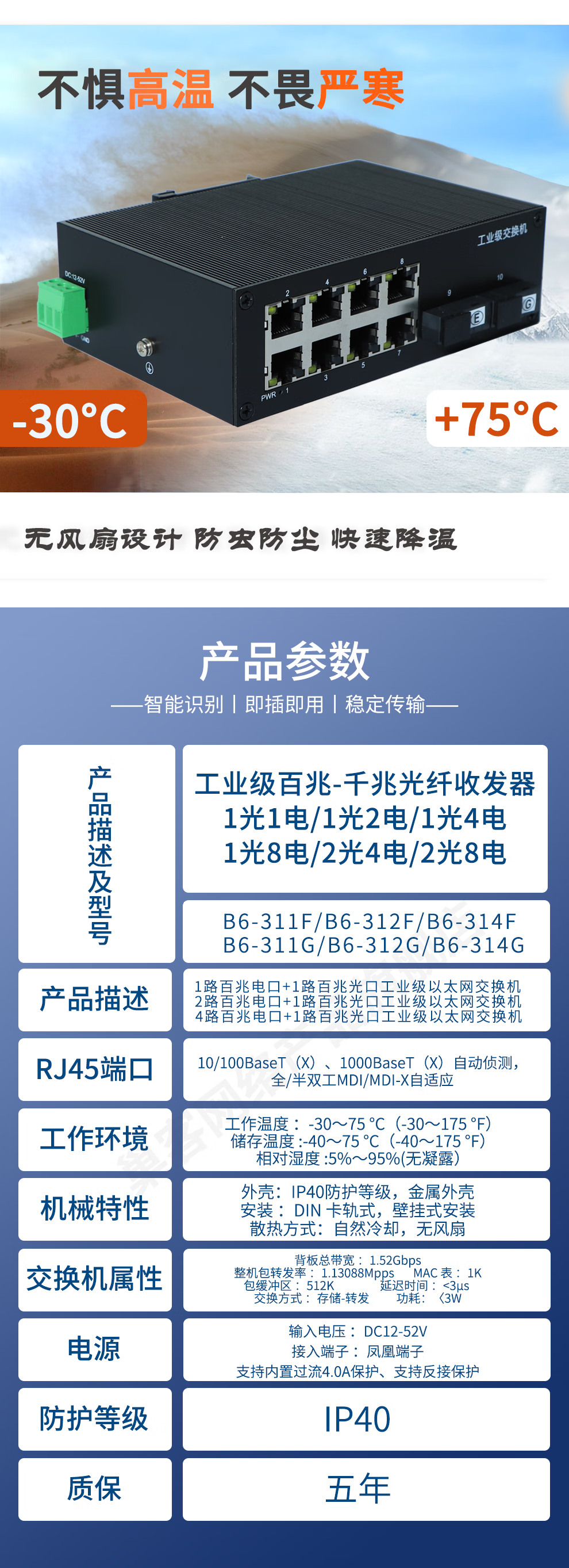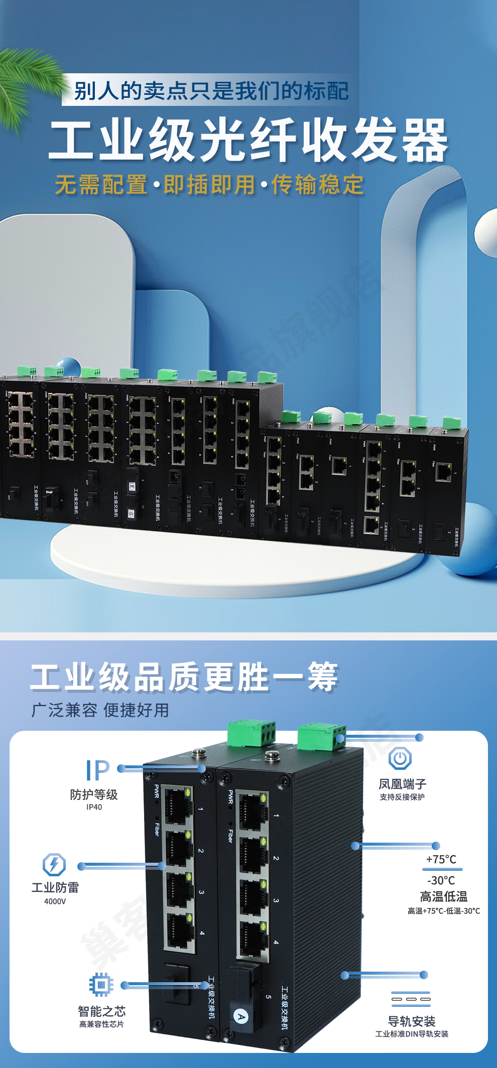 Chaoke industrial transceiver 100M Gigabit 1 optical 1 electric 1 optical 2 electric 1 optical 4 electric transceiver industrial grade fiber optic transceiver industrial switch monitoring unmanaged photoelectric converter industrial grade |