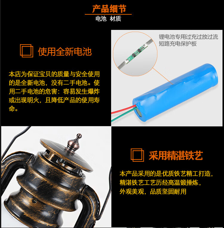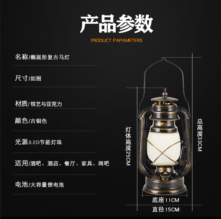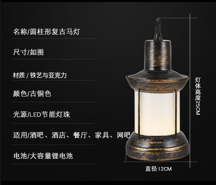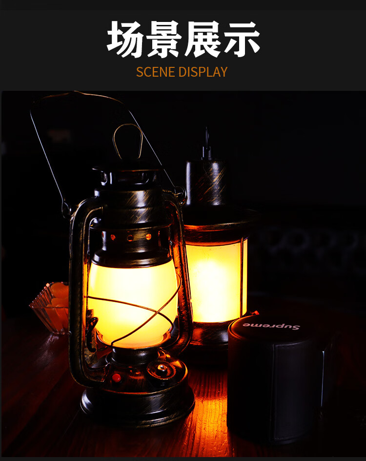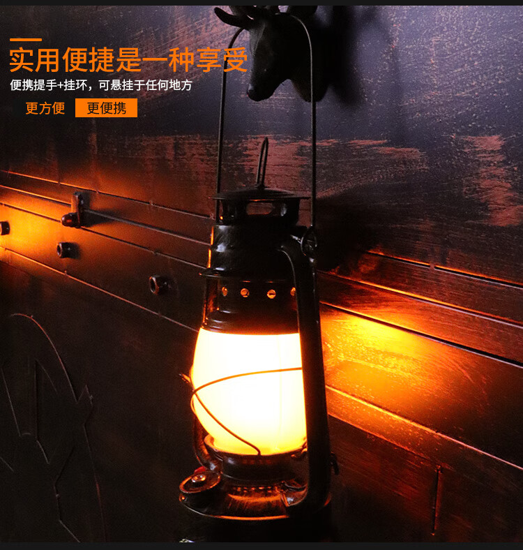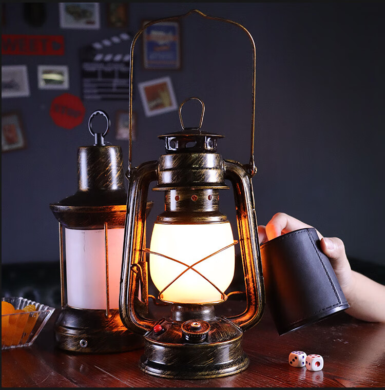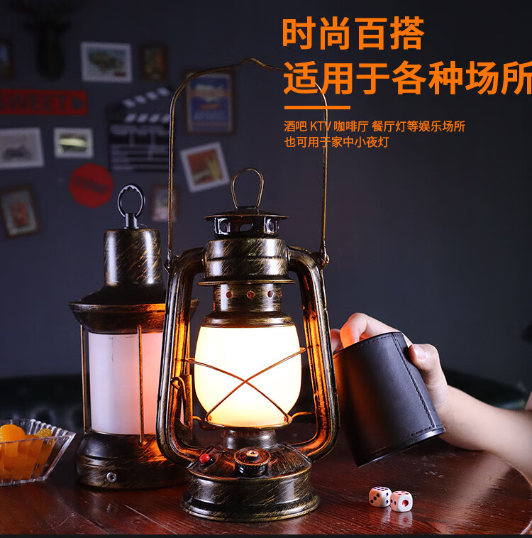 苏曲阔充电酒吧台灯复古氛围灯老式桌灯户外煤油灯马灯剧本杀灯露营灯 A款火焰+充电器(无极调光) Type- 调光开关