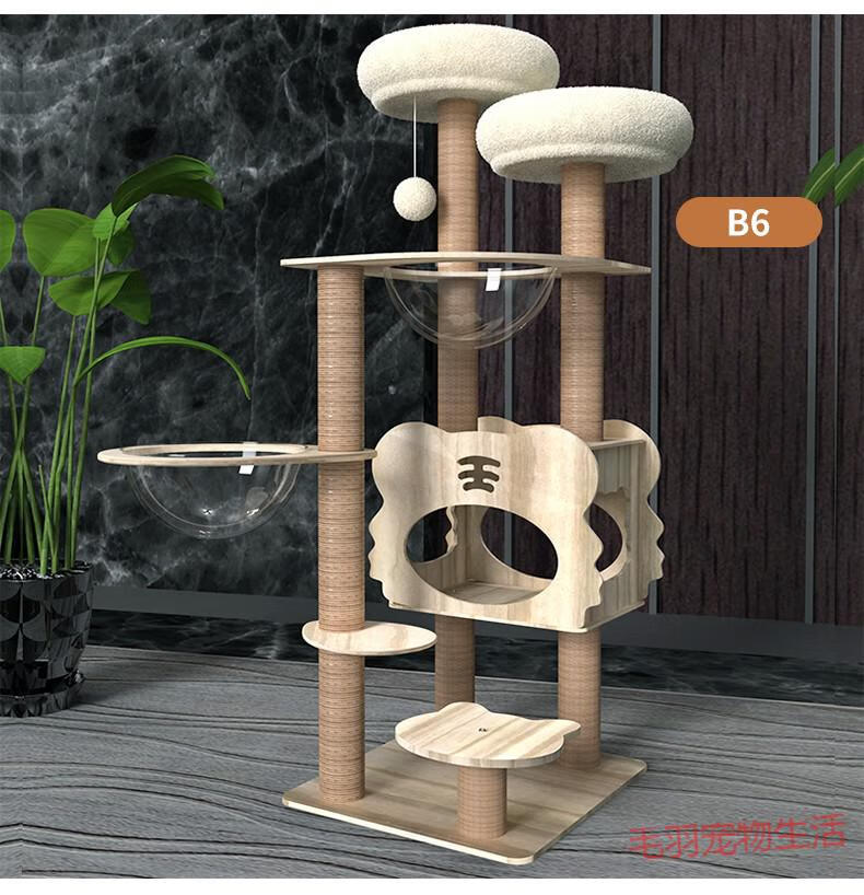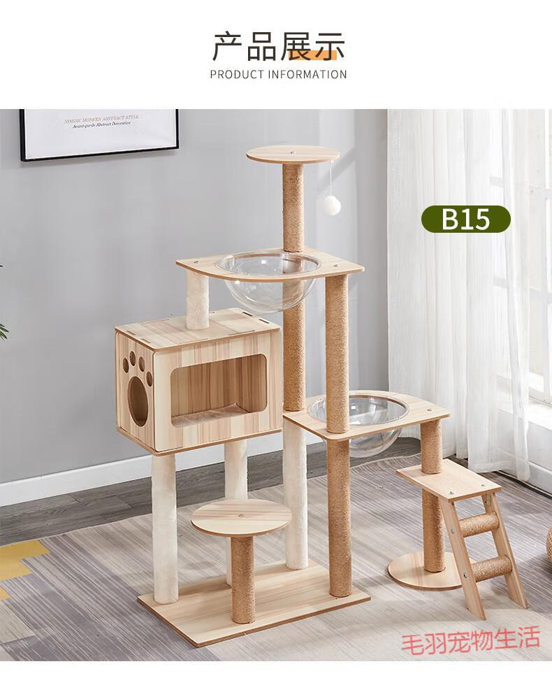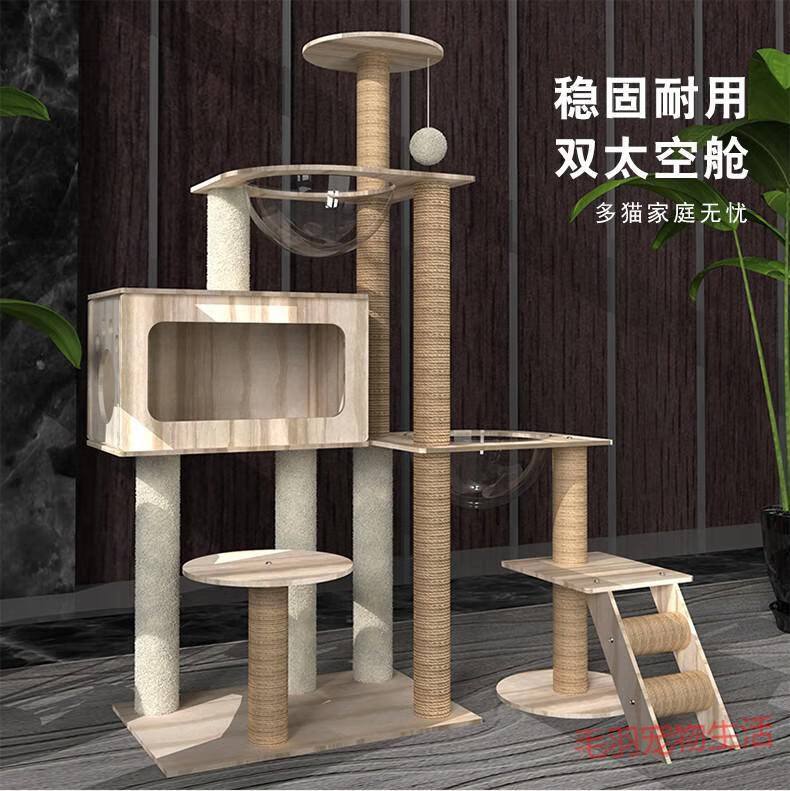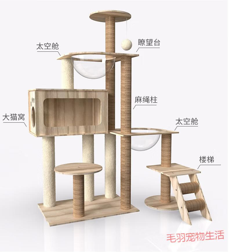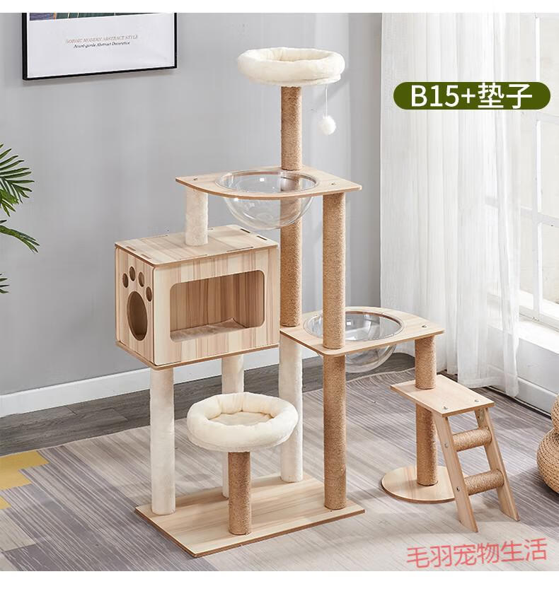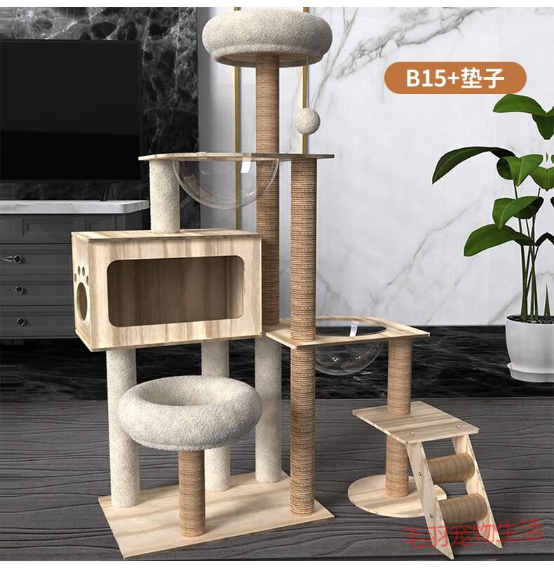 Marco de escalada para gatos de madera maciza con chip de estrella, marco para gatos, nido para gatos grande, árbol para gatos, cápsula espacial integrada, plataforma para saltar para gatos, marco para rascar para gatos b15+ estera