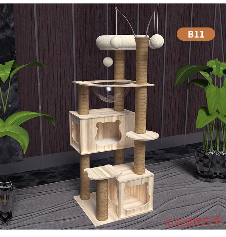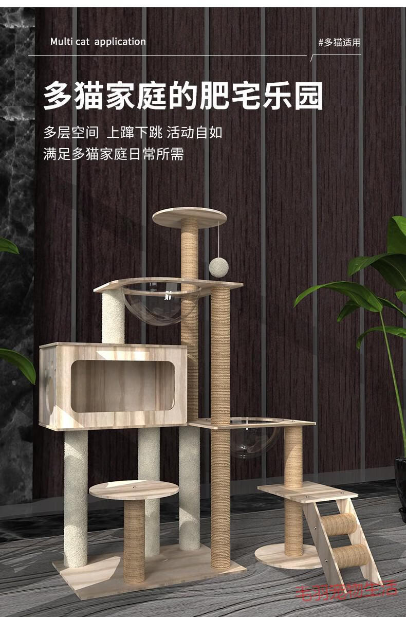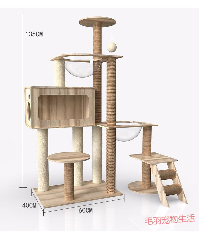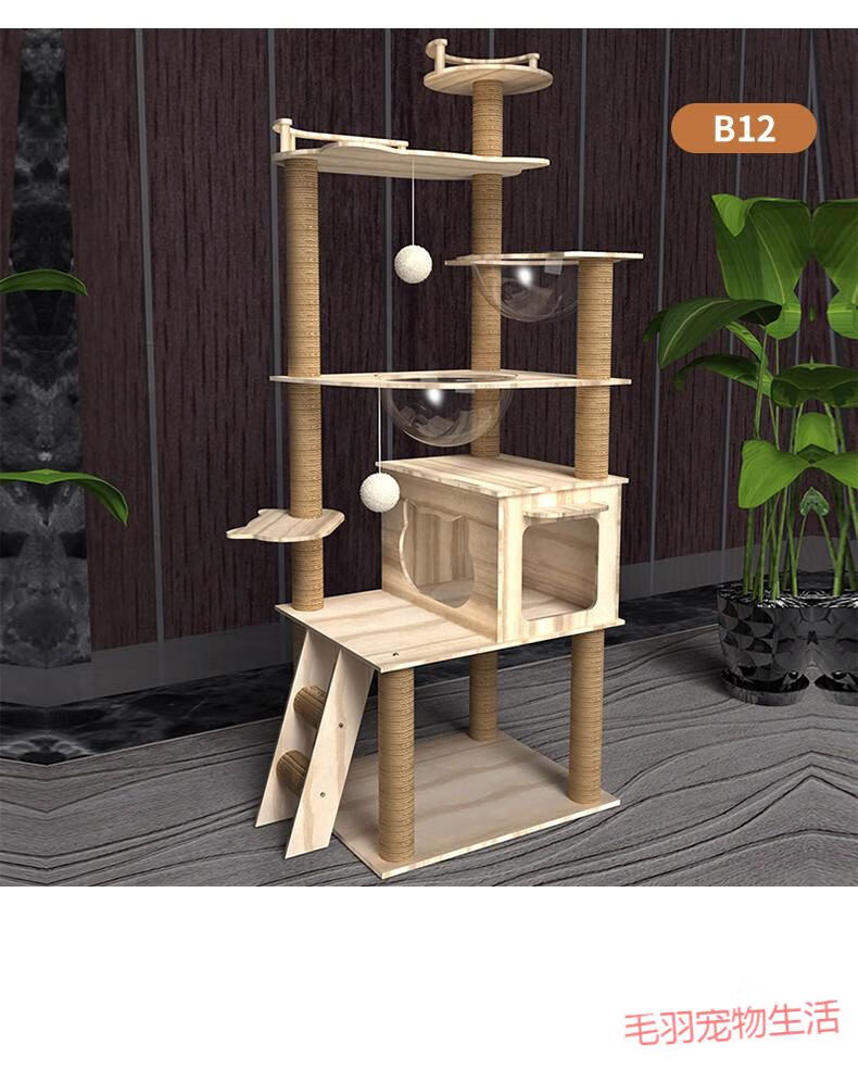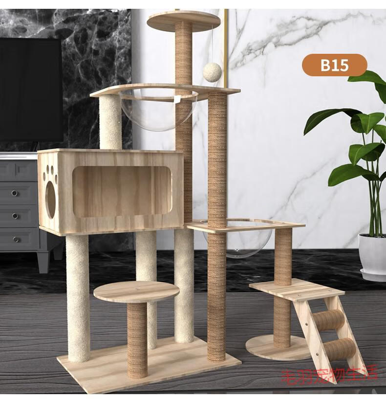 Marco de escalada para gatos de madera maciza con chip de estrella, marco para gatos, nido para gatos grande, árbol para gatos, cápsula espacial integrada, plataforma para saltar para gatos, marco para rascar para gatos b15+ estera