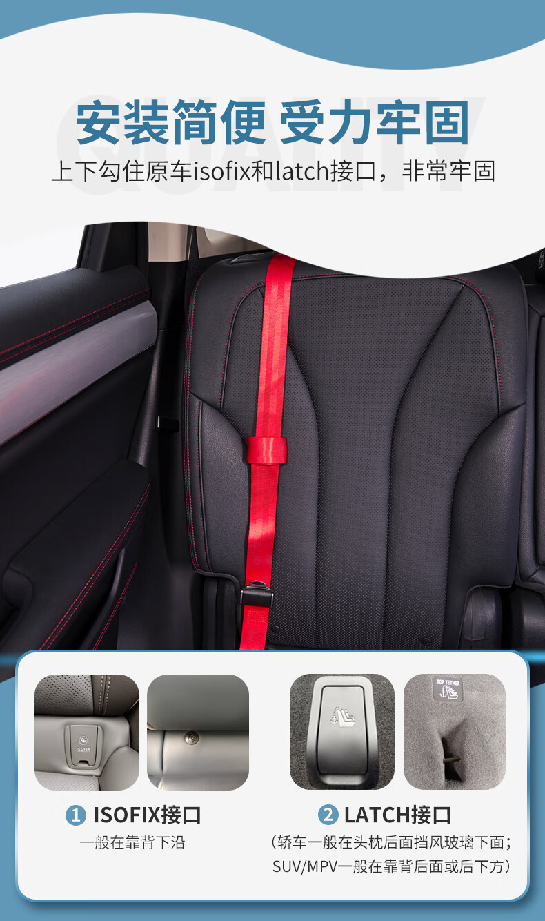 诗贝乐(SHIBEILE)汽车后排儿童安全带调节固定器限位器防勒脖子辅助装置护肩保护套 红黑儿童安全带