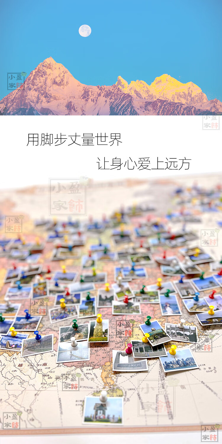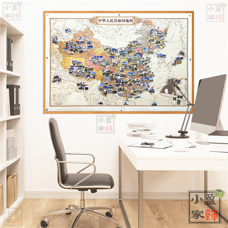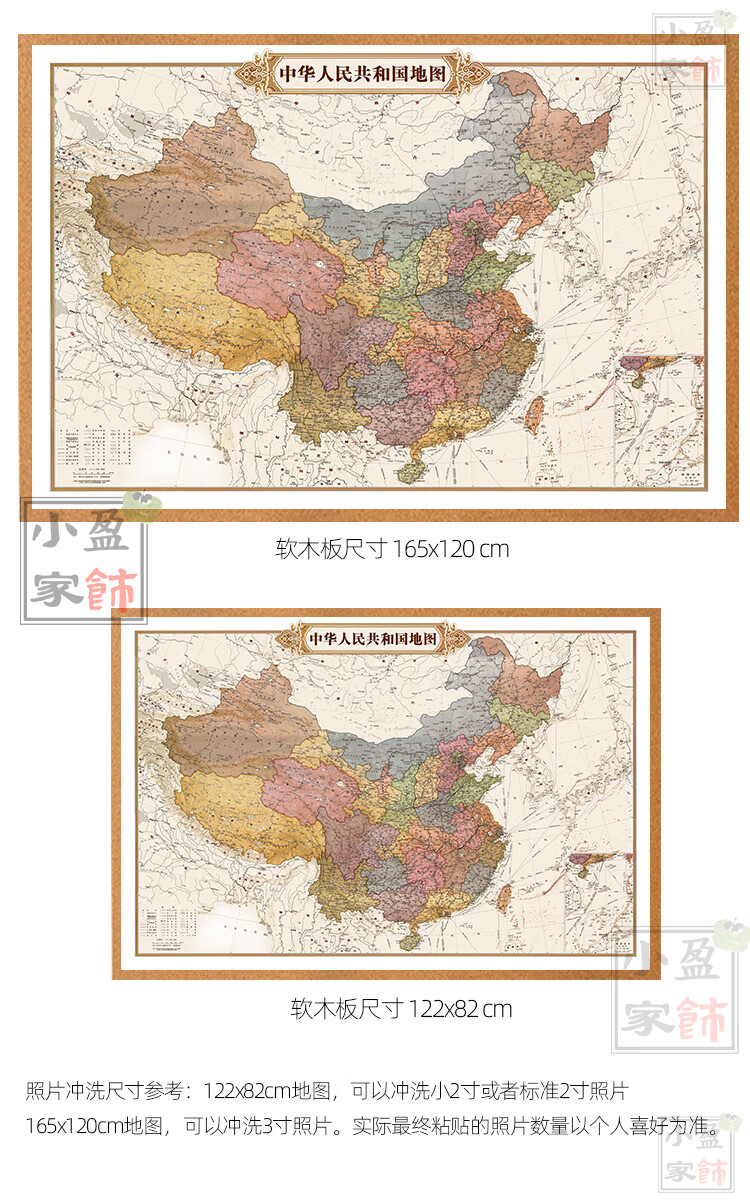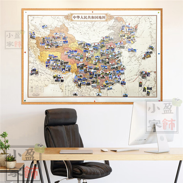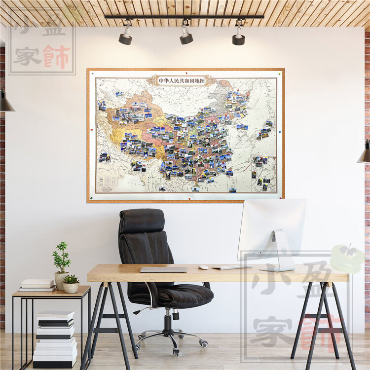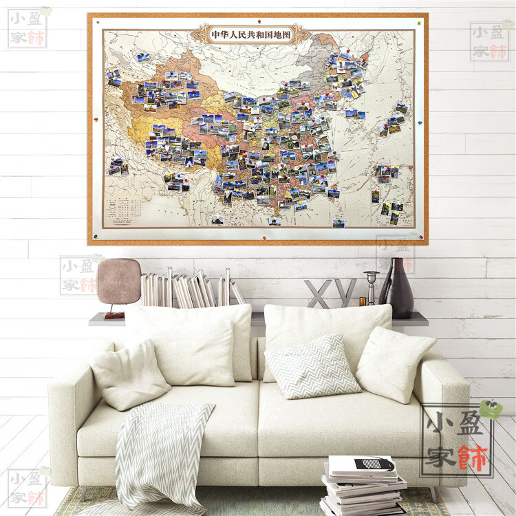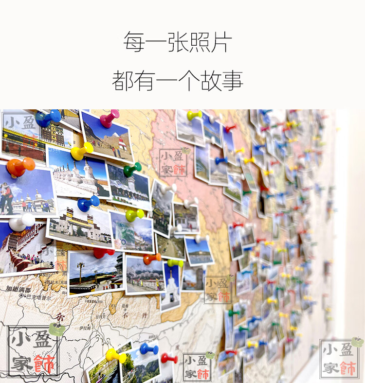 可图钉标记旅游打卡地图记录规划中国世界地图留念书房礼物背景墙 中国蓝色海洋 165x120cm 软木板(可扎地图钉) 送50颗