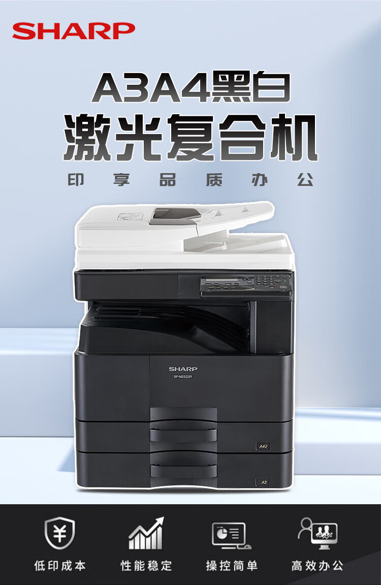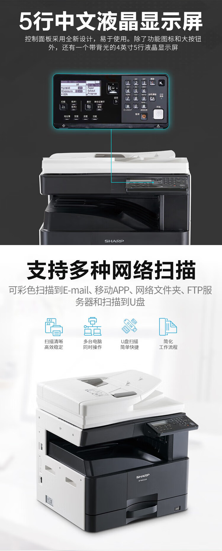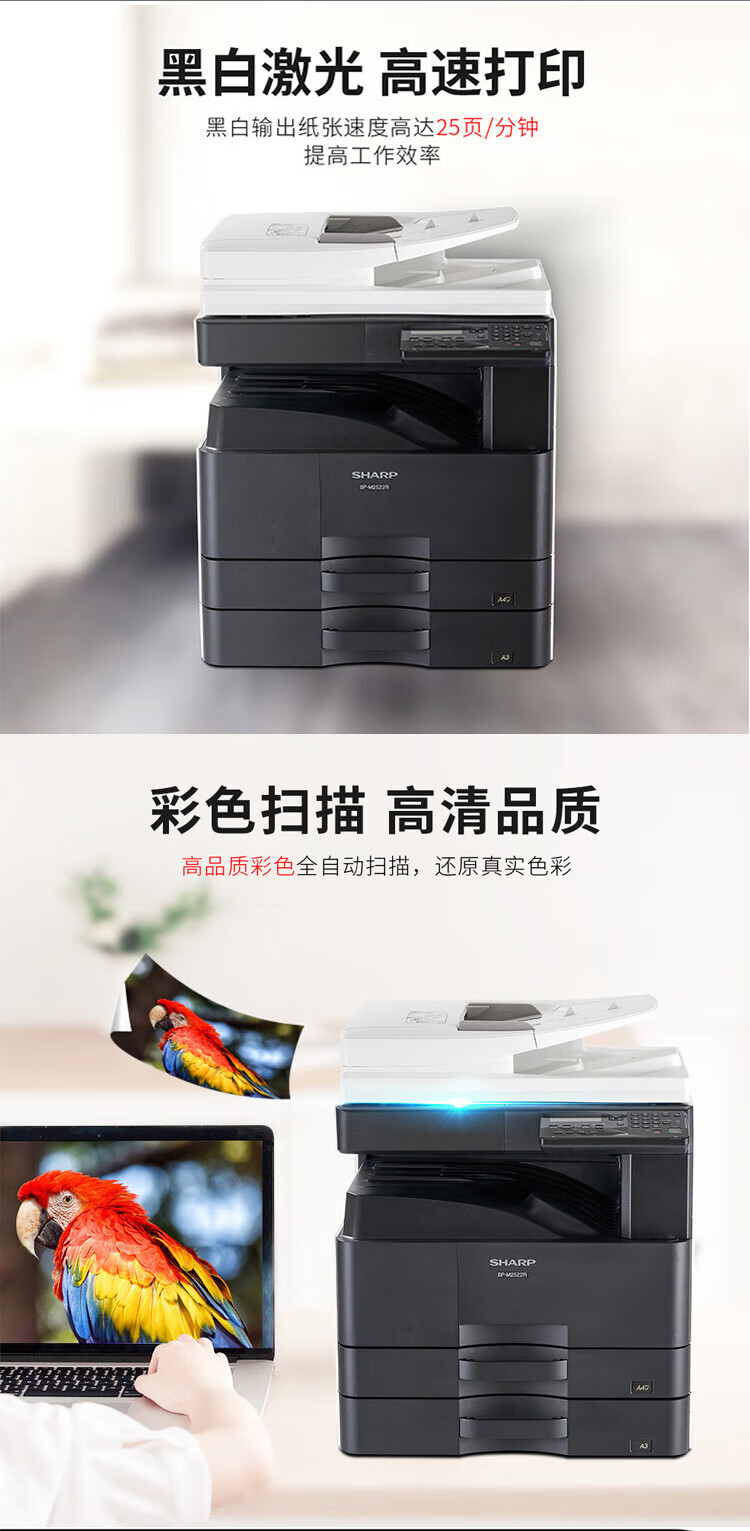 夏普BP-M2522R复印机A3a4打印机黑白激光多功能一体机复合机 M2522R双纸盒+EB18无线网卡