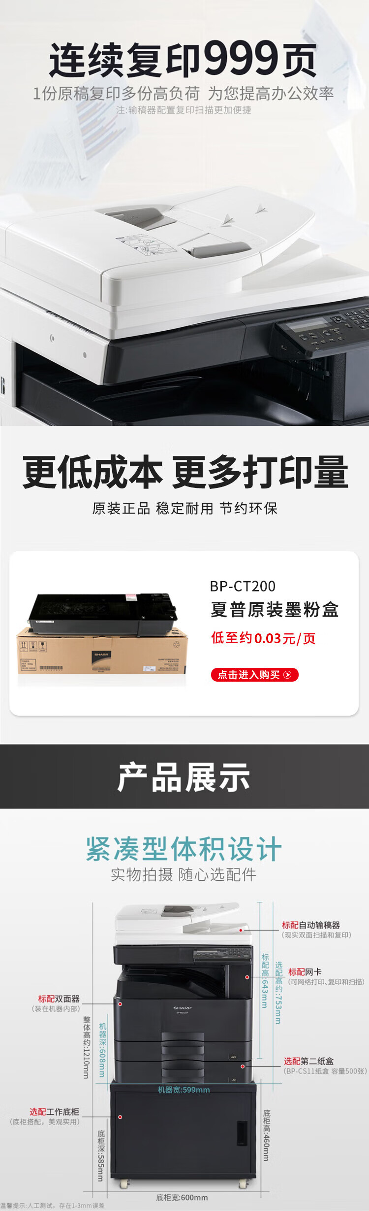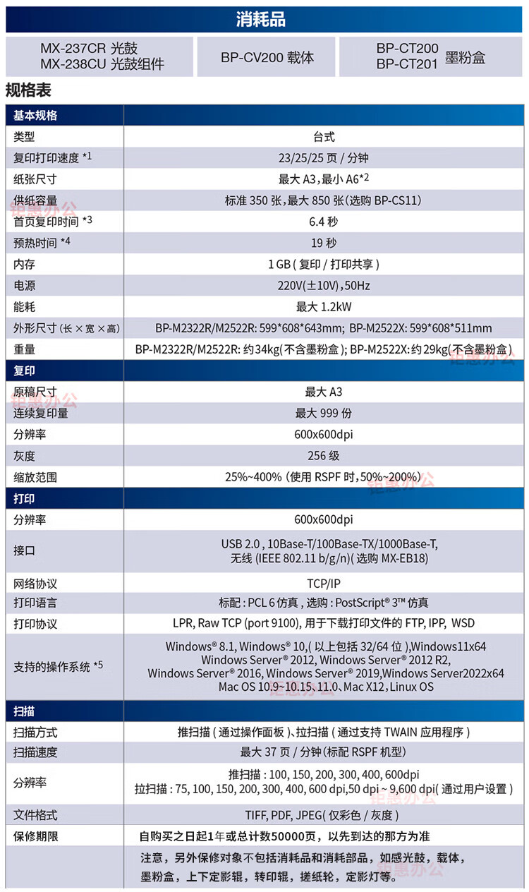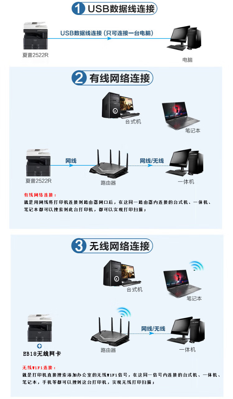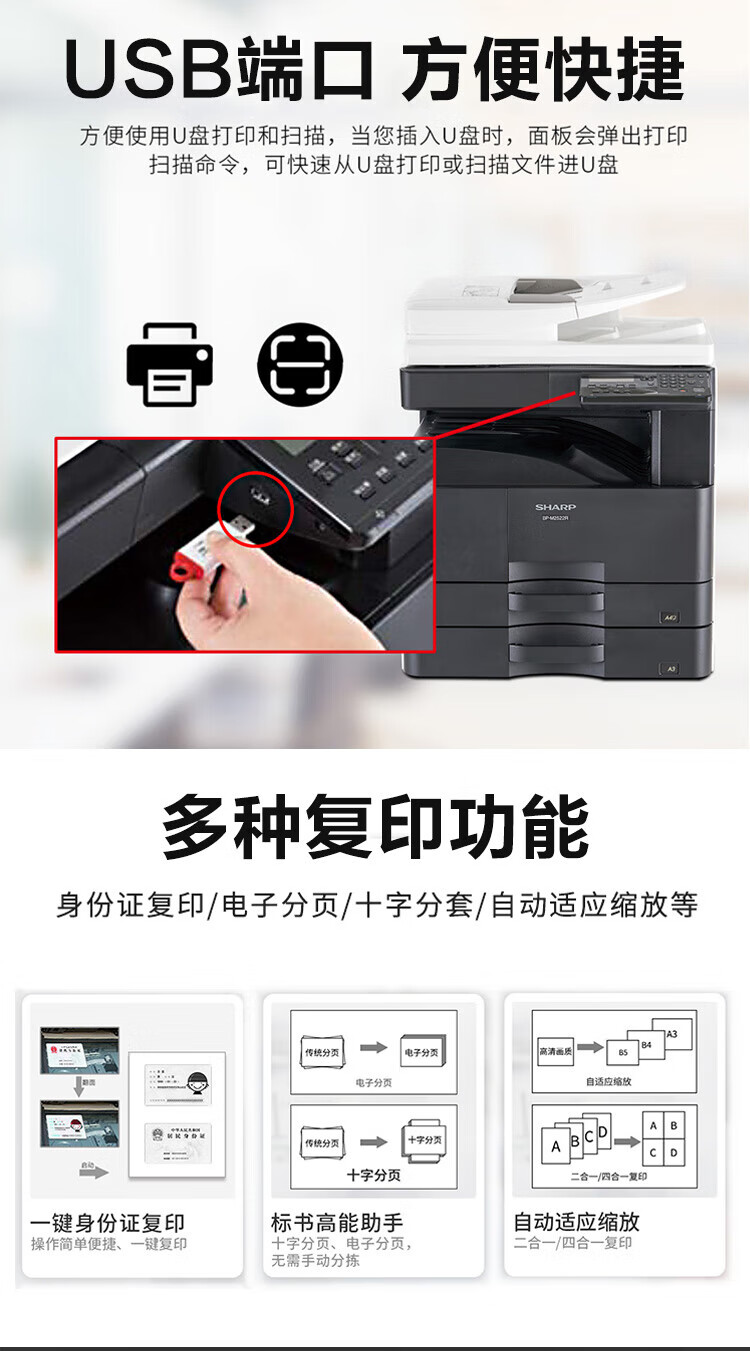 夏普BP-M2522R复印机A3a4打印机黑白激光多功能一体机复合机 M2522R双纸盒+EB18无线网卡