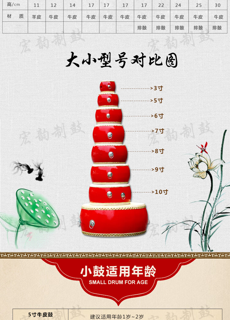 Pulian Rindsledertrommel große Trommel Kinderspielzeugtrommel Kindergarten kleine Trommel 0 3 Jahre alter Gong, Trommel, Beckenschlaginstrument 7-Zoll-Rindsledertrommel + kleines Becken ~