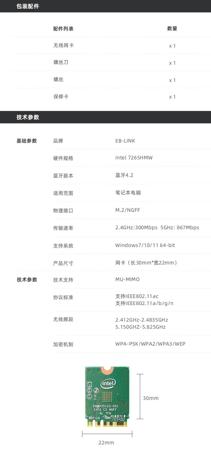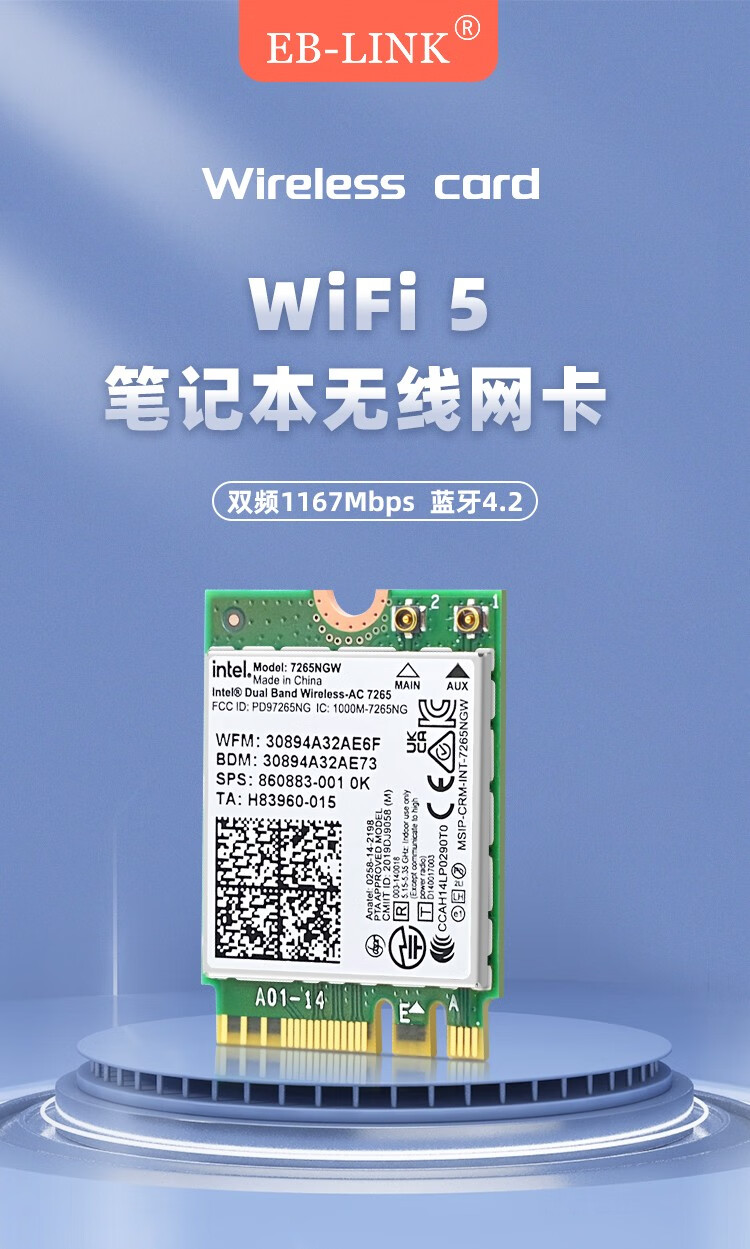 EB-LINK IntelAX210 chip notebook wireless network card WiFi6 Gigabit tri-band network card Bluetooth 5.2 computer built-in module AX210 chip notebook 5374M (M.2 interface)