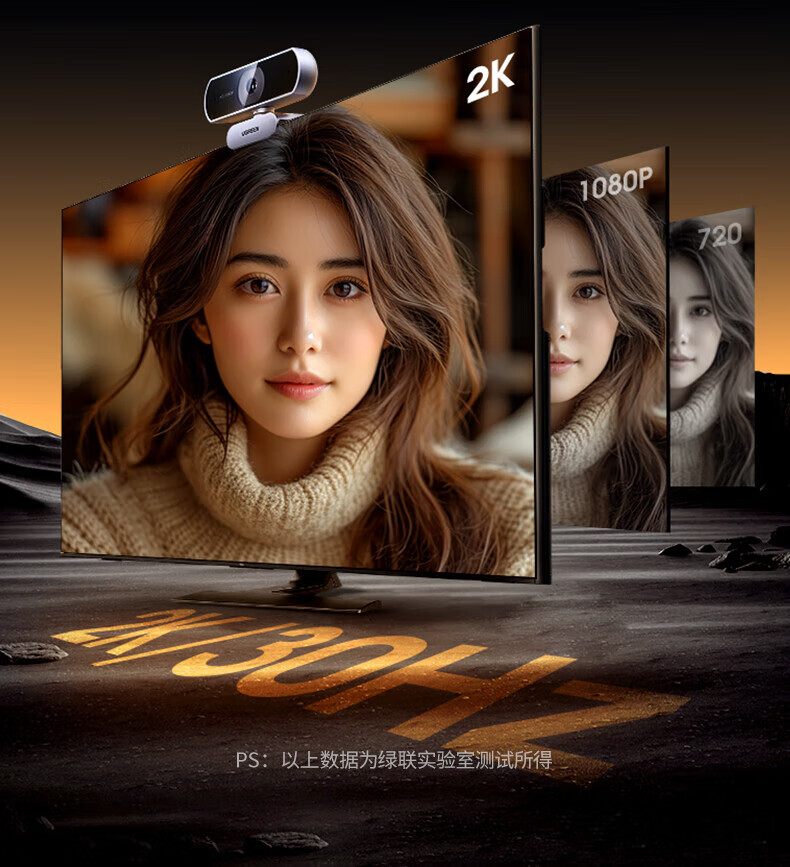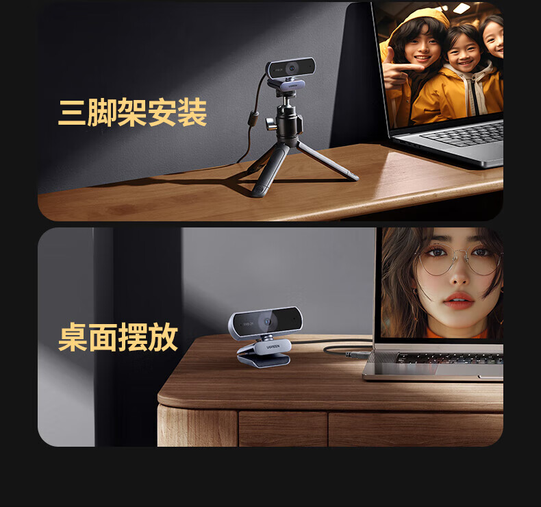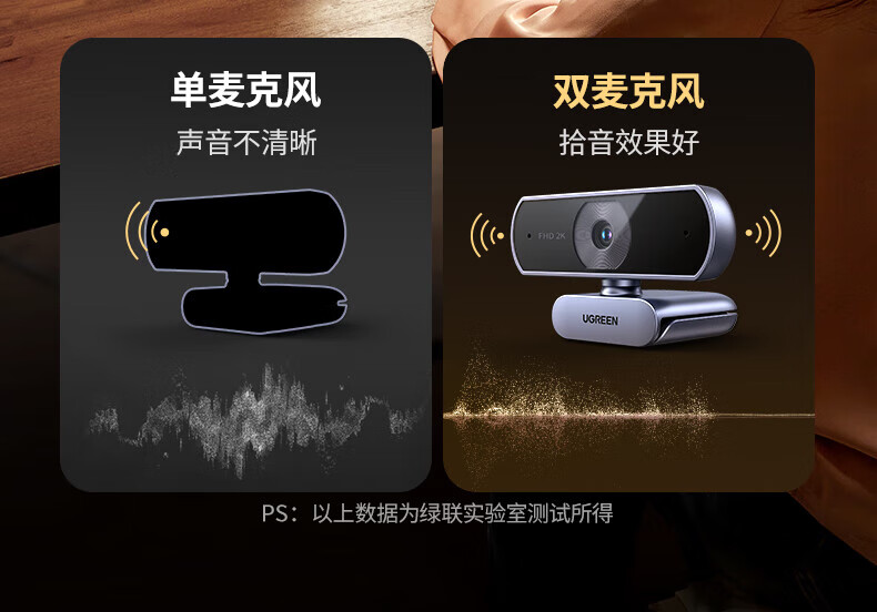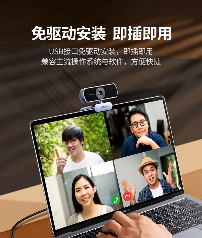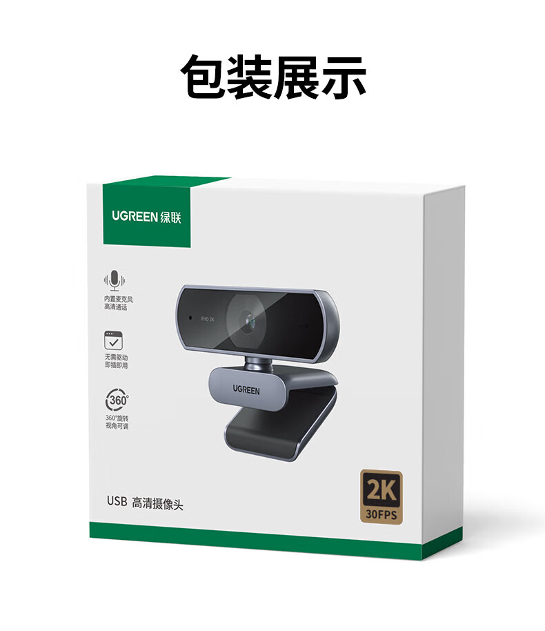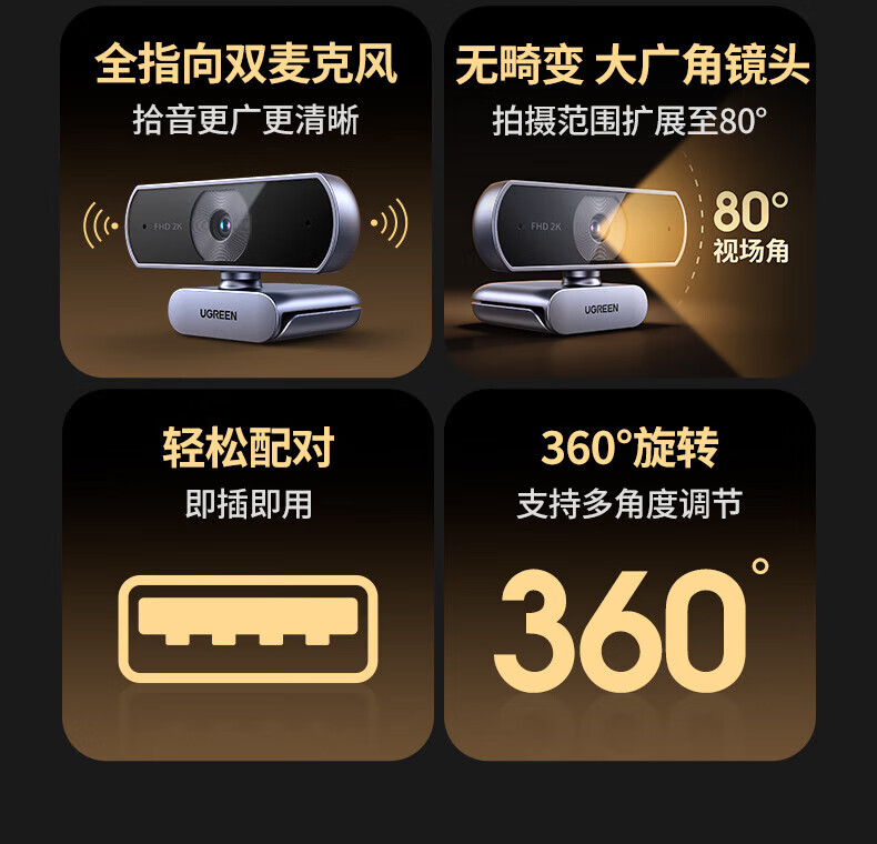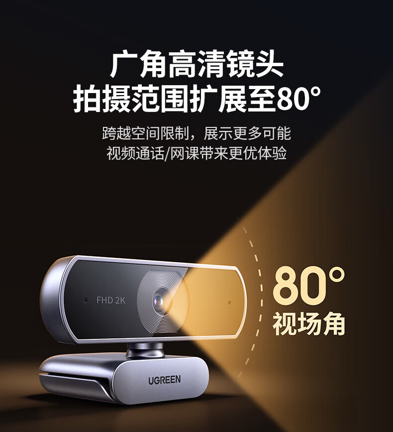 绿联2K高清USB外置电脑摄像头广角双麦克风自动对焦 台式机笔记本电脑视频会议网课考试面试直播摄像头 1080P 【定焦/双麦/200W像素】15728