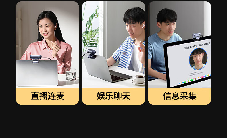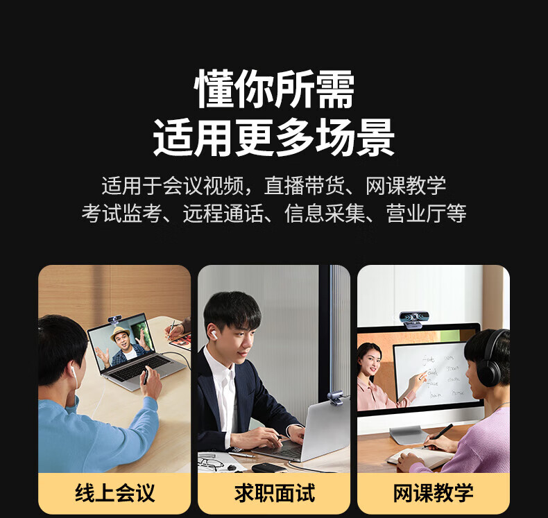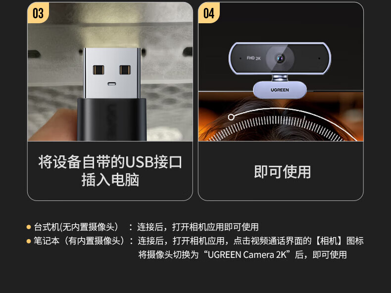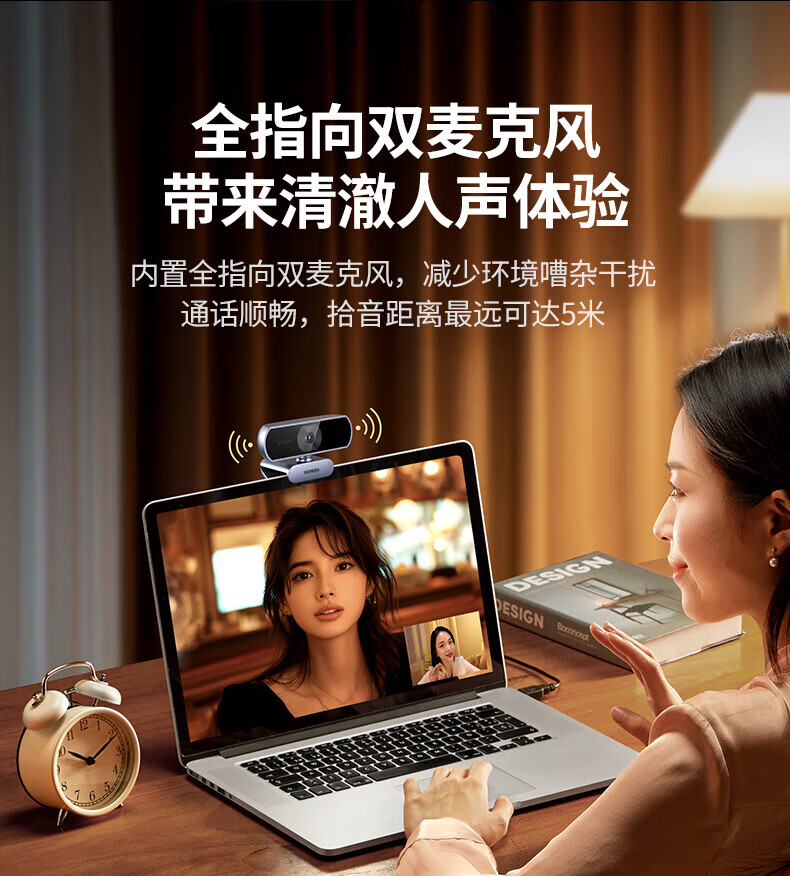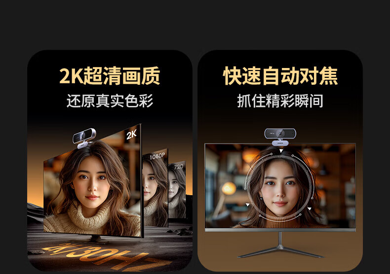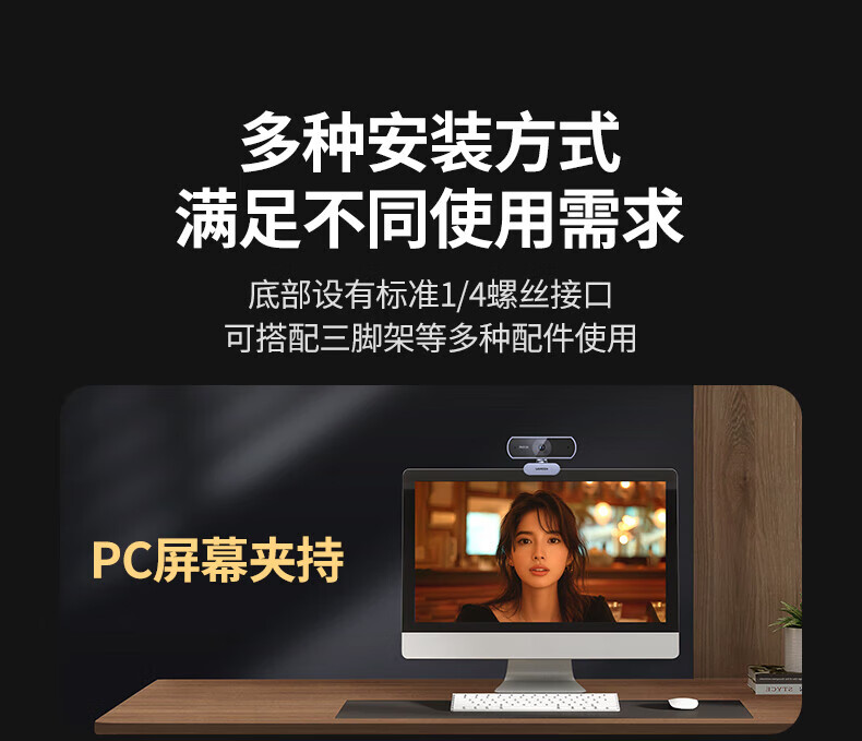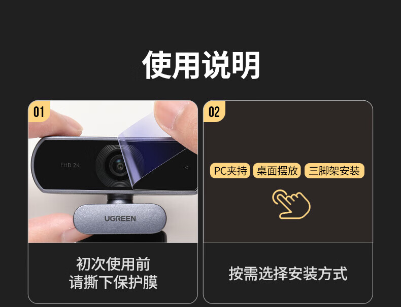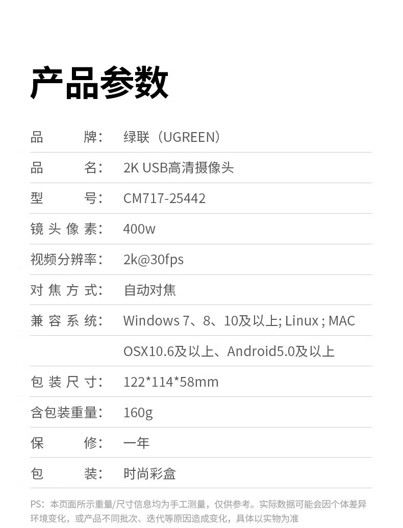 绿联2K高清USB外置电脑摄像头广角双麦克风自动对焦 台式机笔记本电脑视频会议网课考试面试直播摄像头 1080P 【定焦/双麦/200W像素】15728