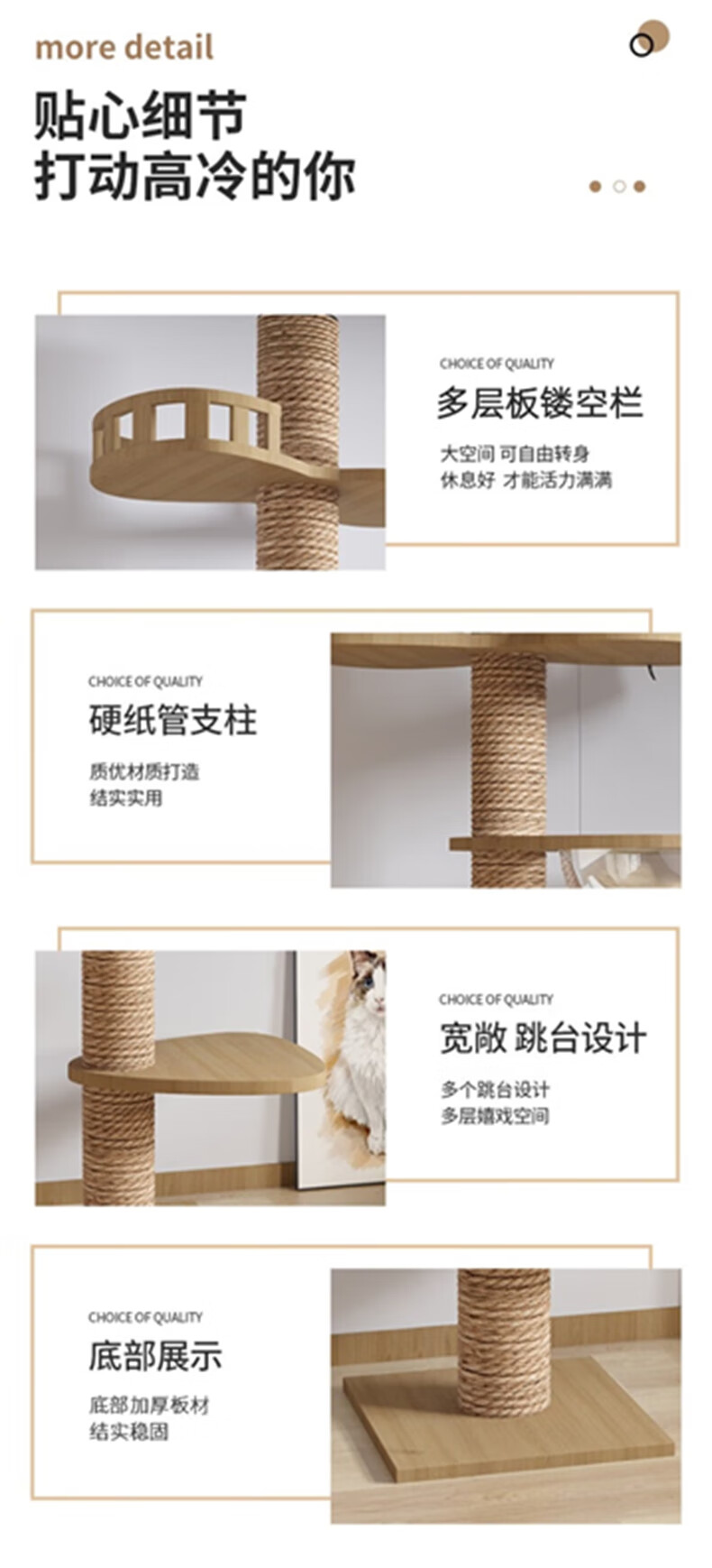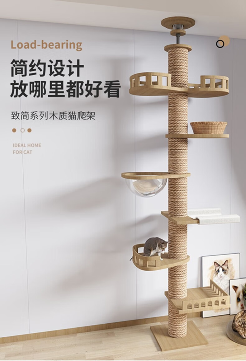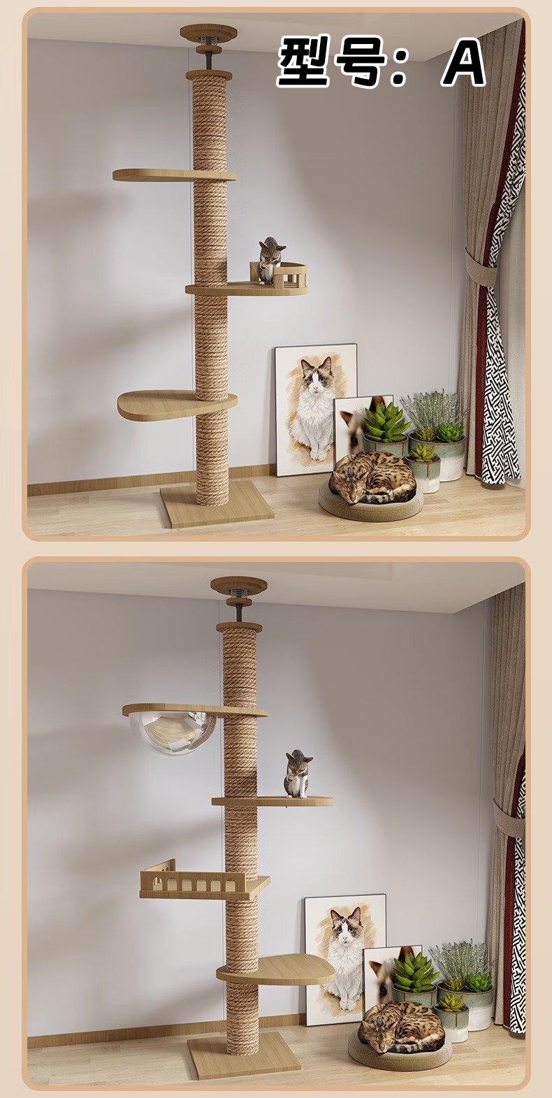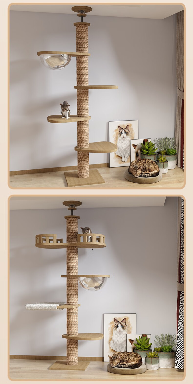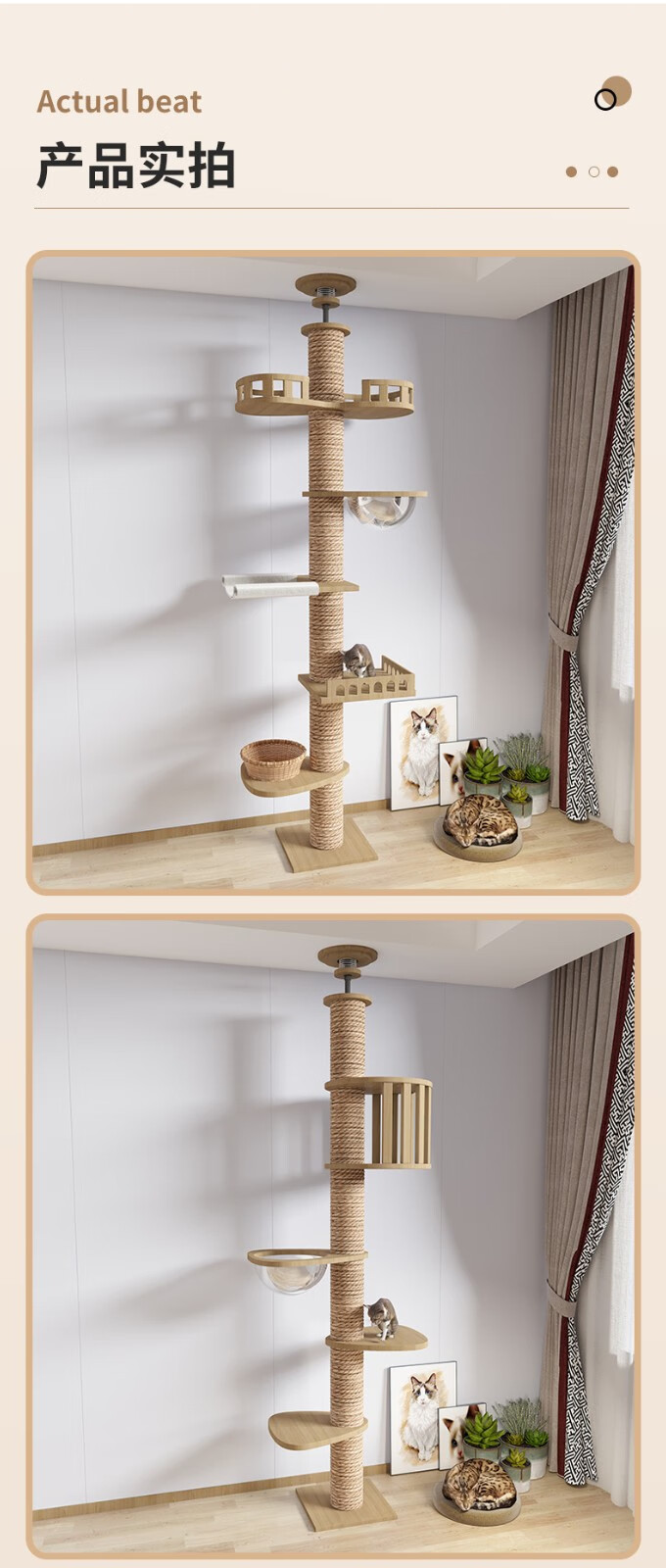 Yingzhun cat climbing frame Tongtian column small apartment with nest cat tree large column cat toy scratching board claw grinder cat nest frame integrated A type wooden 3 jumping platform