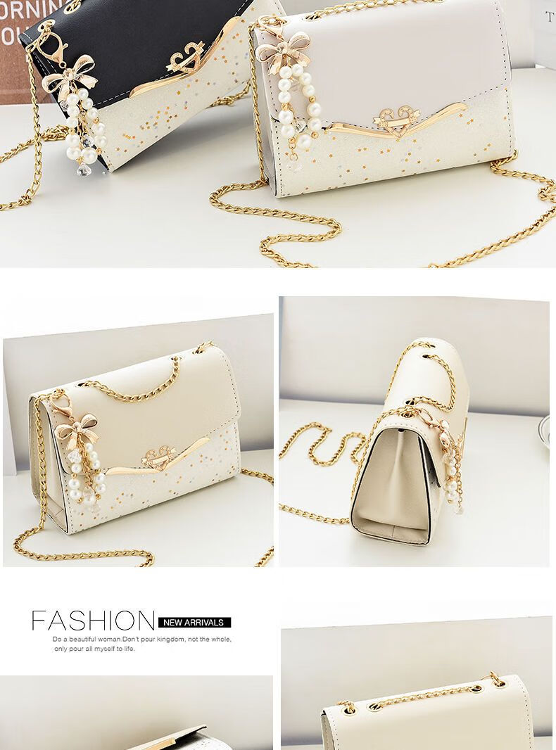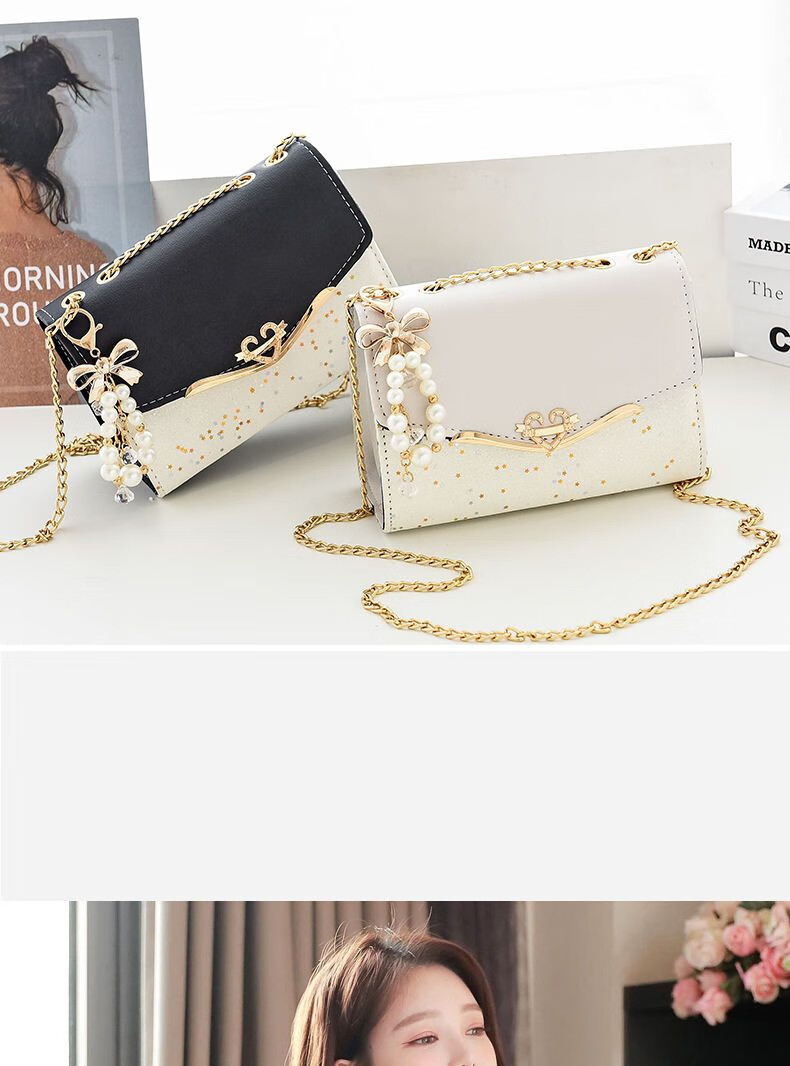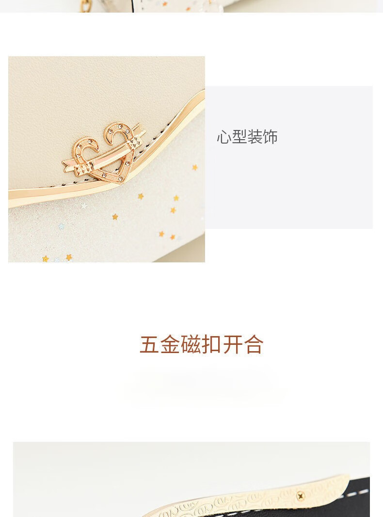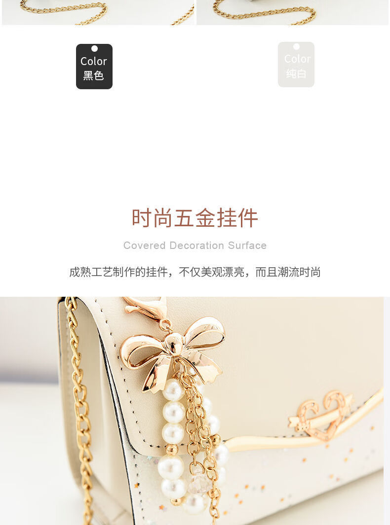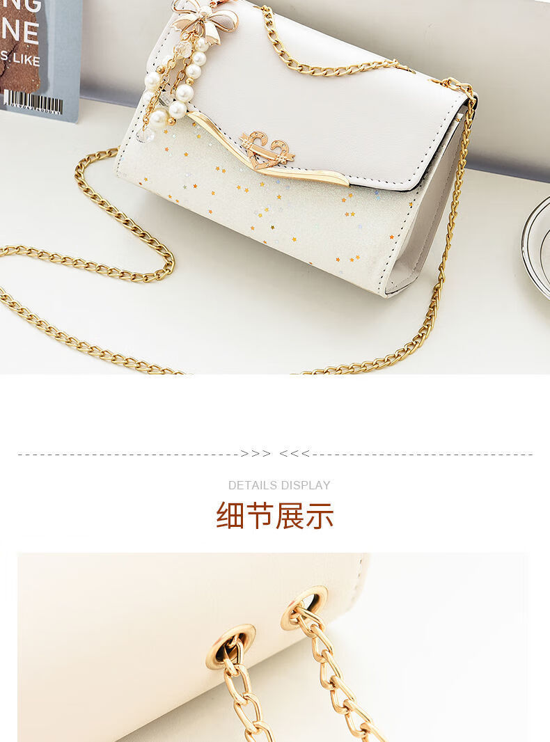 一竹春包包女新款百搭斜挎包亮片时尚单肩包韩版女士挎包 米白(送挂件)