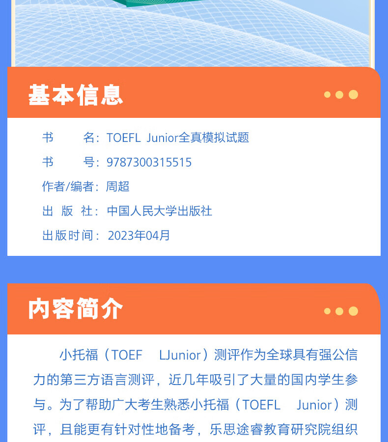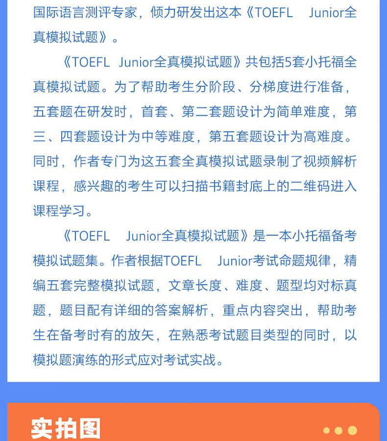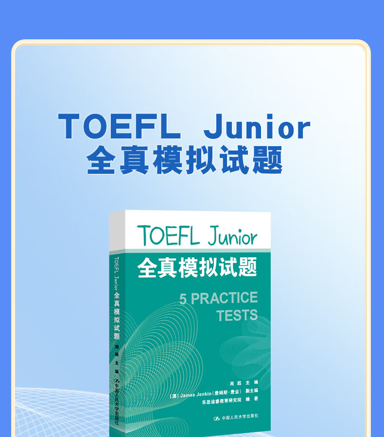 Genuine TOEFL Junior Full Real Mock Test Questions Zhou Chao Lexi Tourui Education Research Institute TOEFL Junior Preparation Mock Test Question Set TOEFL Test Preparation Materials 5 Sets of Mock Test Answer Answers Renmin University
